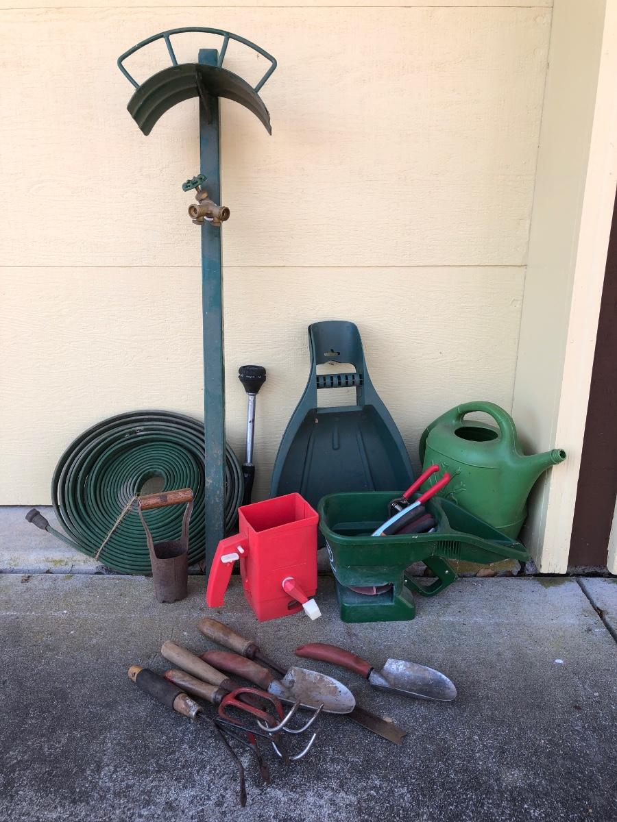 LOT 270G: Yard & Garden Collection - Spreaders, Fiskars Clippers, Tools, Hose Mount & More