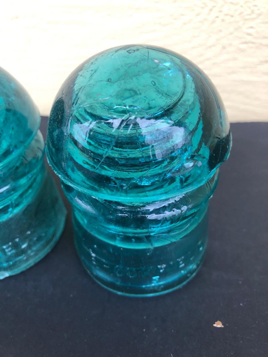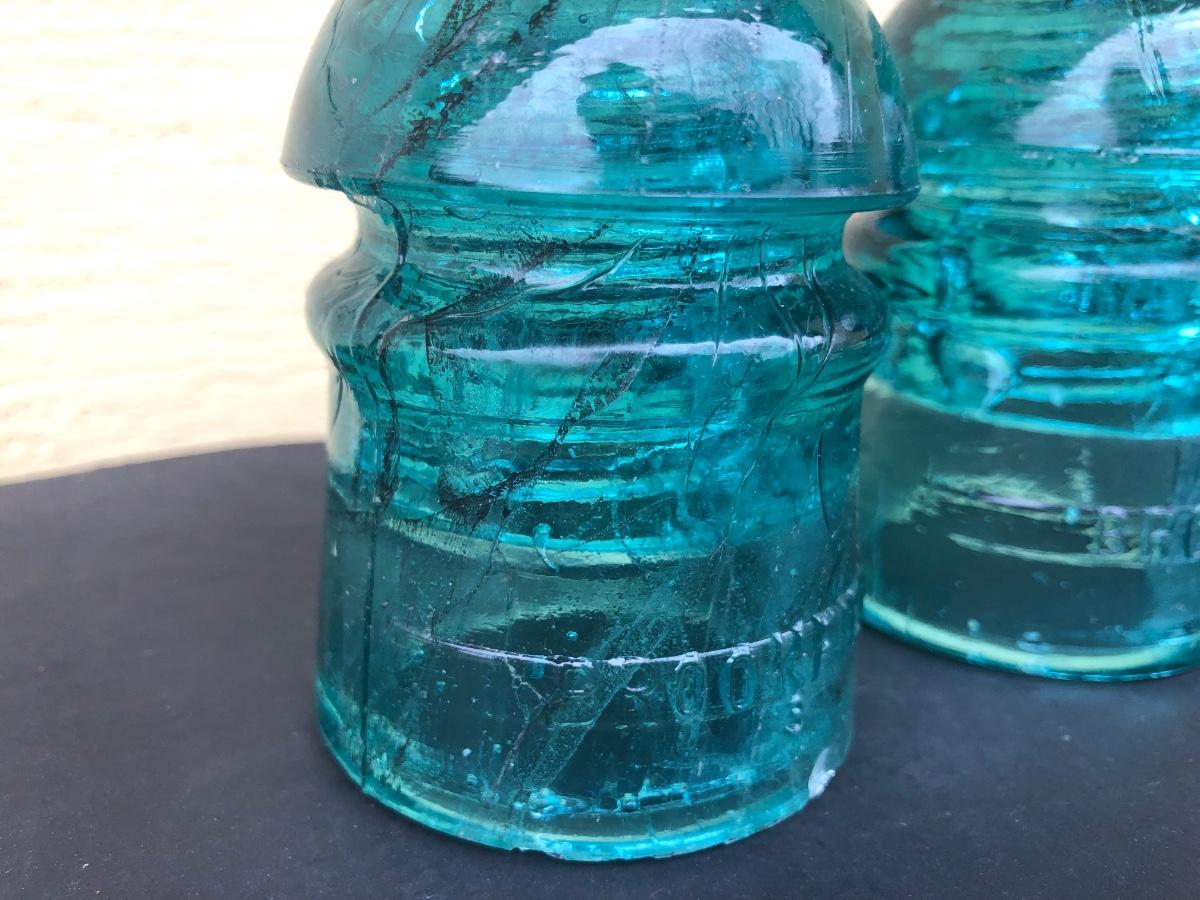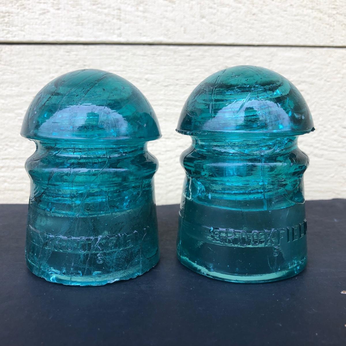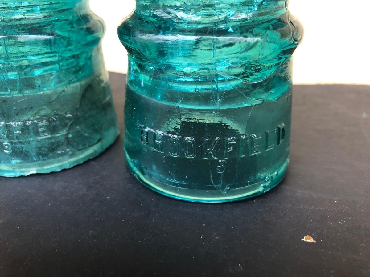 LOT 301G: Vintage Glass Collection - P&R Mfg Co Waterbury, CT Oil Lamp, Hand Blown Corked Jar & Brookfield Insulators