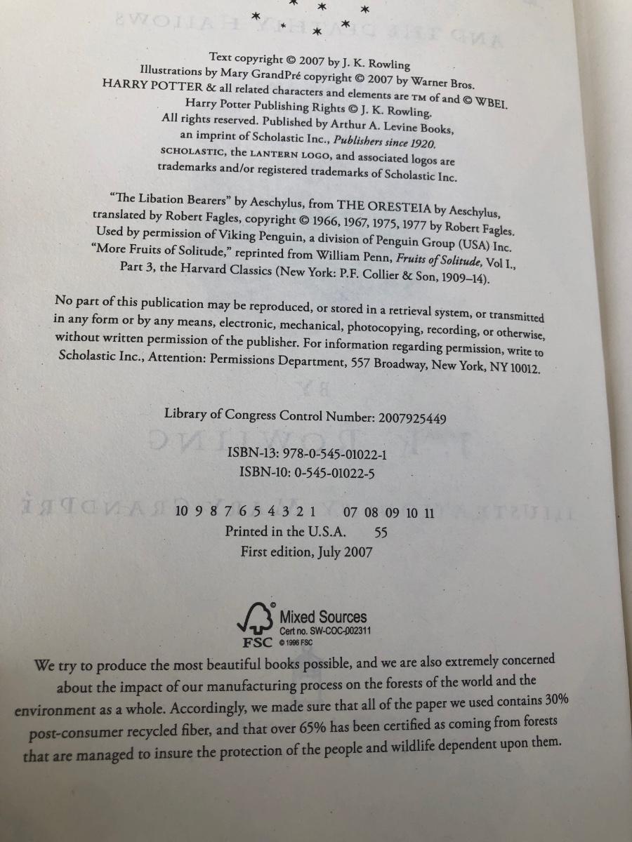 LOT 310G: First U.S. Edition Harry Potter Hard Cover Books by J.K. Rowling (3-7)