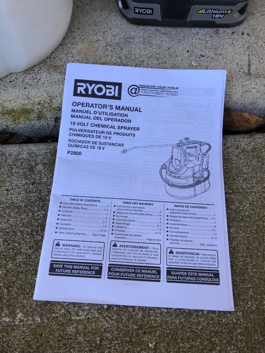 LOT 321G: Ryobi 18 Volt Chemical Sprayer w/ Operator's Manual & One+ Lithium Battery / Charger