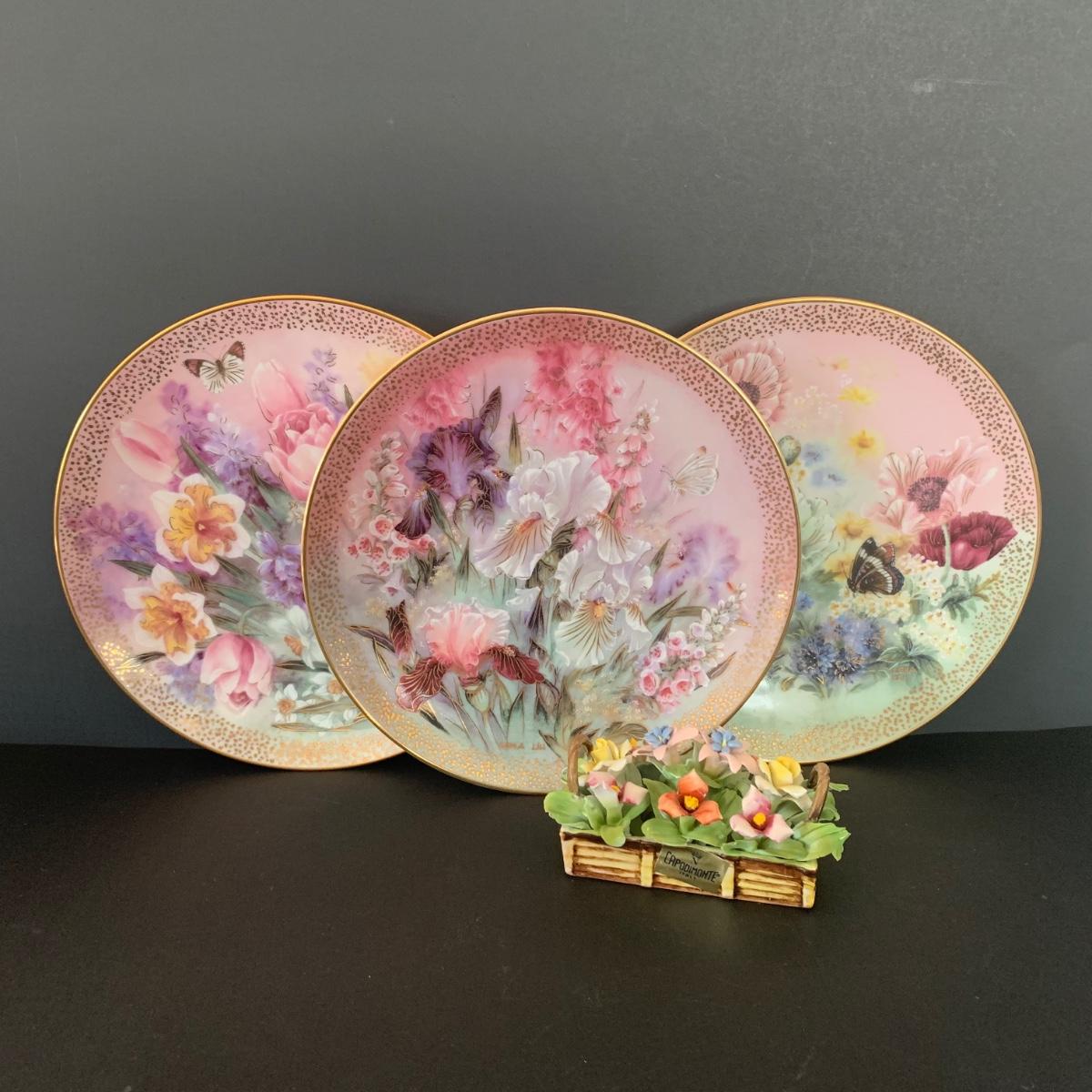 LOT 179: Capodimonte Basket of Flowers, Lena Liu Symphony of Shimmering Beauty Series Plates