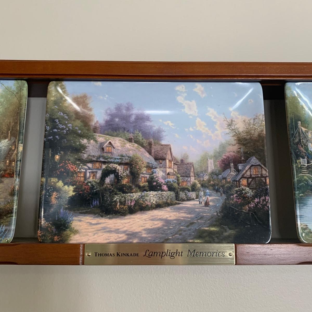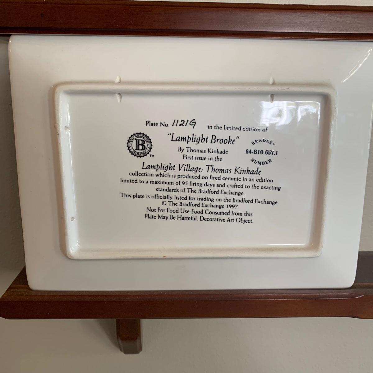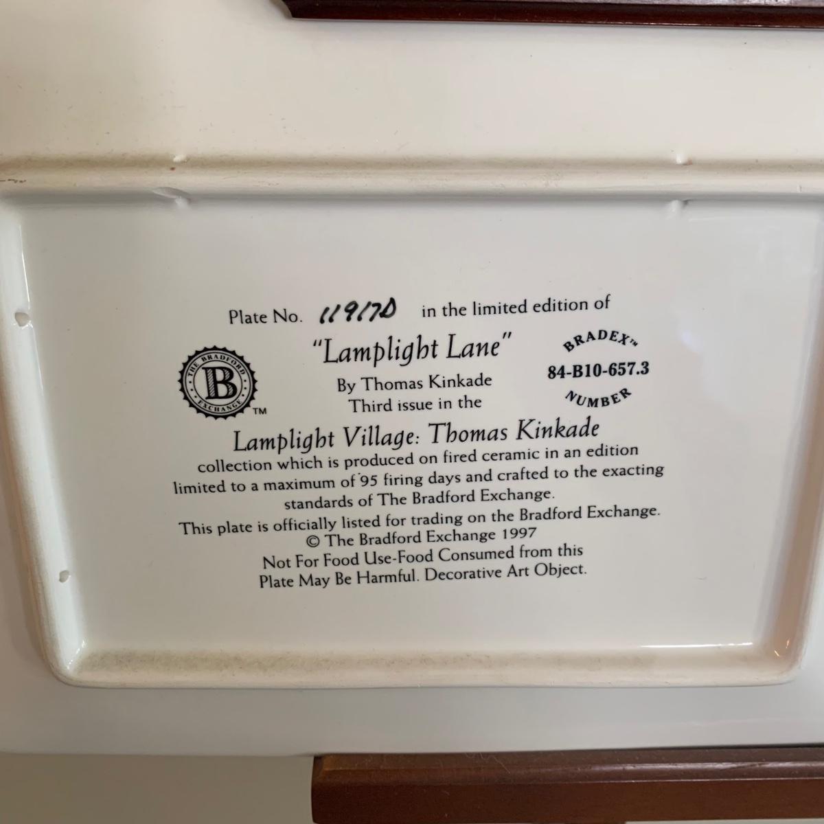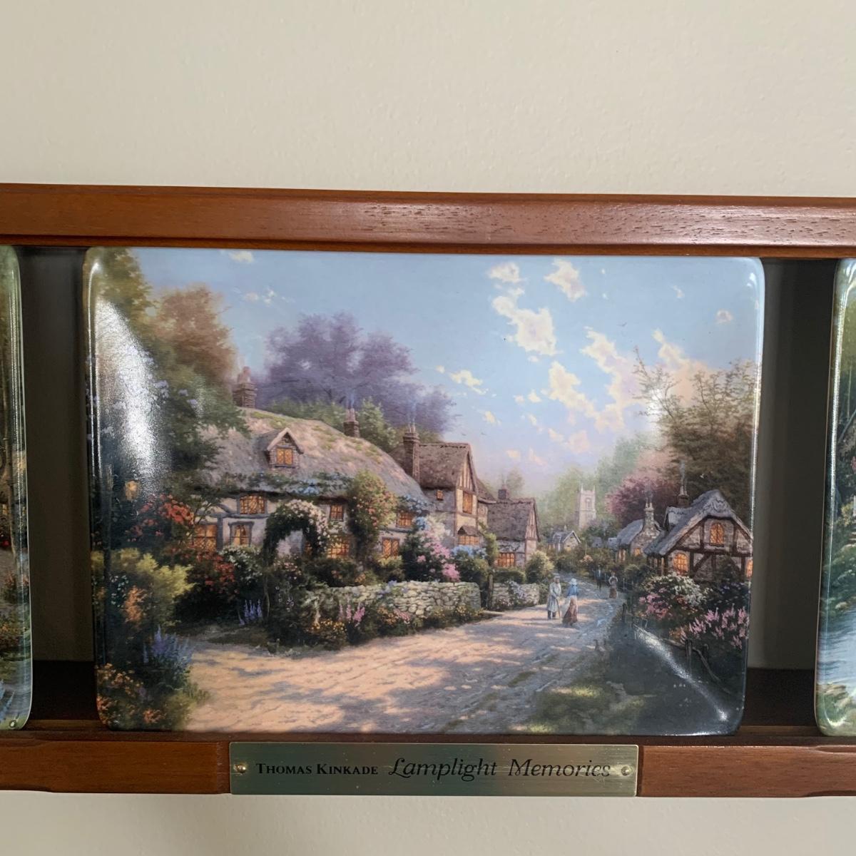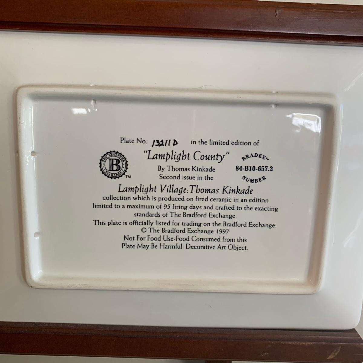 LOT 188: Bradford Exchange Thomas Kinkade's Lamplight Village & Lamplight Memories Collectors Plates w/Wooden Displays