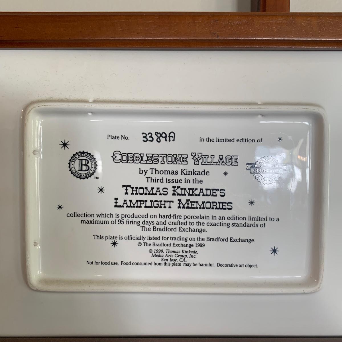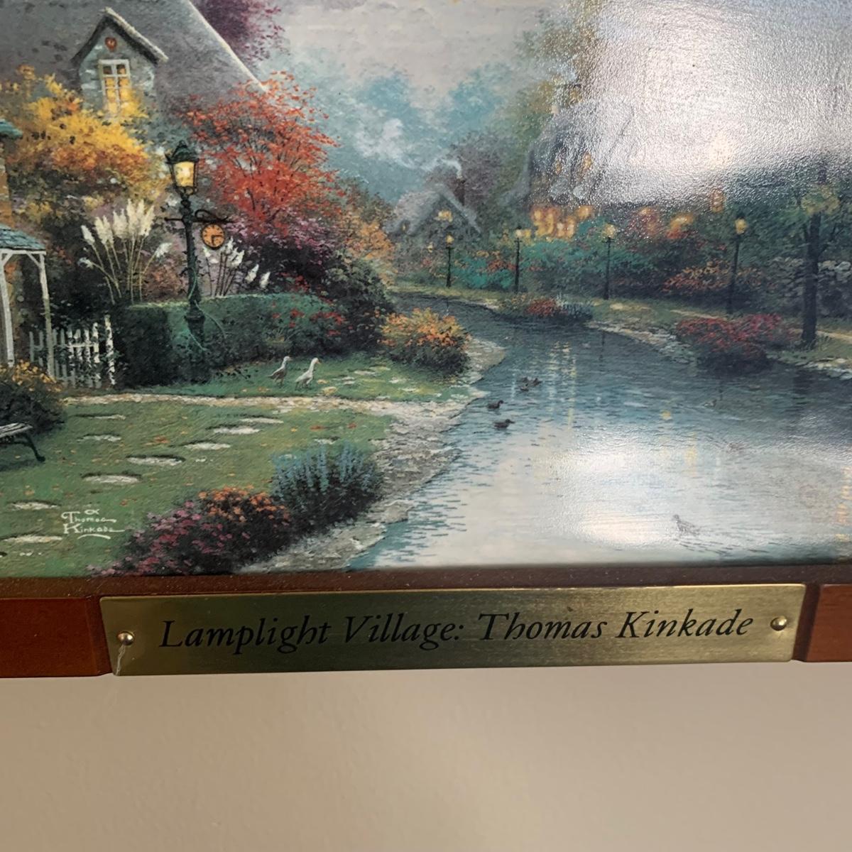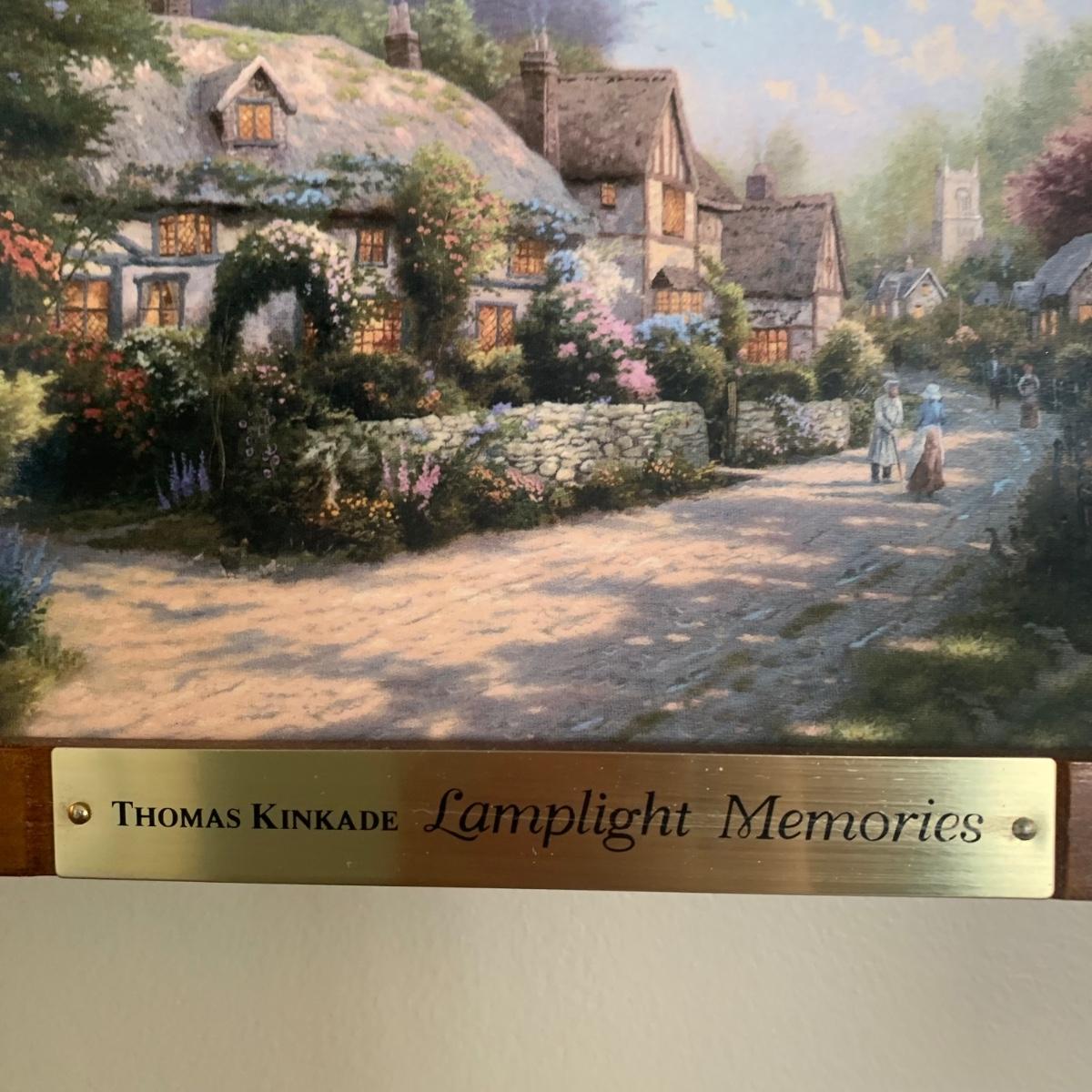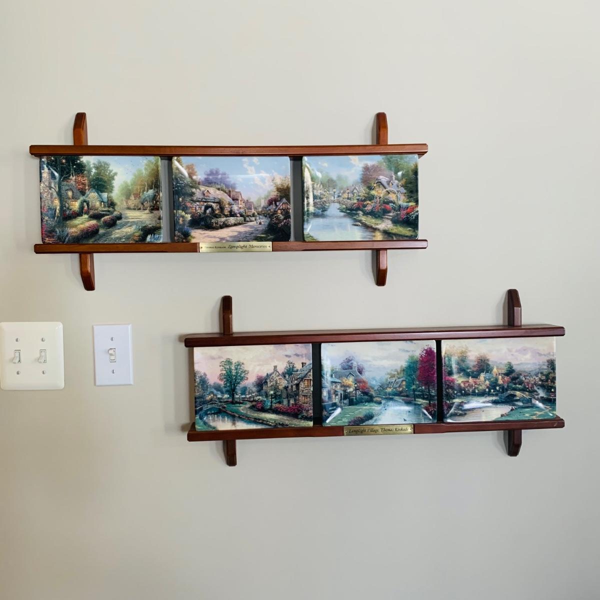 LOT 188: Bradford Exchange Thomas Kinkade's Lamplight Village & Lamplight Memories Collectors Plates w/Wooden Displays