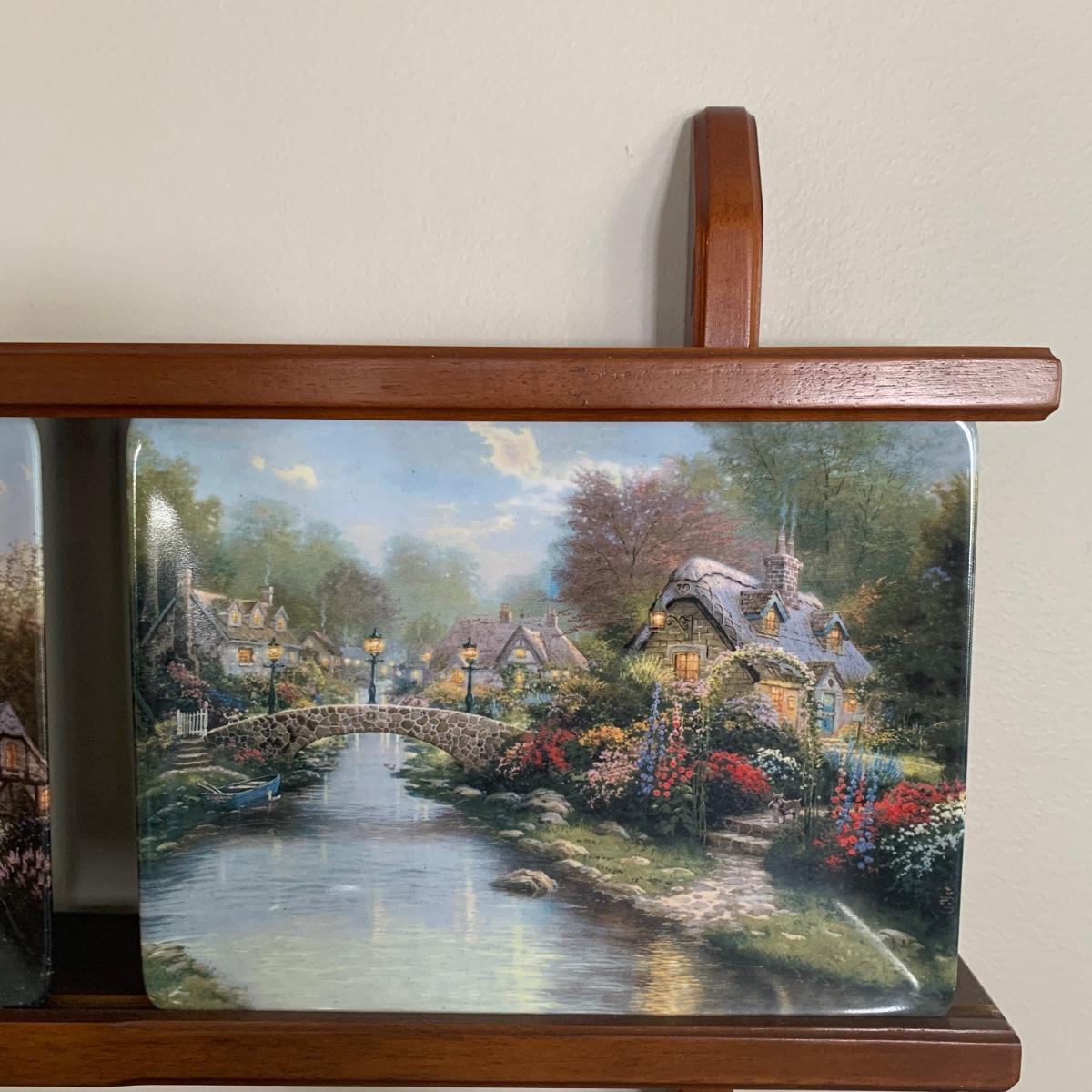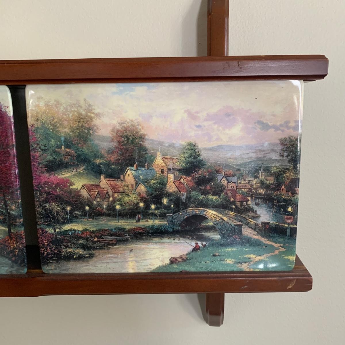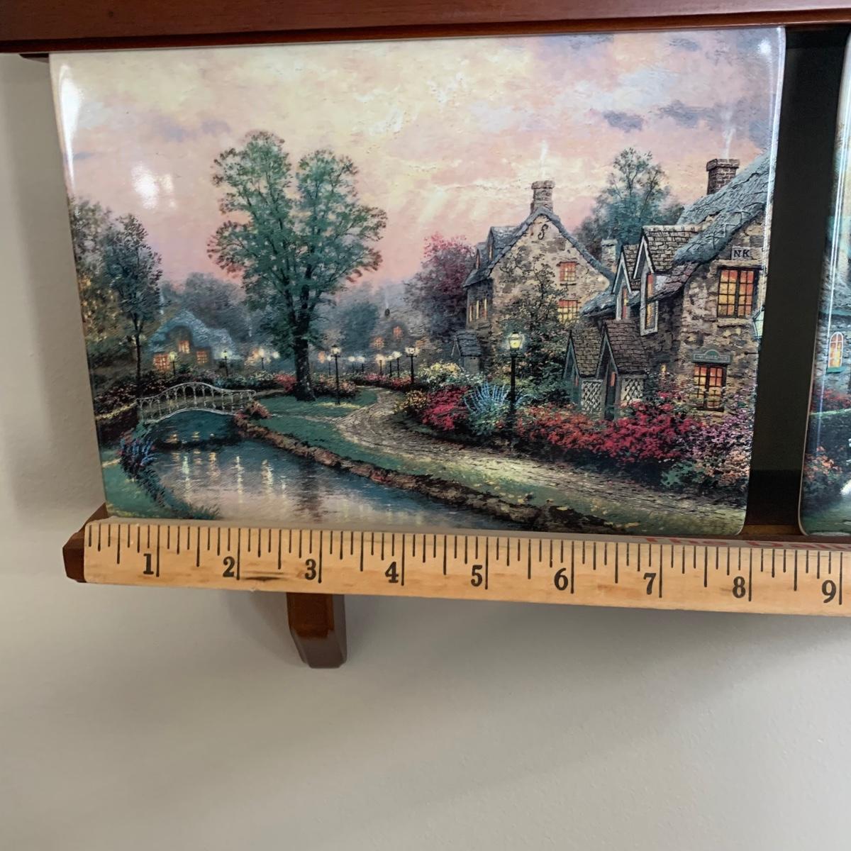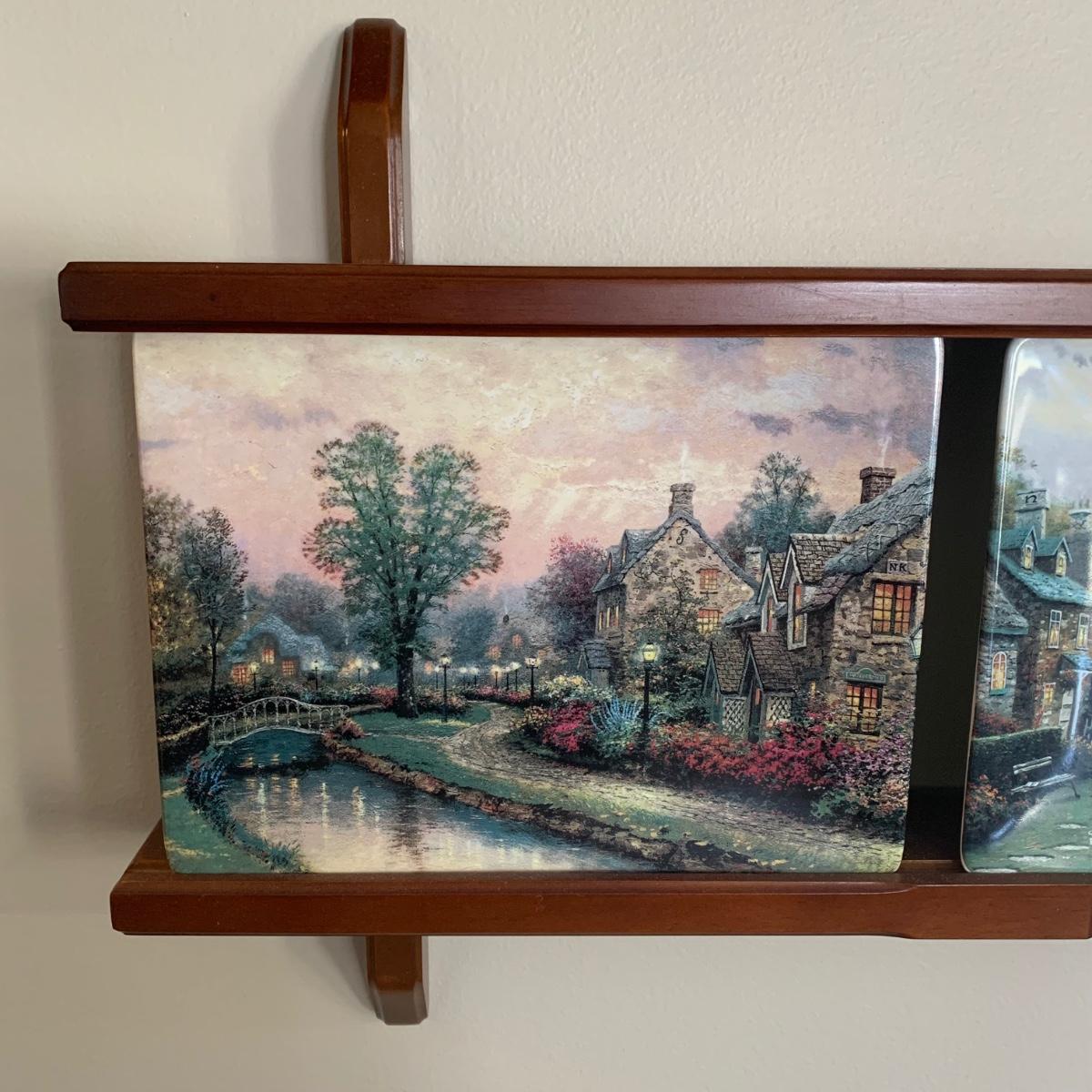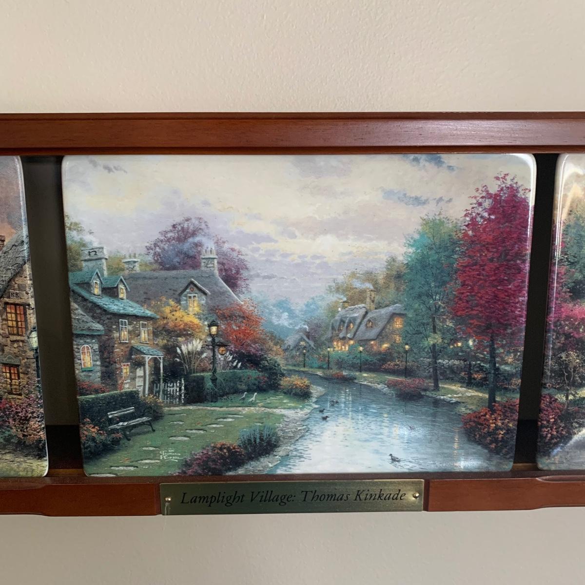LOT 188: Bradford Exchange Thomas Kinkade's Lamplight Village & Lamplight Memories Collectors Plates w/Wooden Displays
