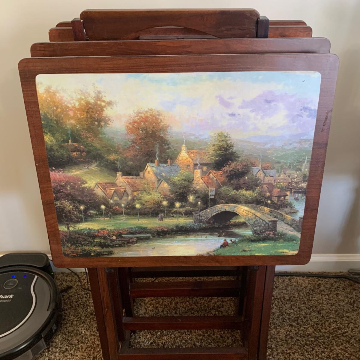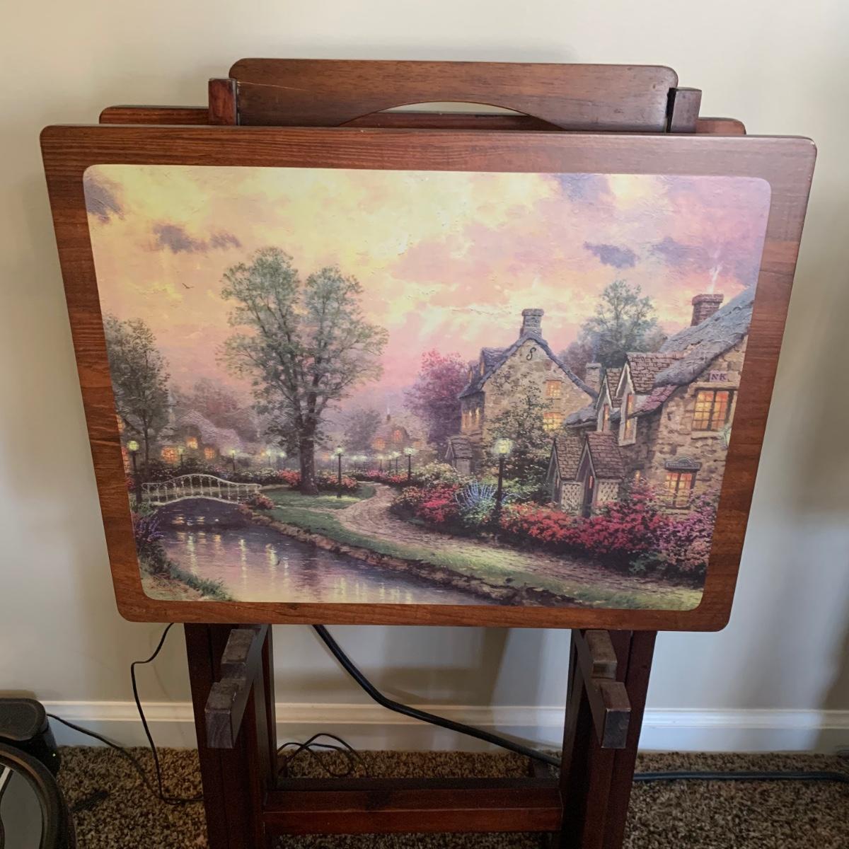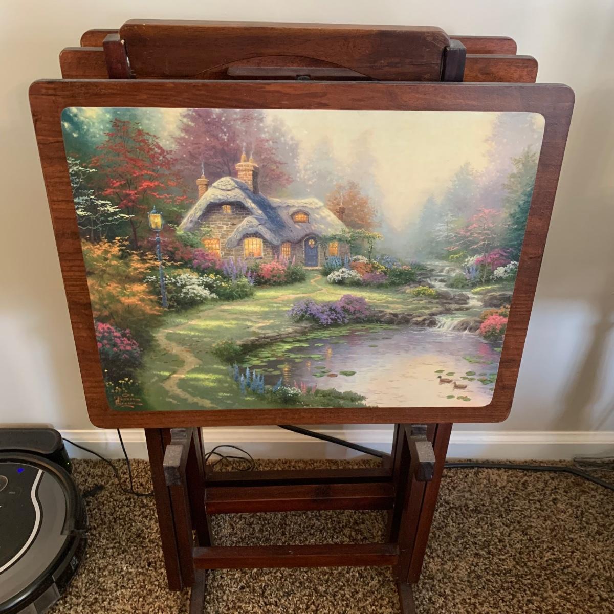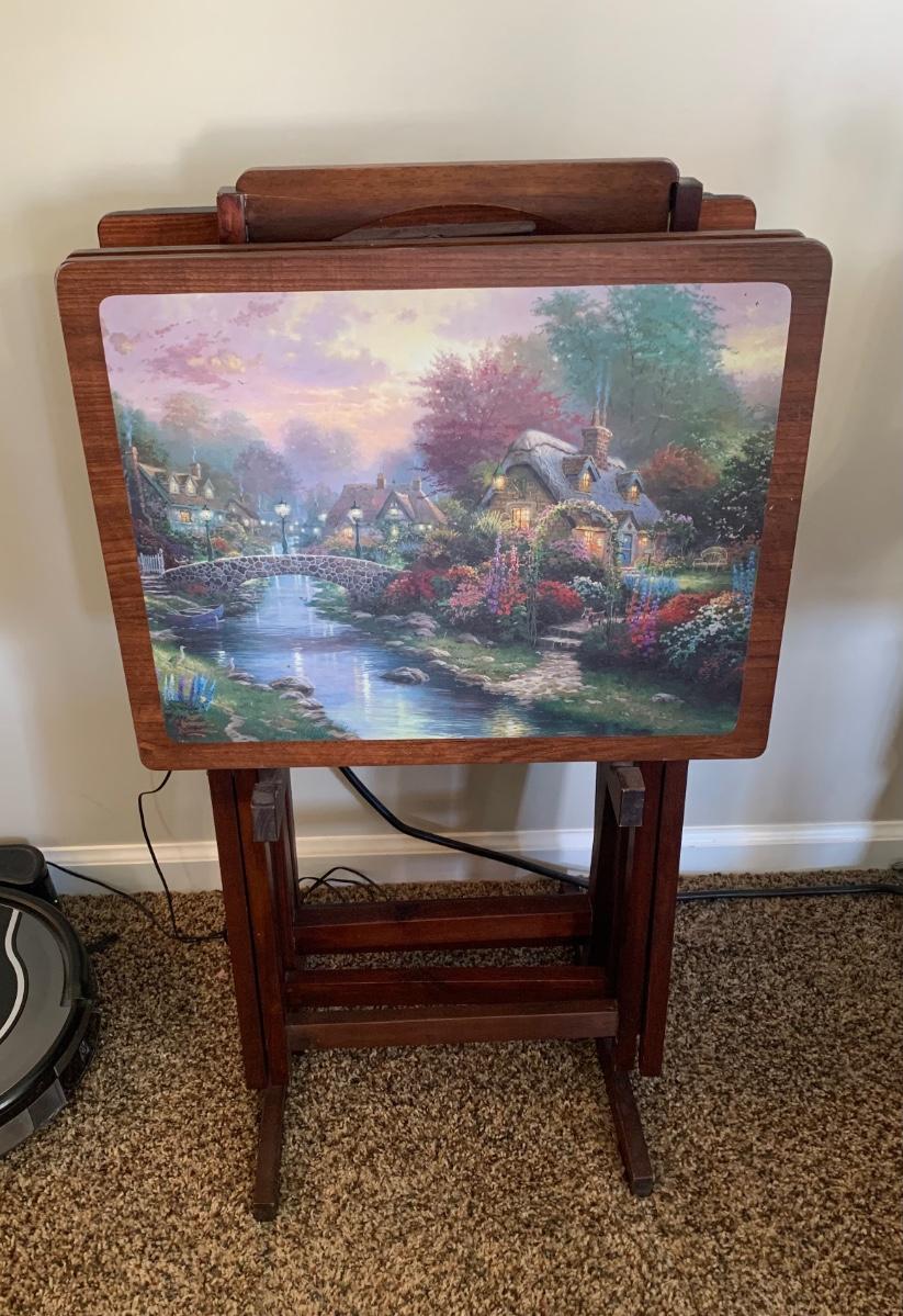 LOT 189: Thomas Kinkade Wooden TV Tables with Stand