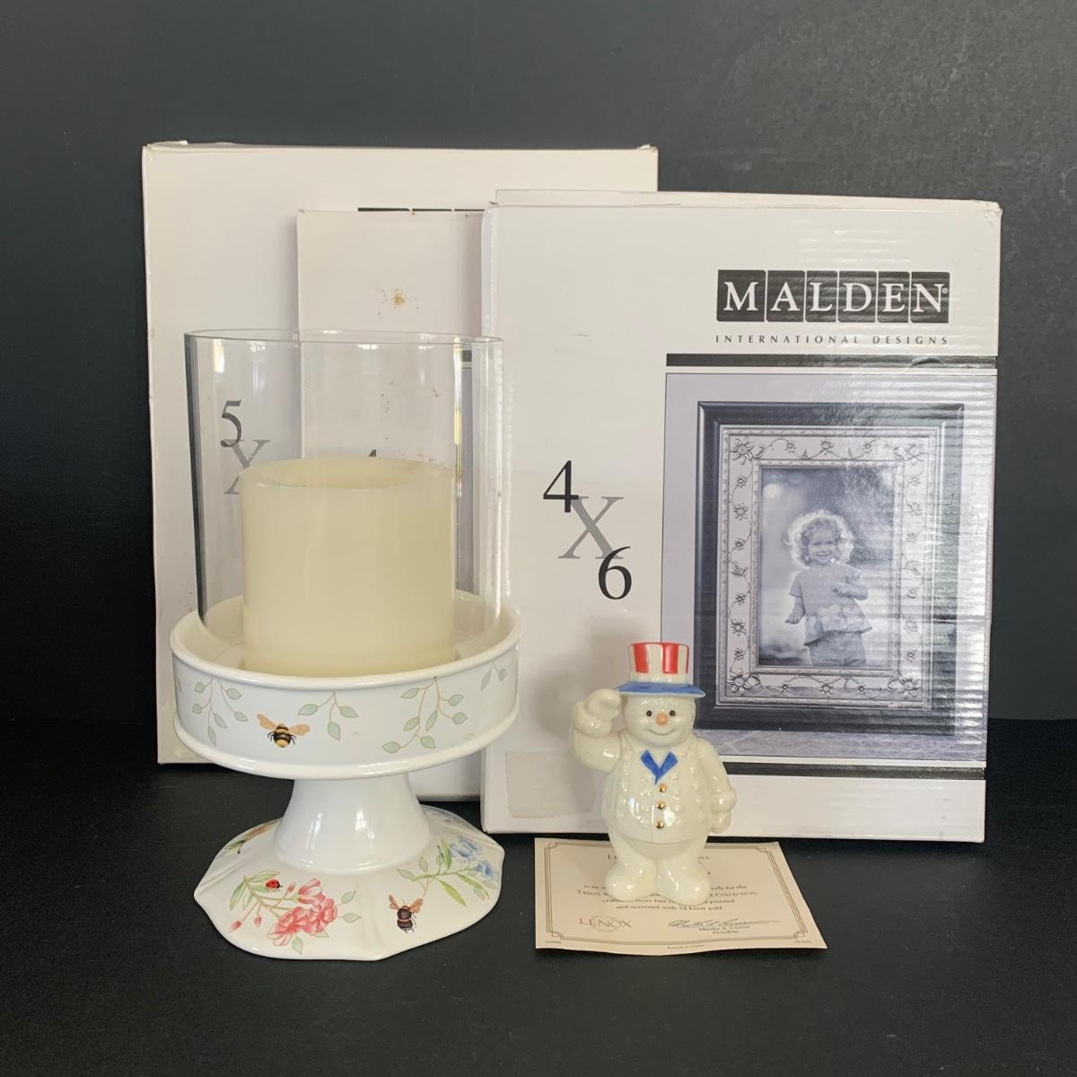 LOT 192: Lenox Butterfly Meadow Candle Holder, Lenox Snowy Patriot, Malden New in Package Picture Frames