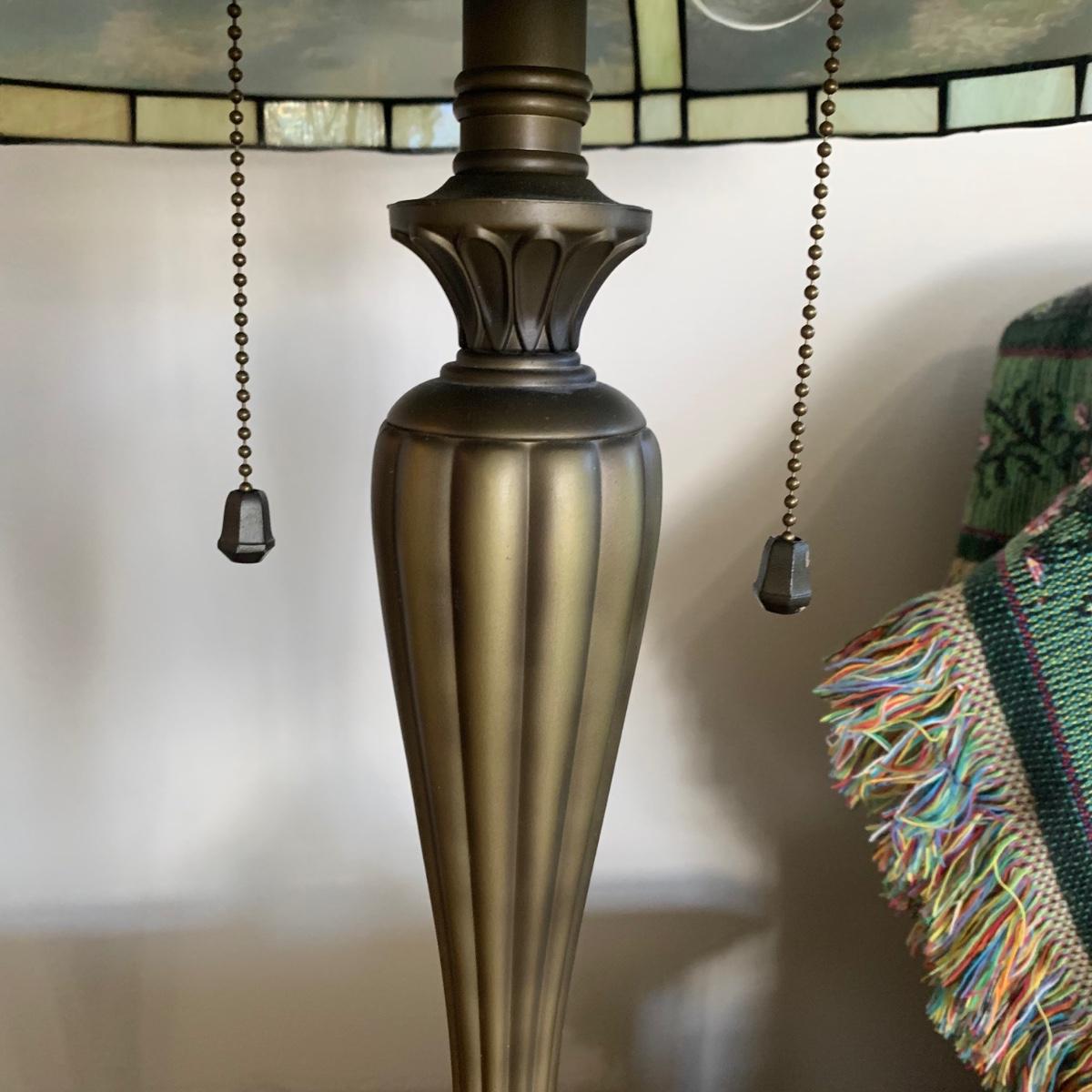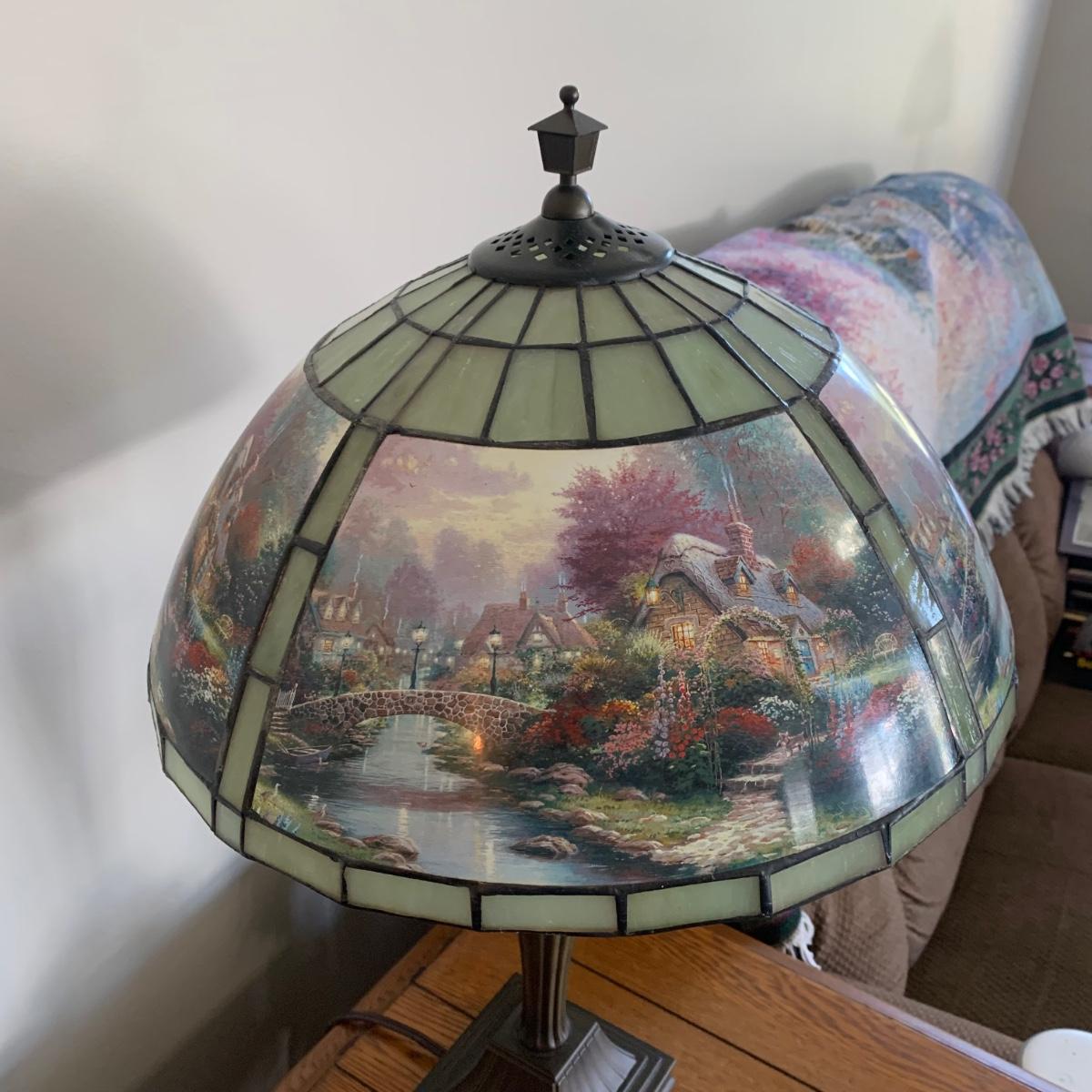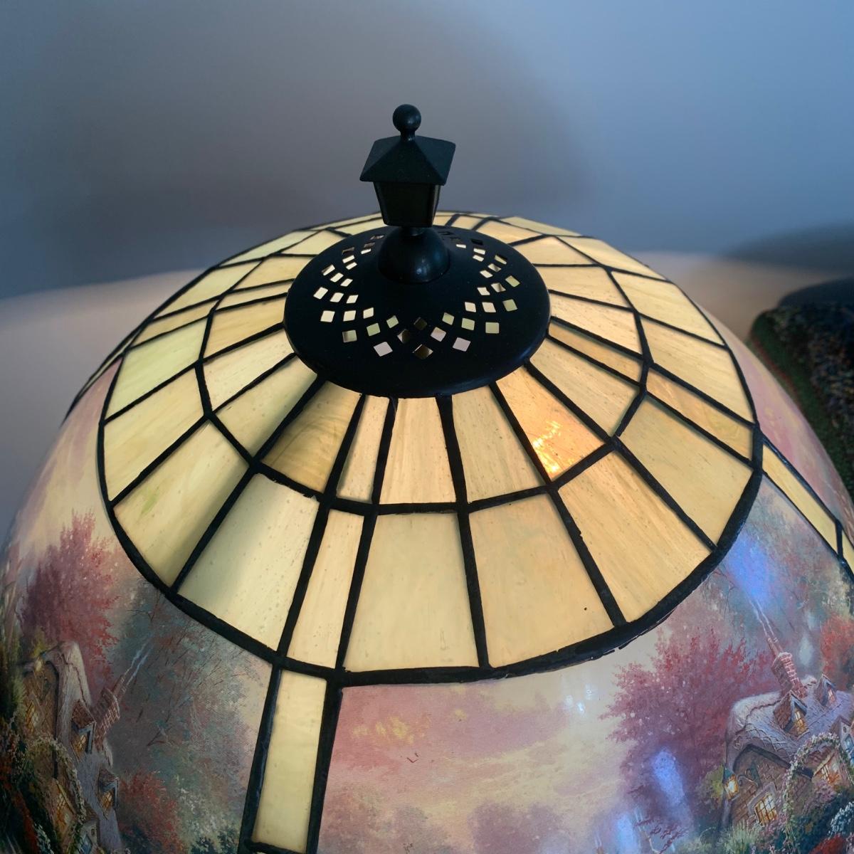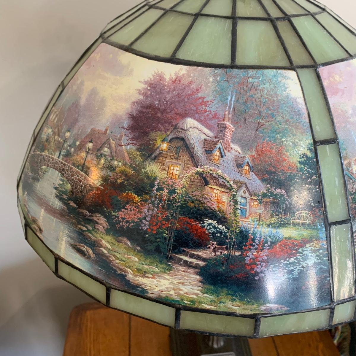 LOT 197: Thomas Kinkade Lamplight Bridge-Stained Glass Table Lamp