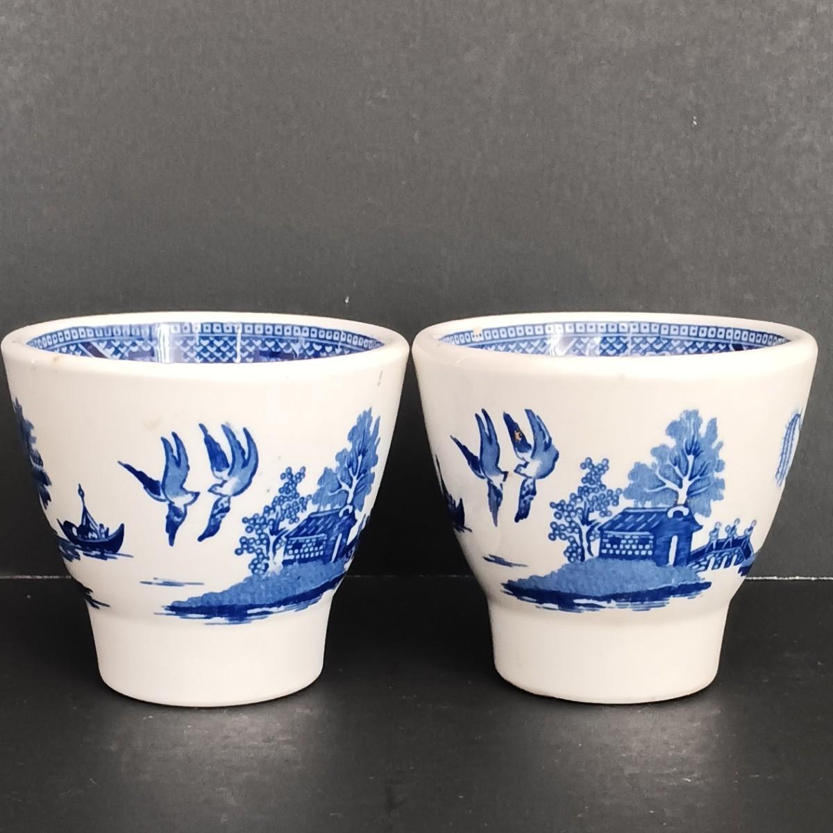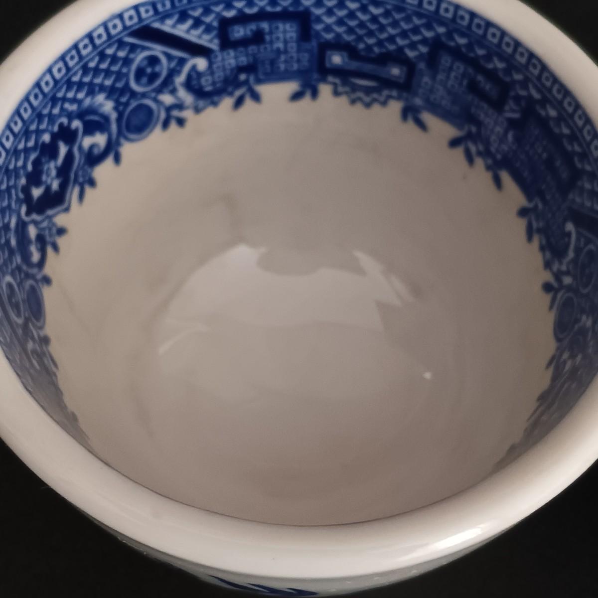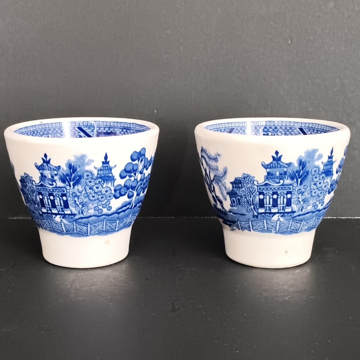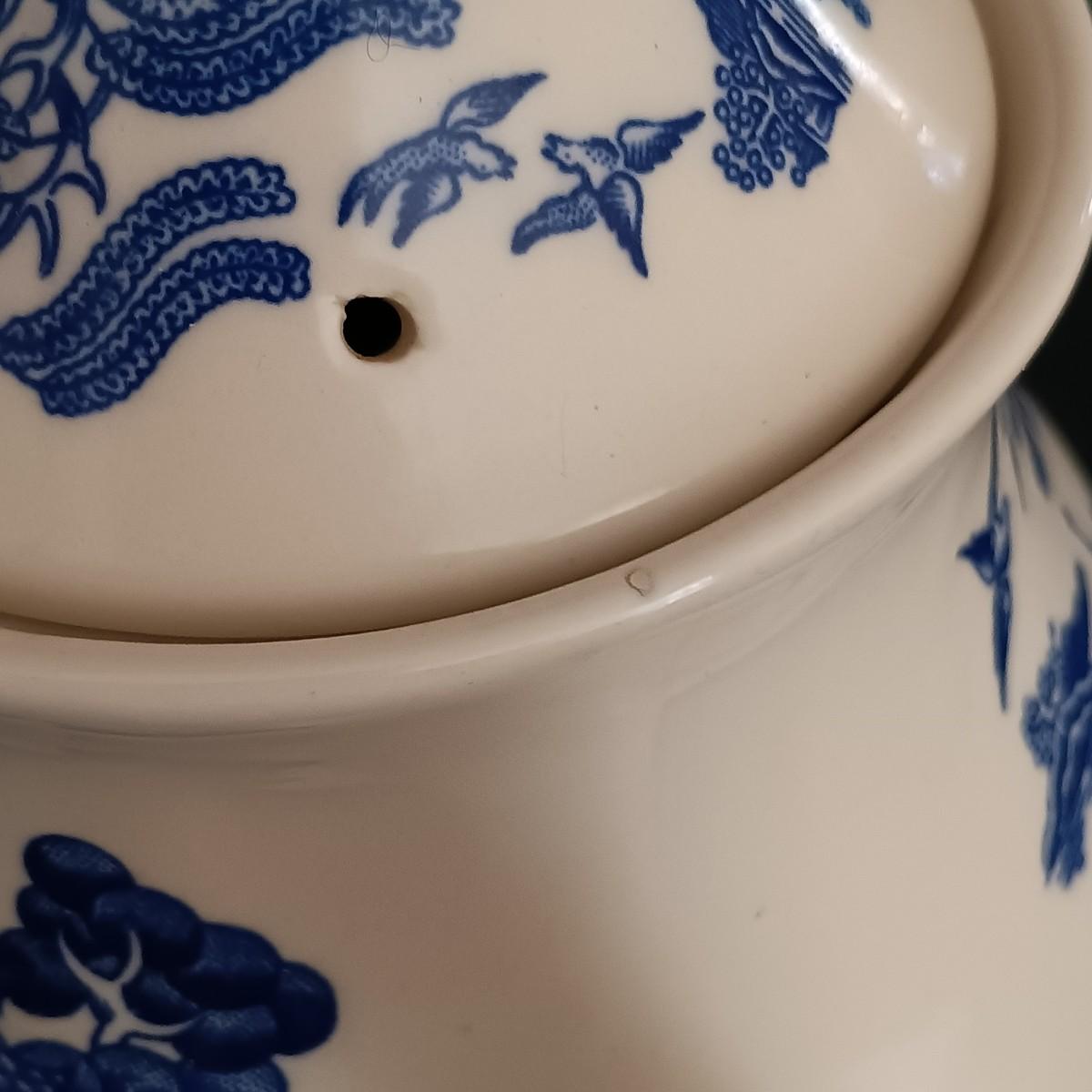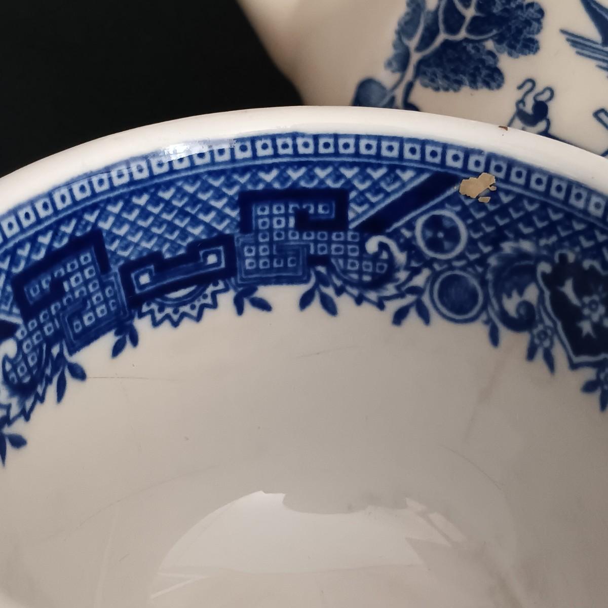 LOT 8: Vintage Blue Willow Pattern Tea Pot w/ Pair of Shenango China Cups