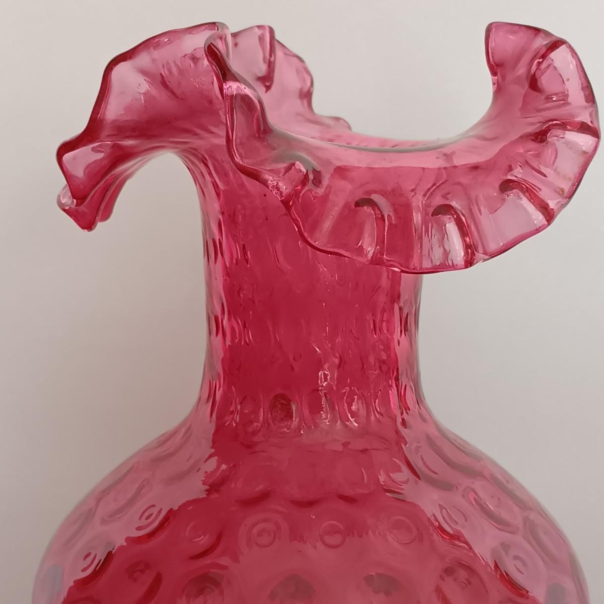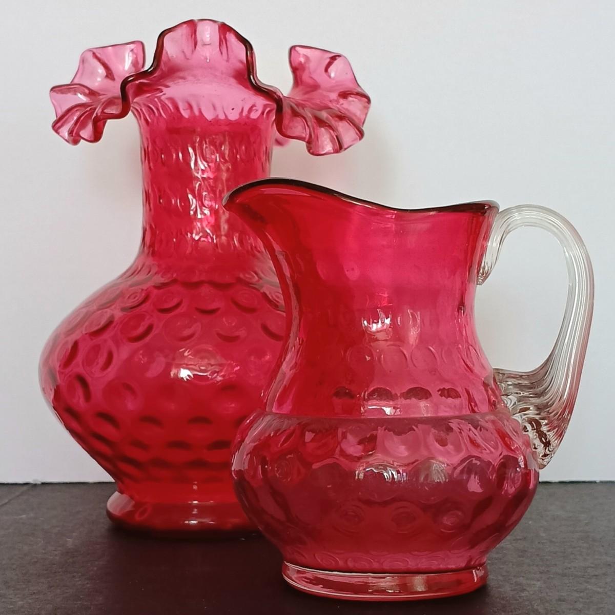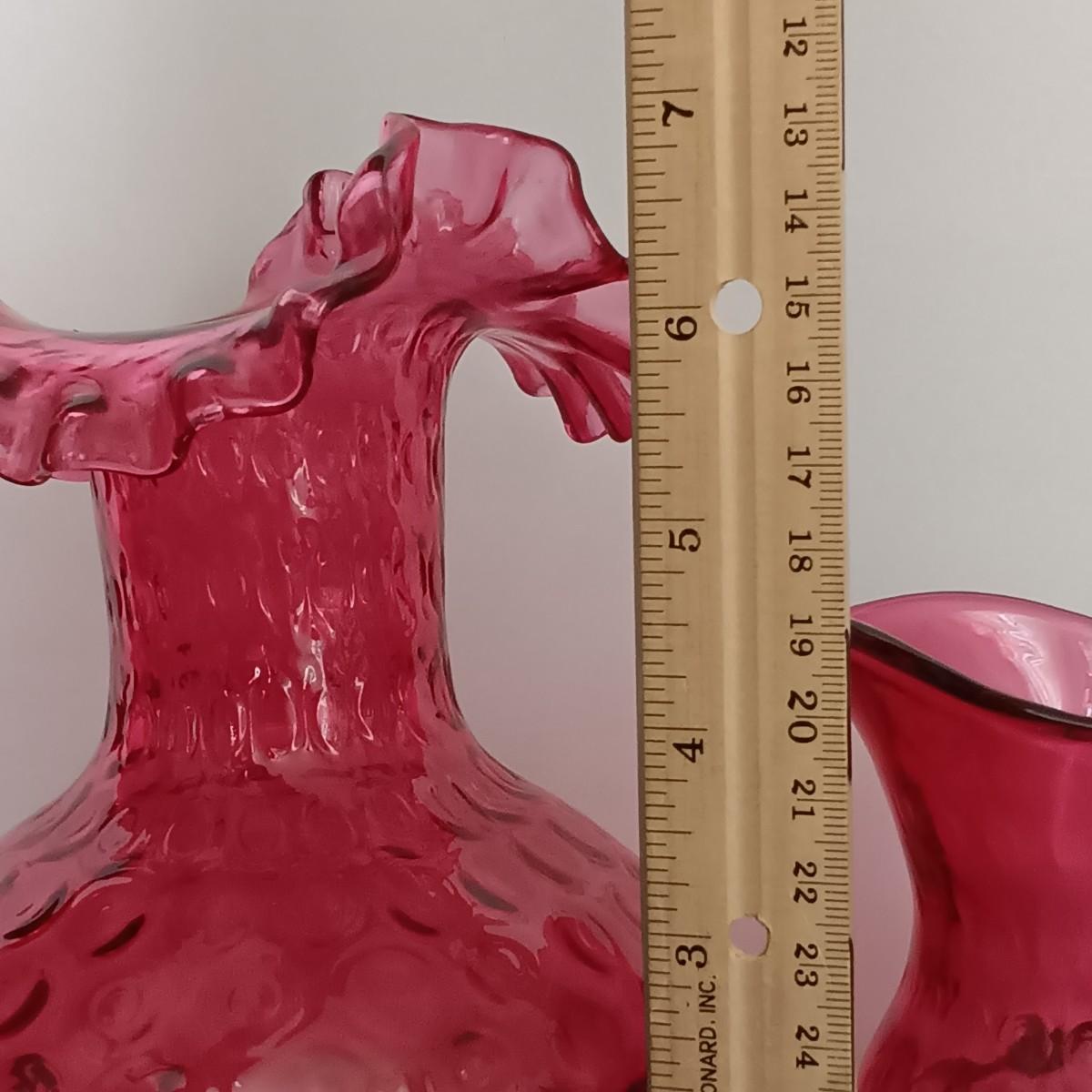 LOT 10: Cranberry Glass Pitcher with Ruffled Vase