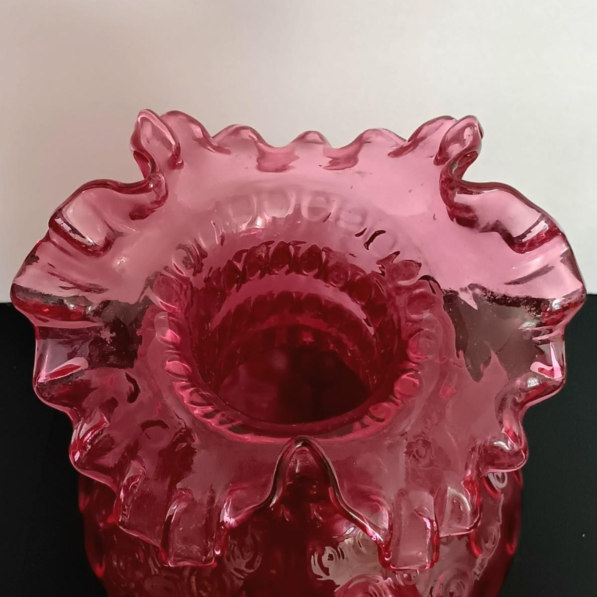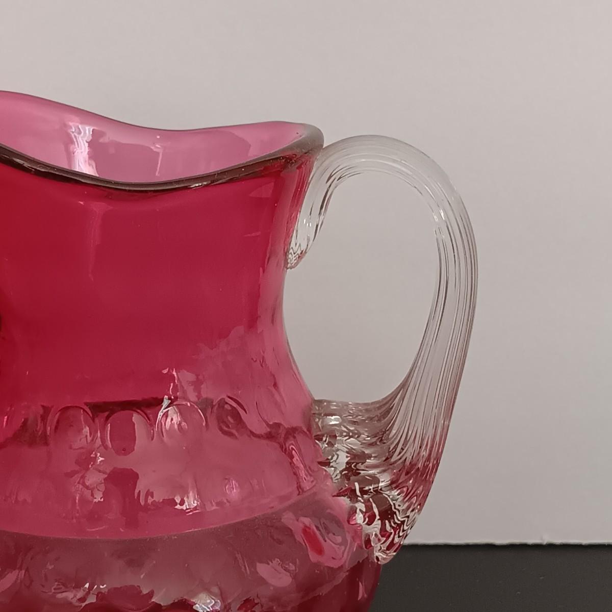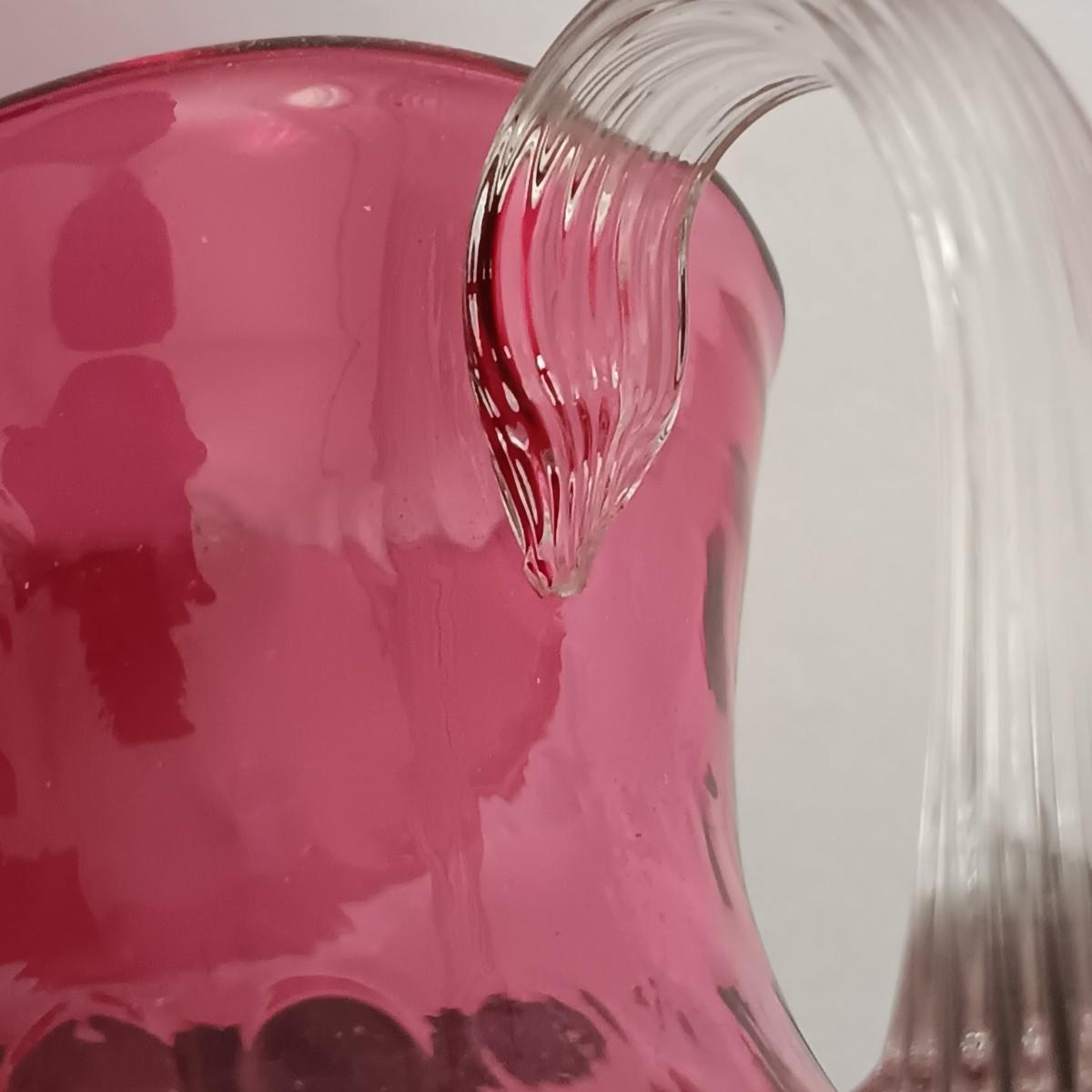 LOT 10: Cranberry Glass Pitcher with Ruffled Vase