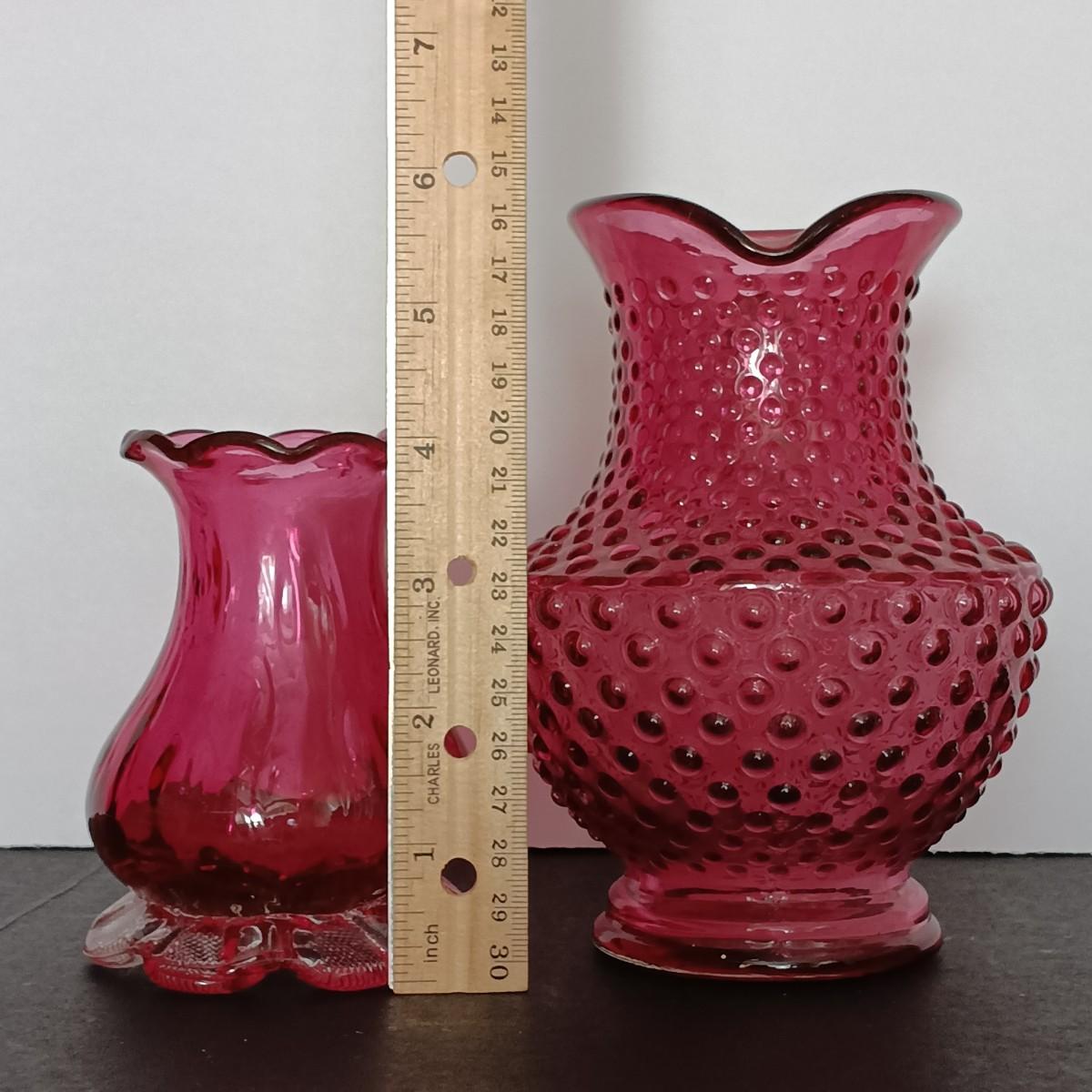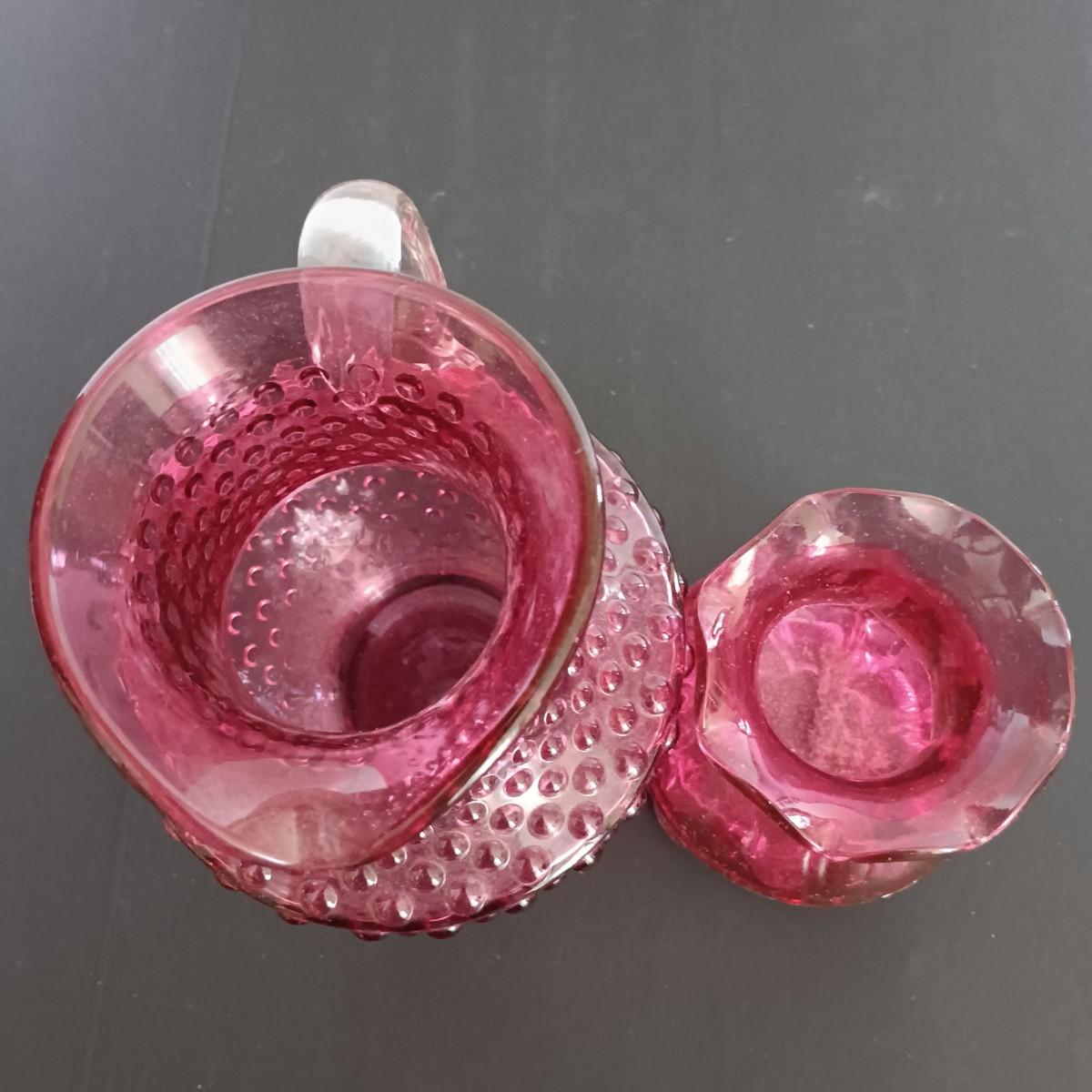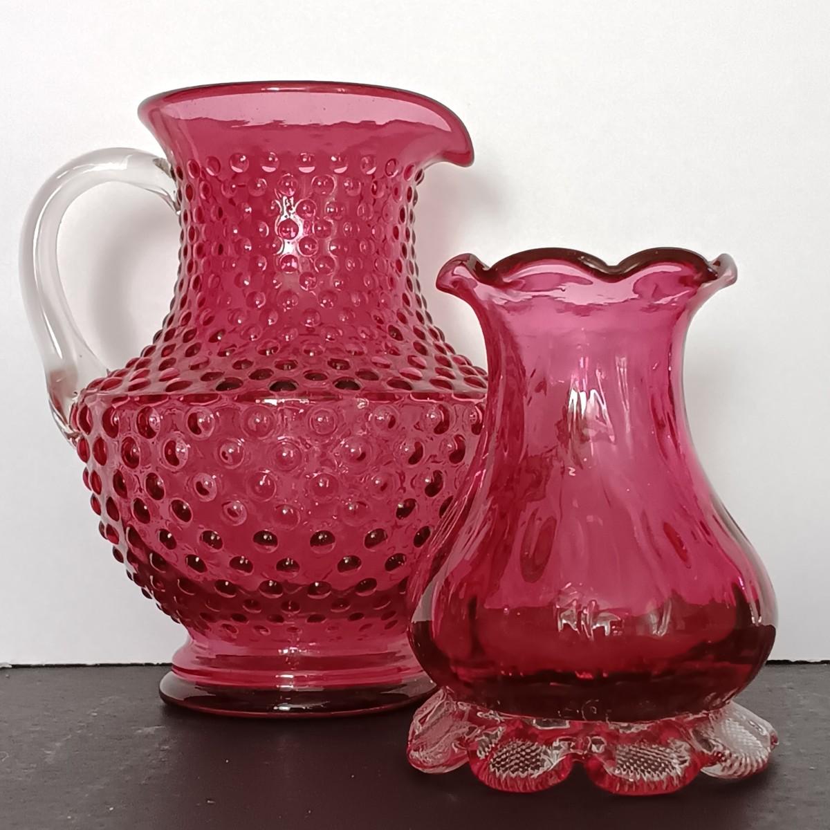 LOT 12: Cranberry Glass Pitcher with Small Vase
