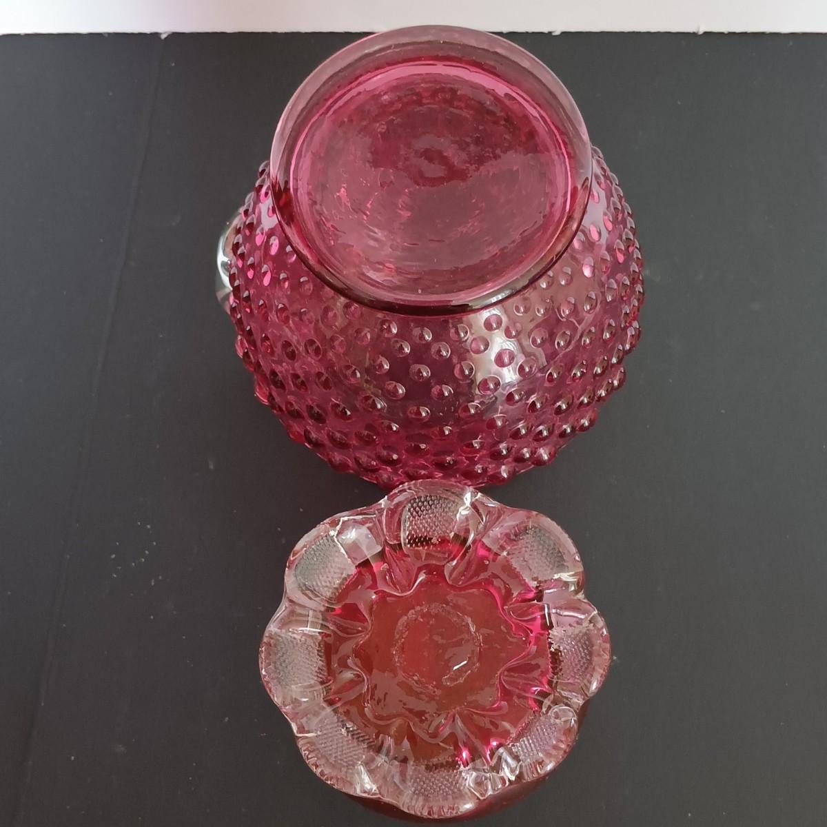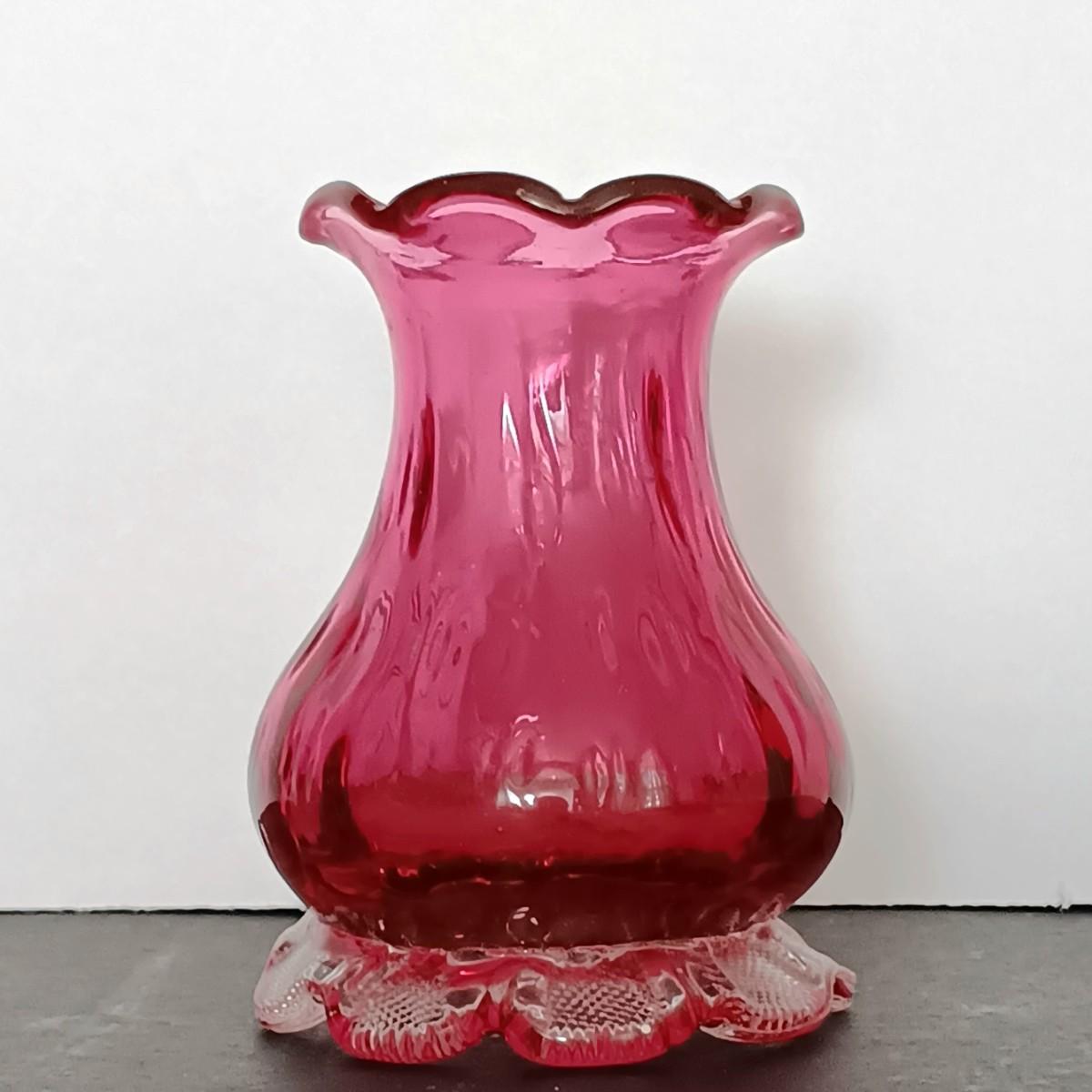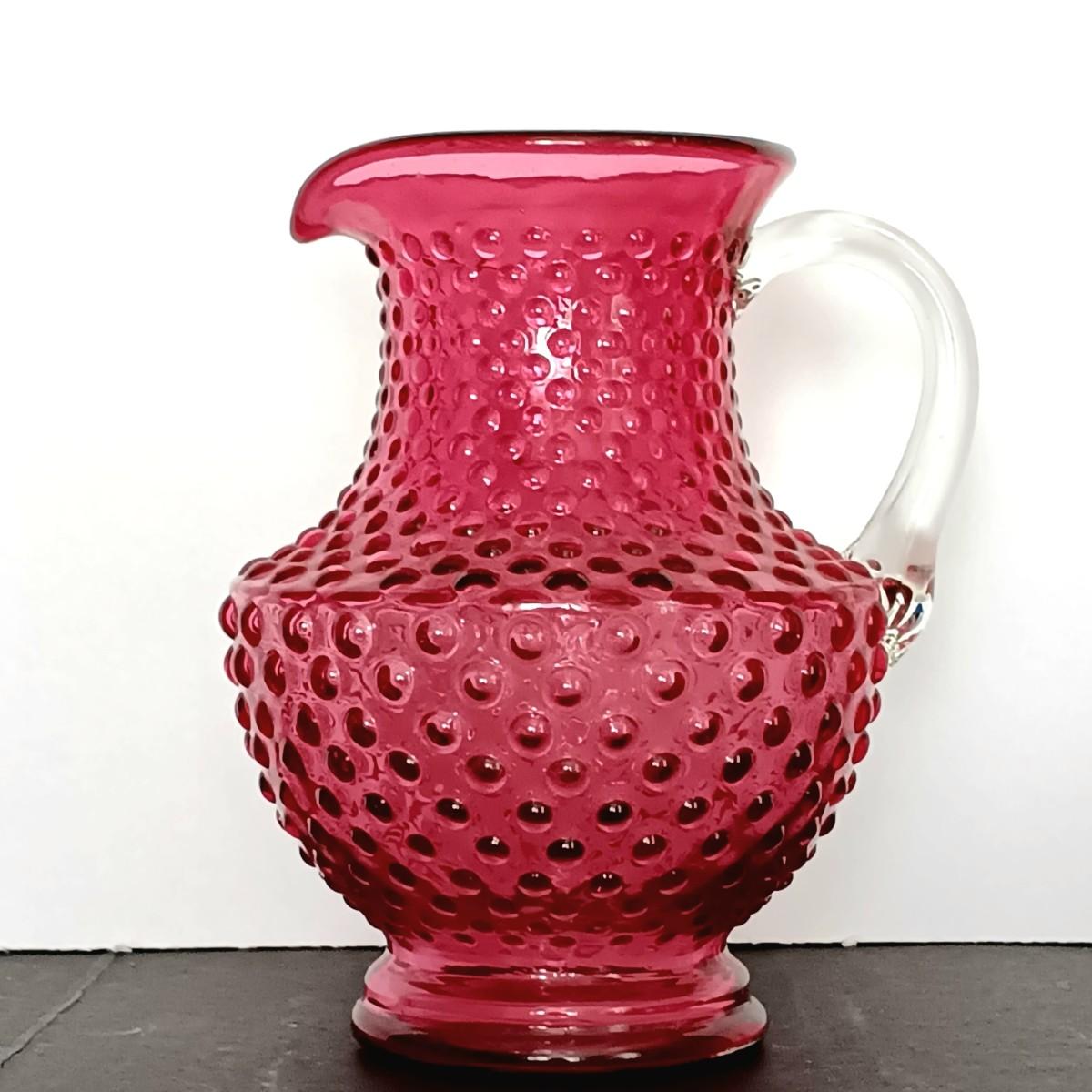 LOT 12: Cranberry Glass Pitcher with Small Vase