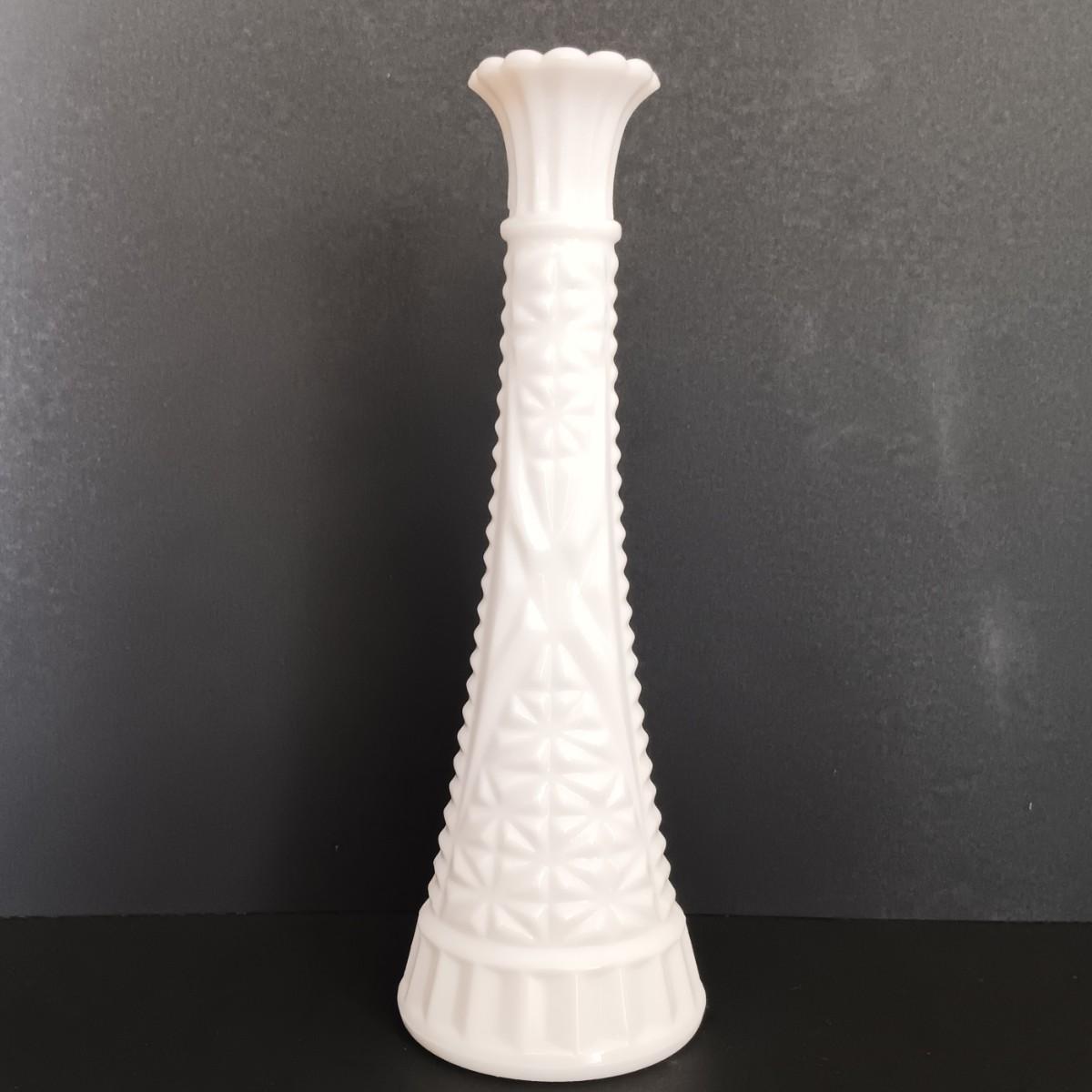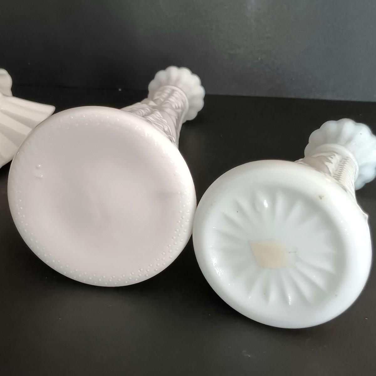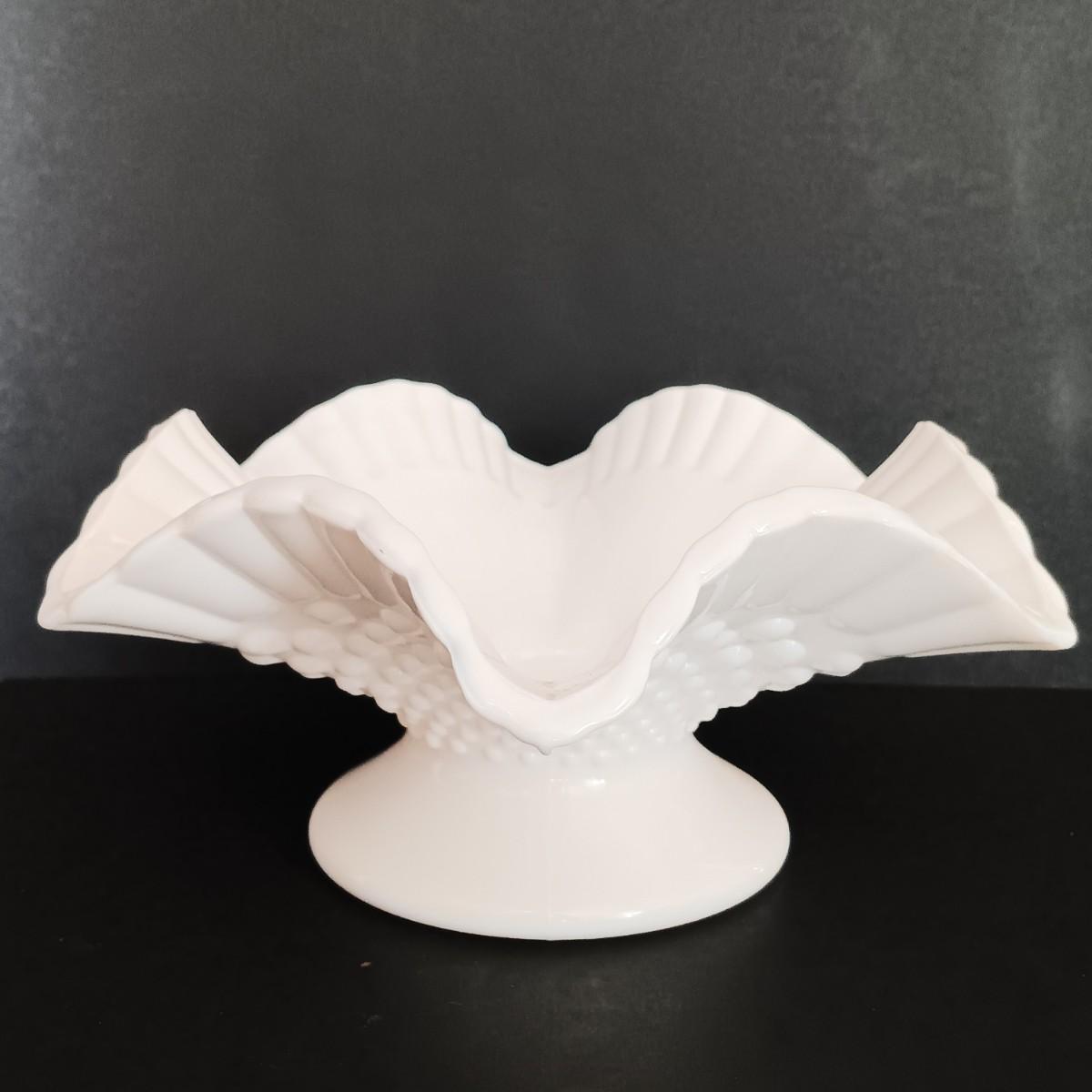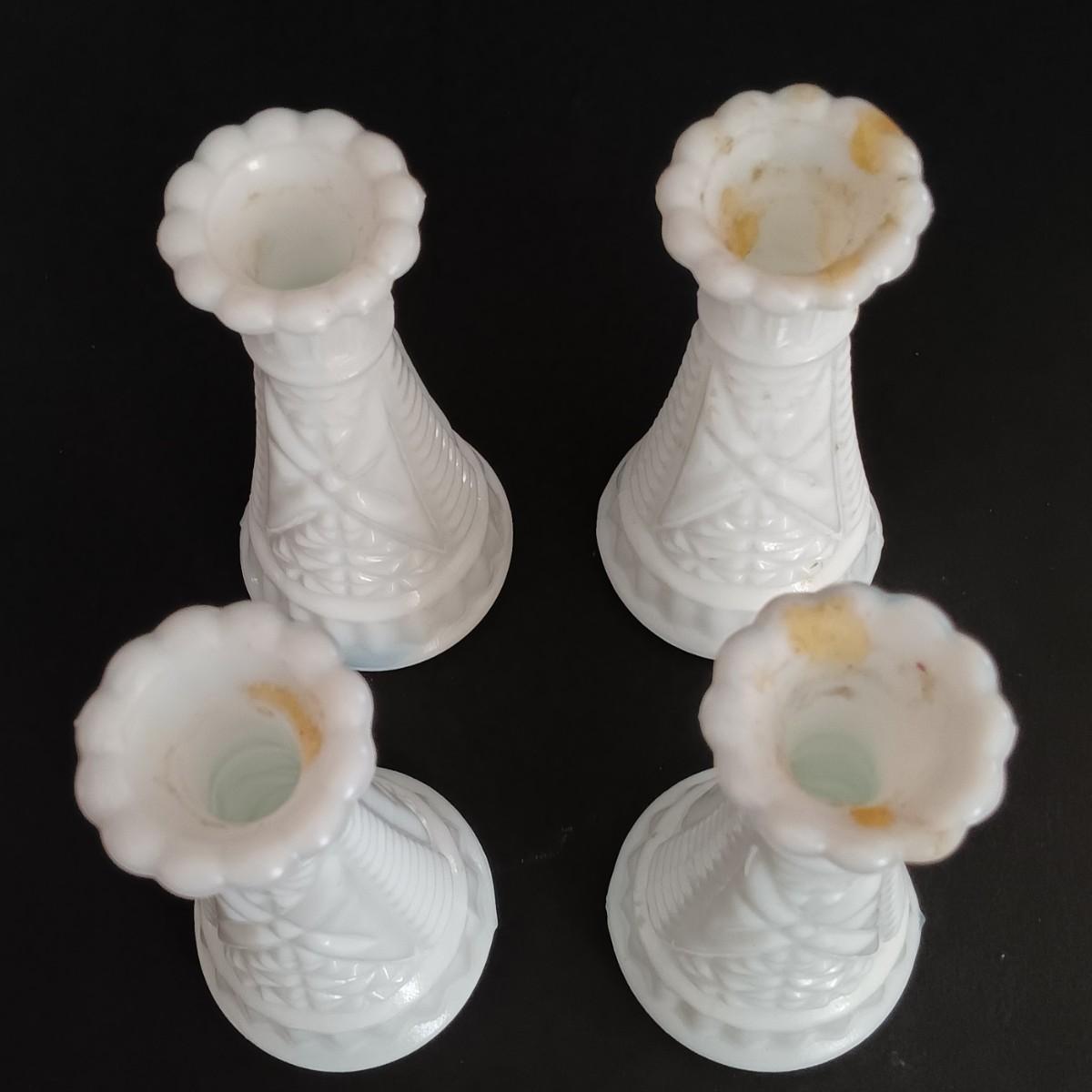 LOT 18: Milk Glass Collection- Set of 4 Candleholders w/ Bud Vase and Ruffled Bowl