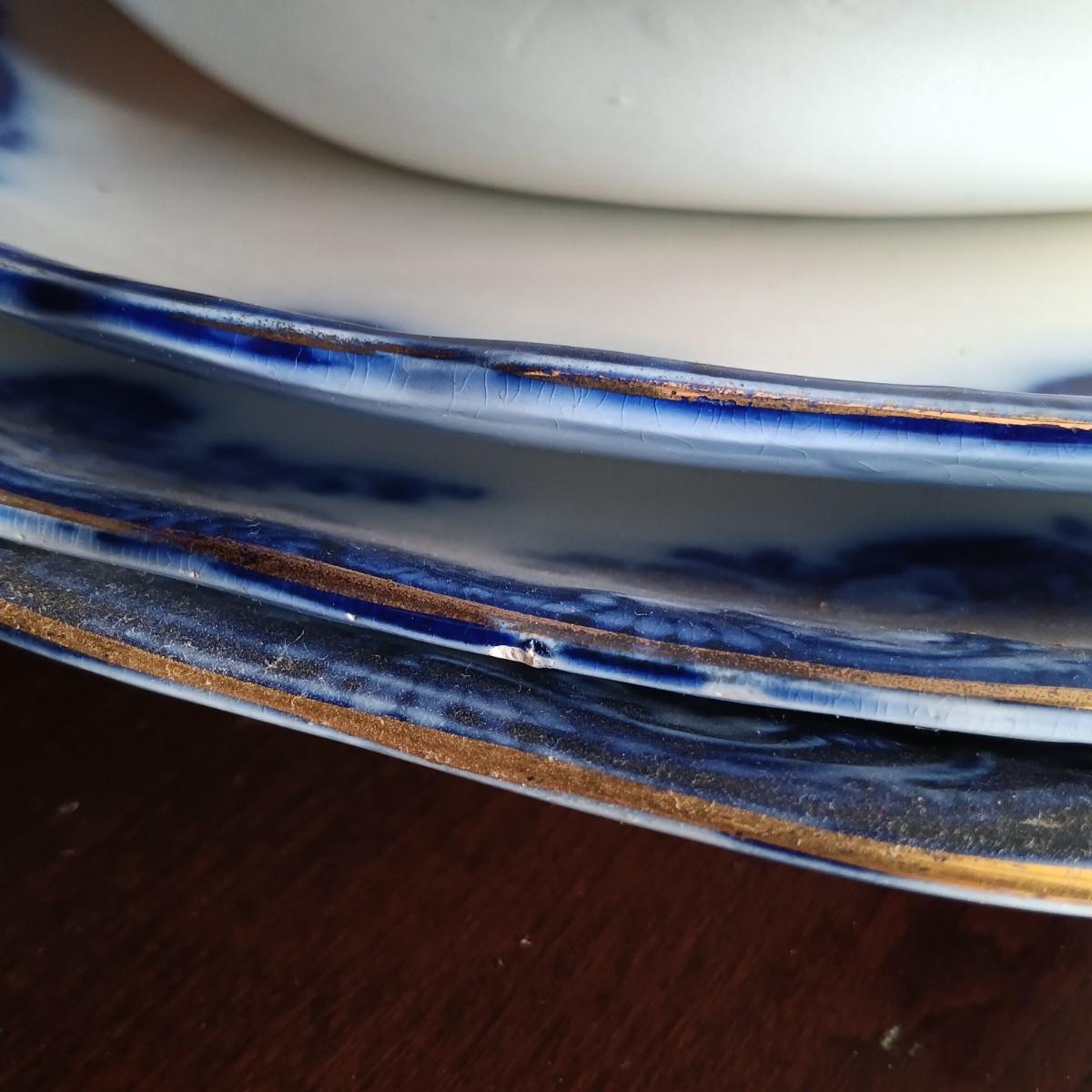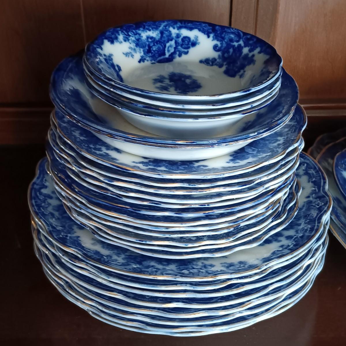Due to its age, some of the pottery may have some fleabite chips and scratches along the edges, as well as scratches, discoloration marks on the inside and bottom of china.