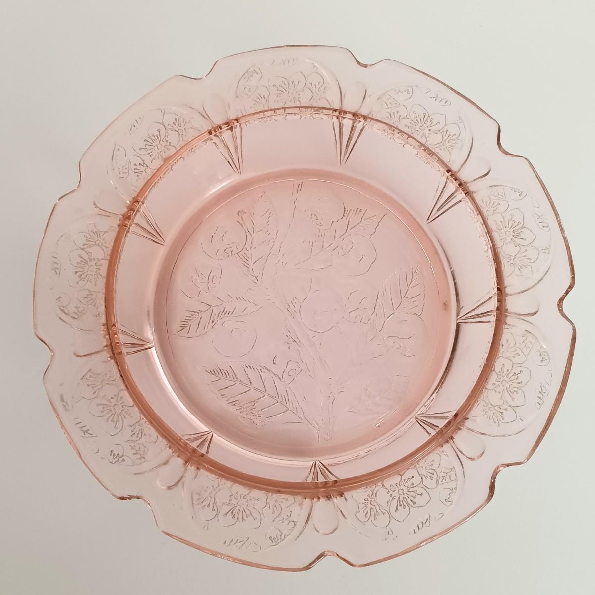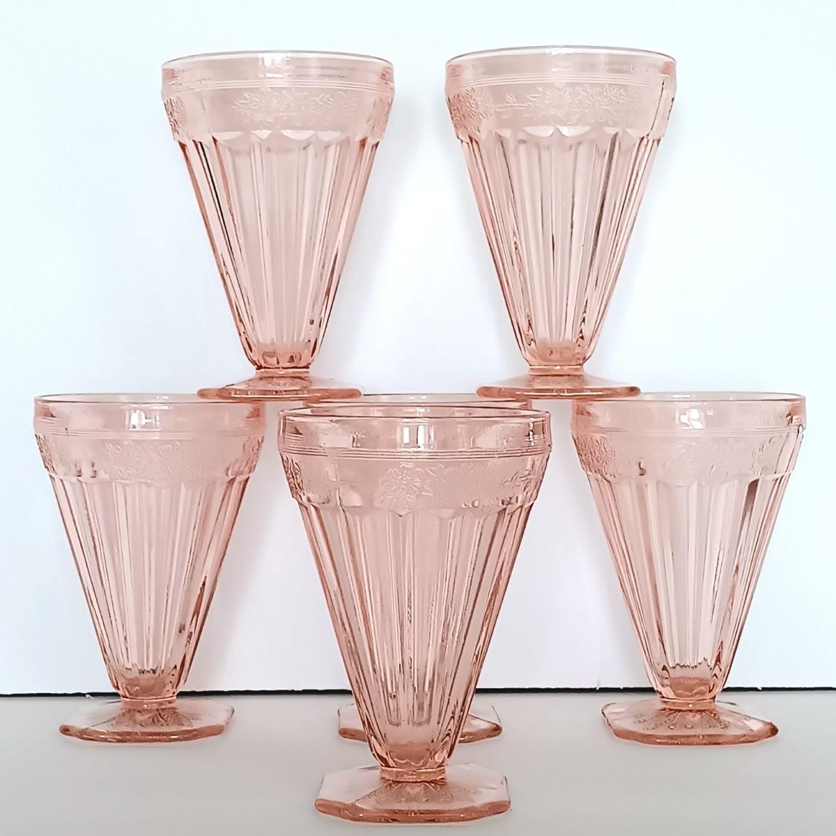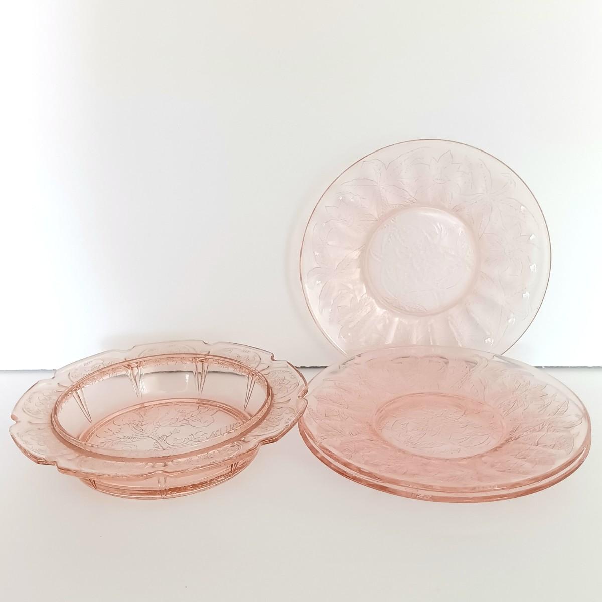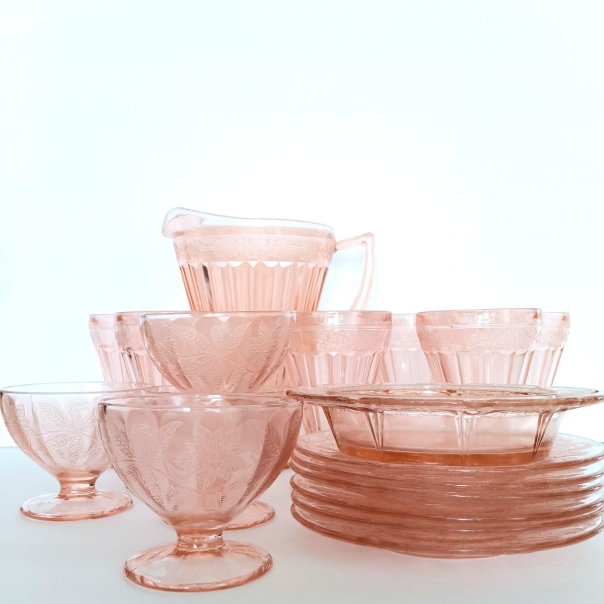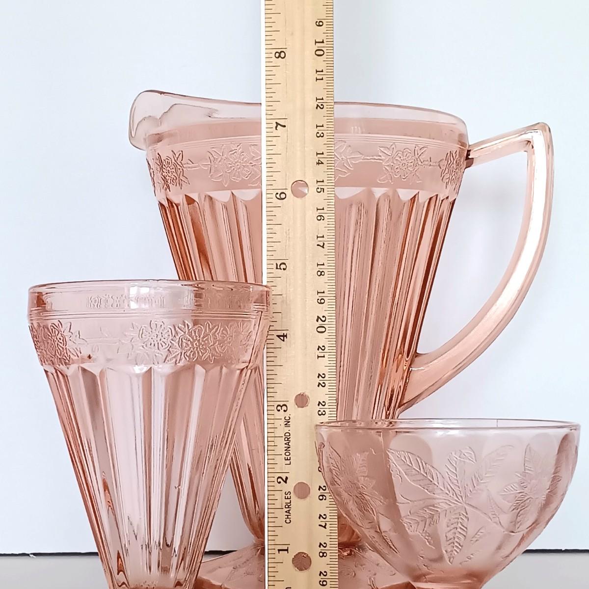 LOT 26: Pink Depression Glass Pitcher, Glasses & Plates