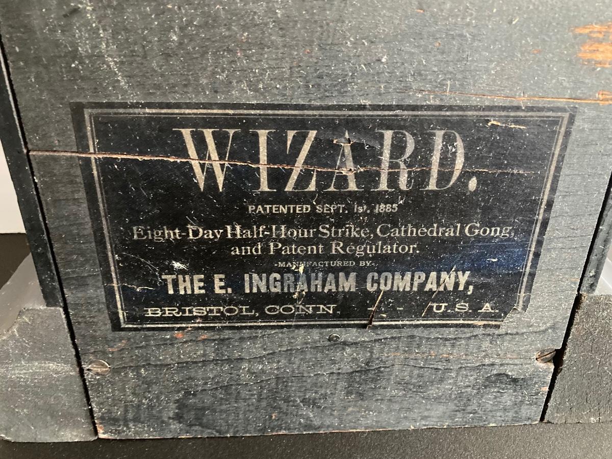 LOT 30: Antique / Vintage Mantle Clock - Wizard Eight Day Half-Hour Strike, Cathedral Gong, and Patent Regulator by The E. Ingraham Company