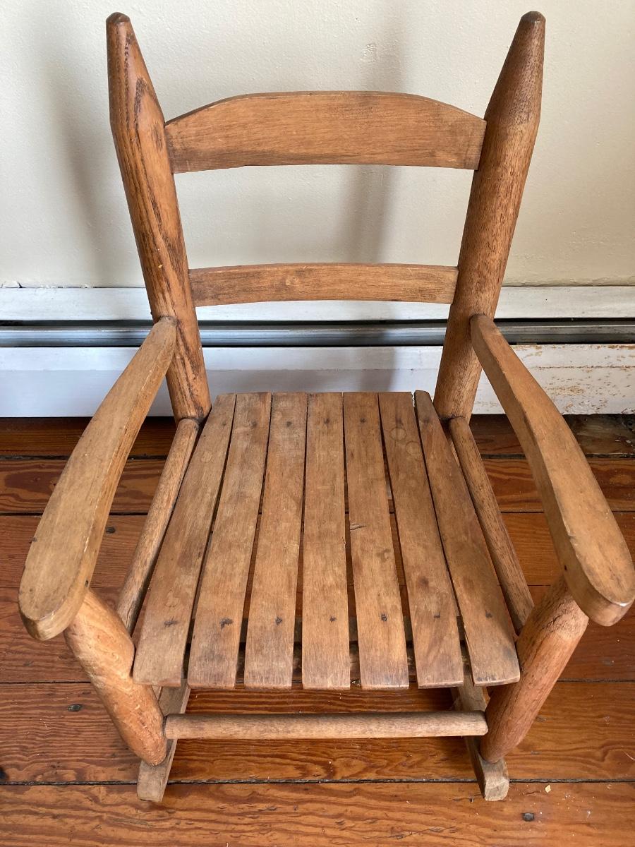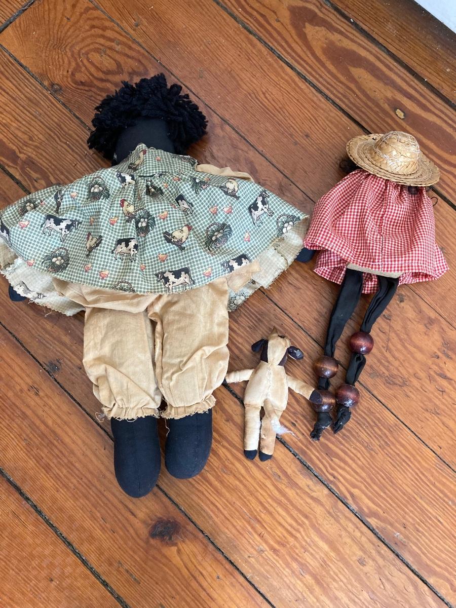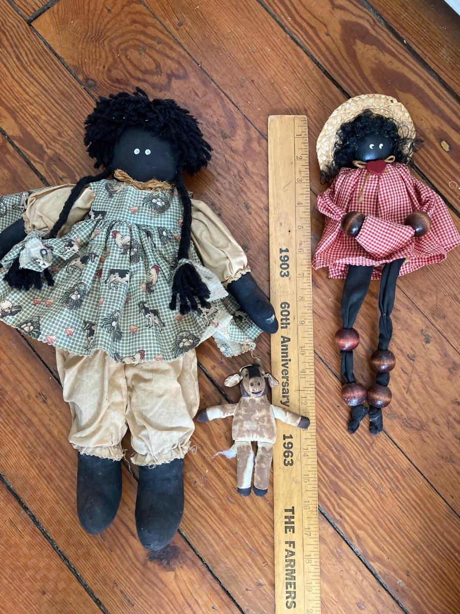 LOT 34: Vintage Children's Wooden Rocking Chair with Black Americana Folk Art Dolls