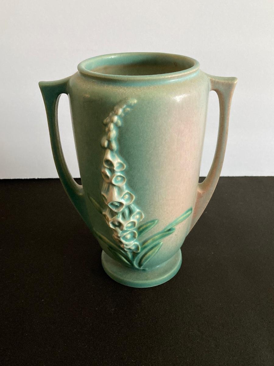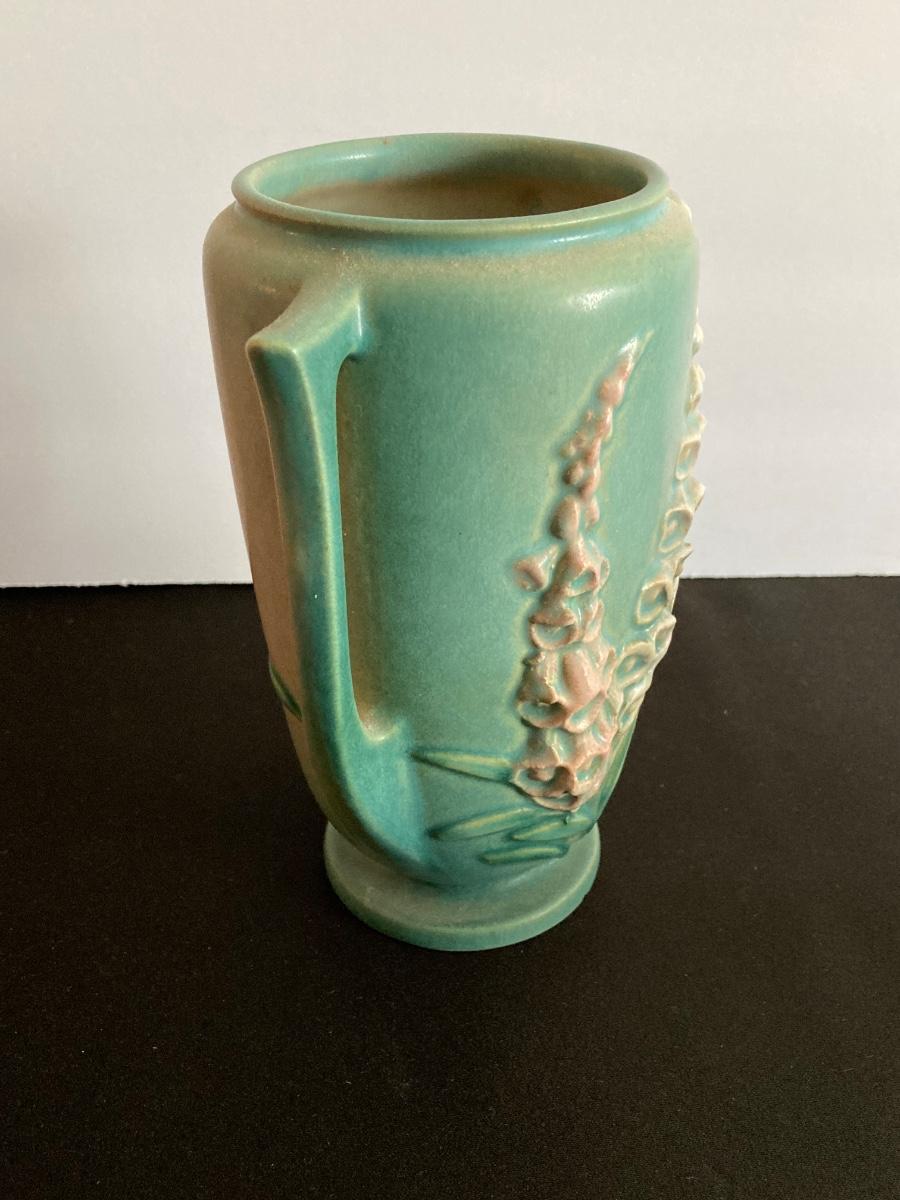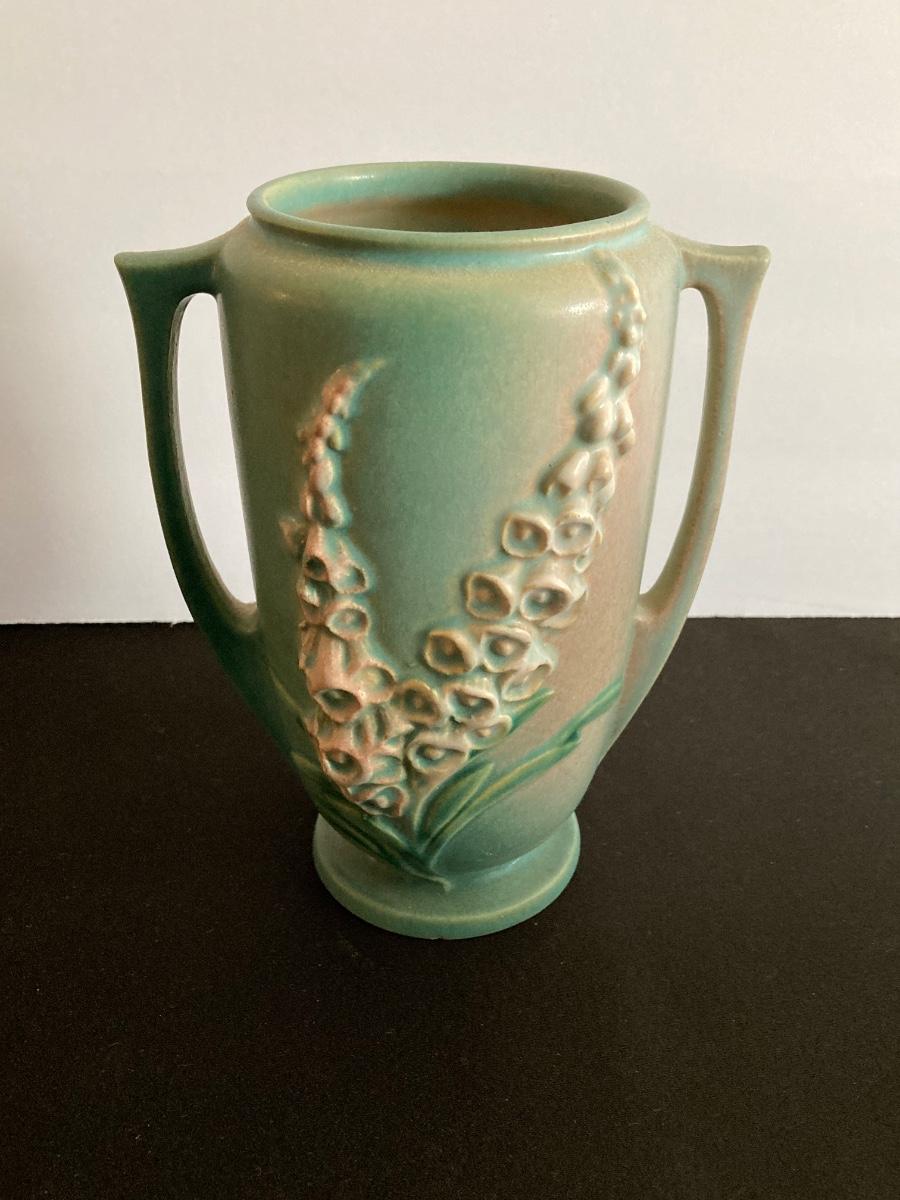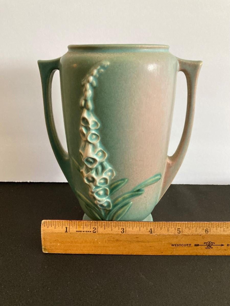 LOT 37: Vintage Roseville Pottery Foxglove Vase 45-7"