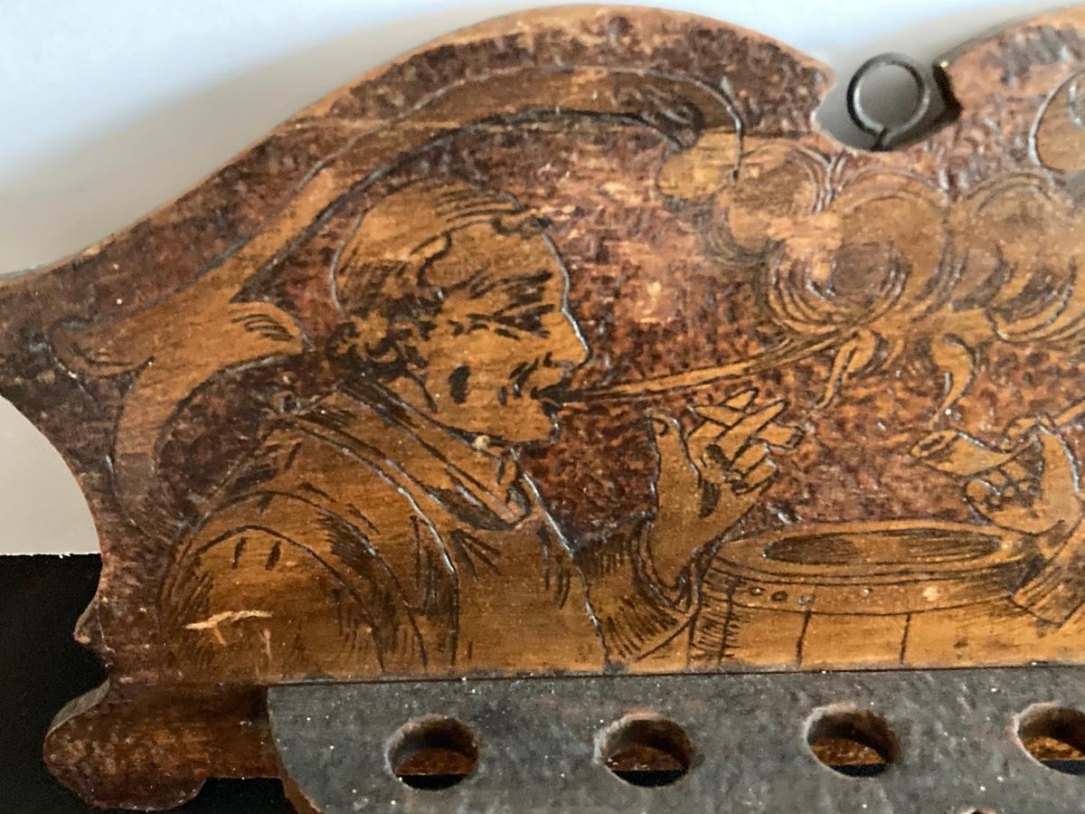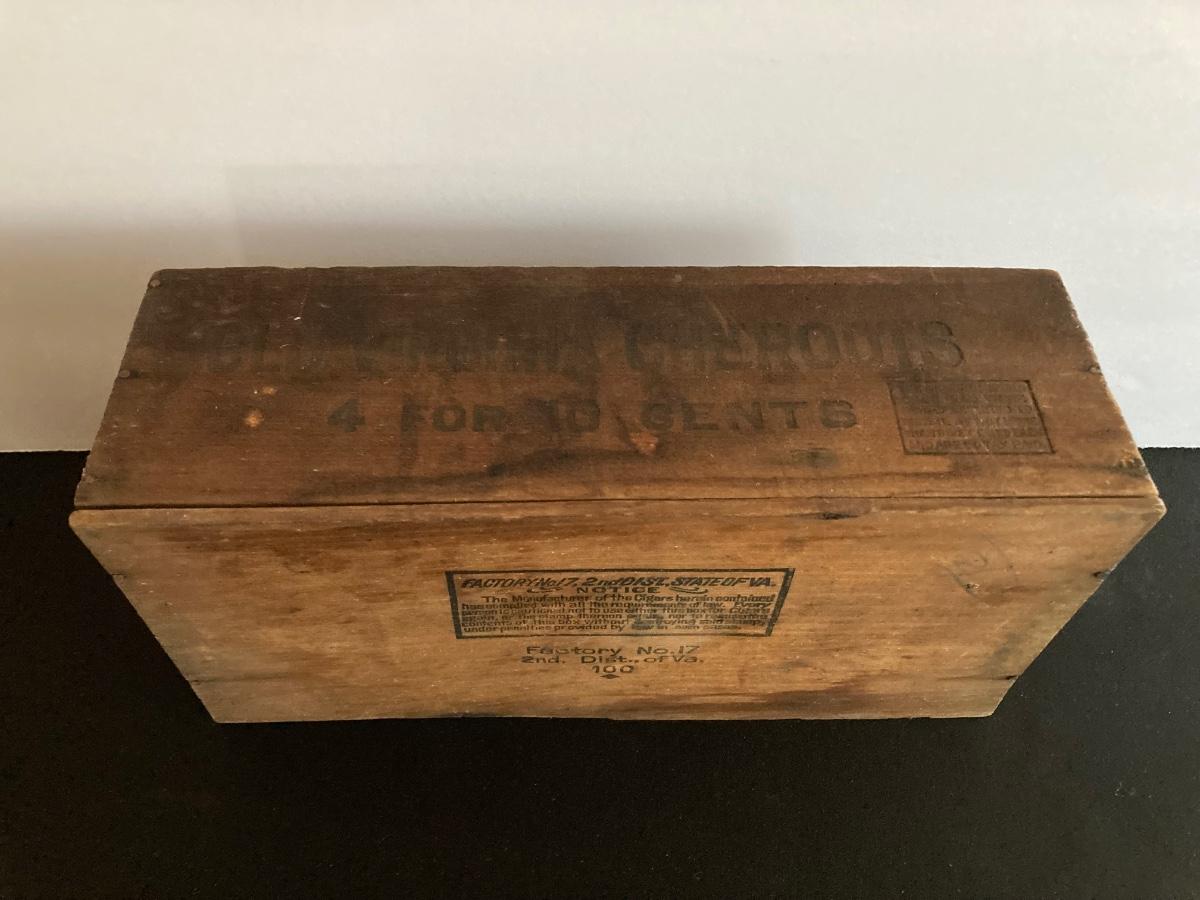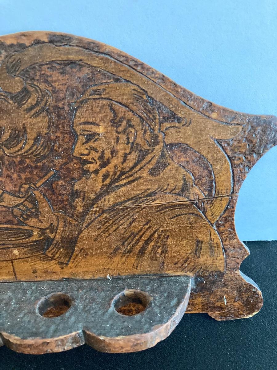 LOT 43: Antique / Vintage Flemish Art Co Pipe Holder, Old Virginia Cheroots Wooden Box, with Vintage Lighters and Matches