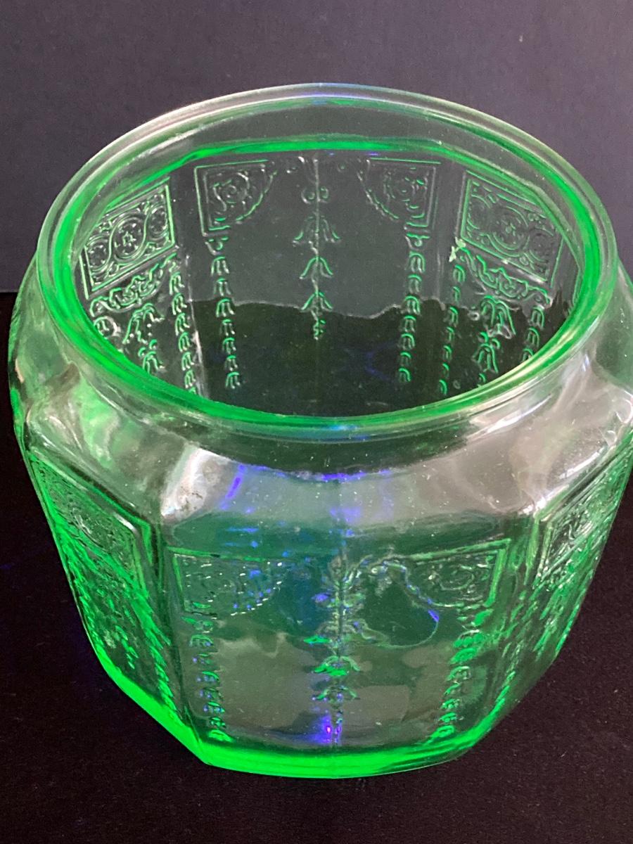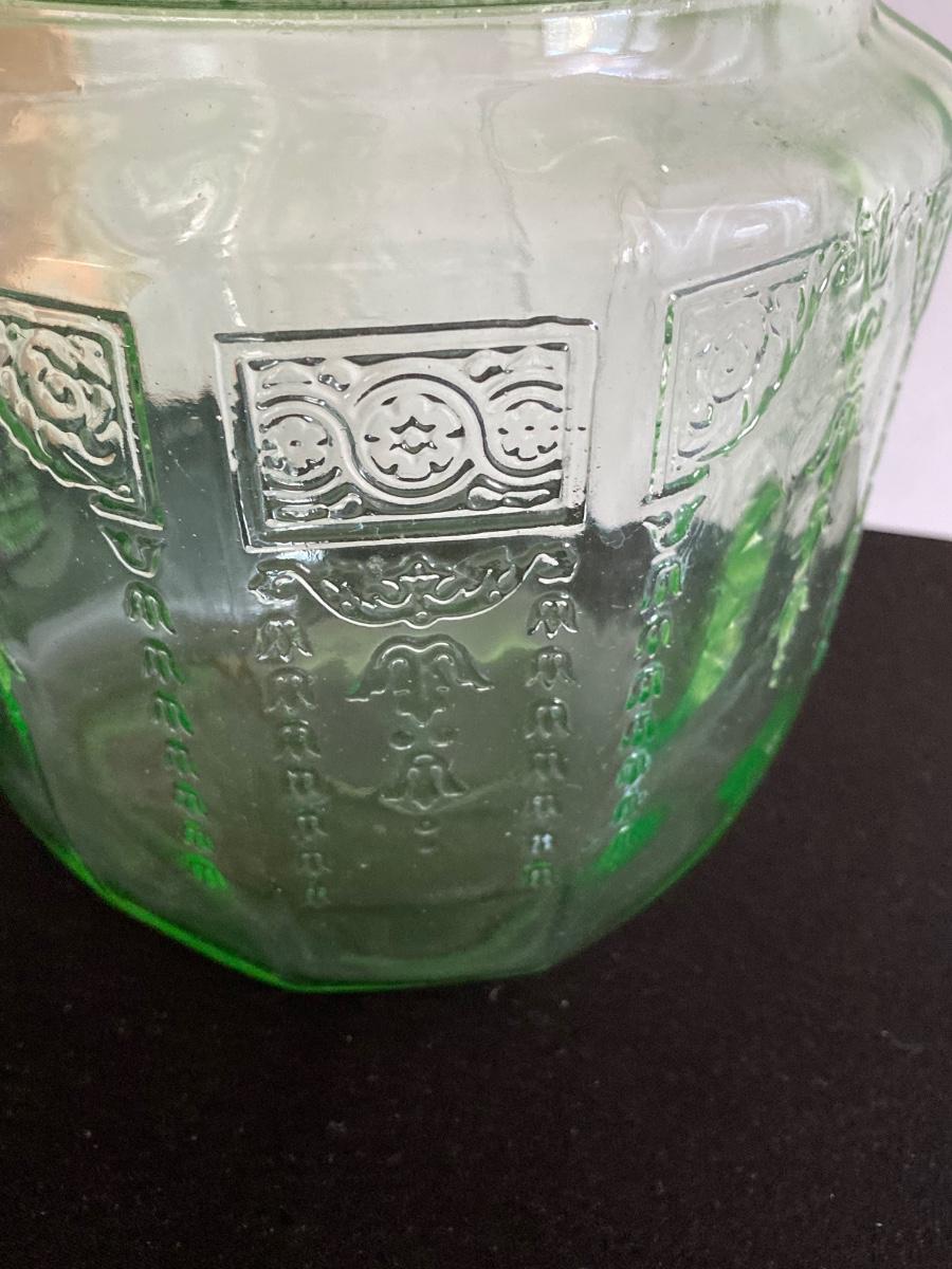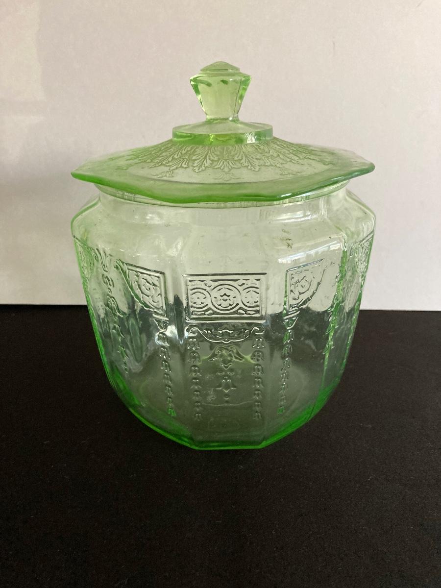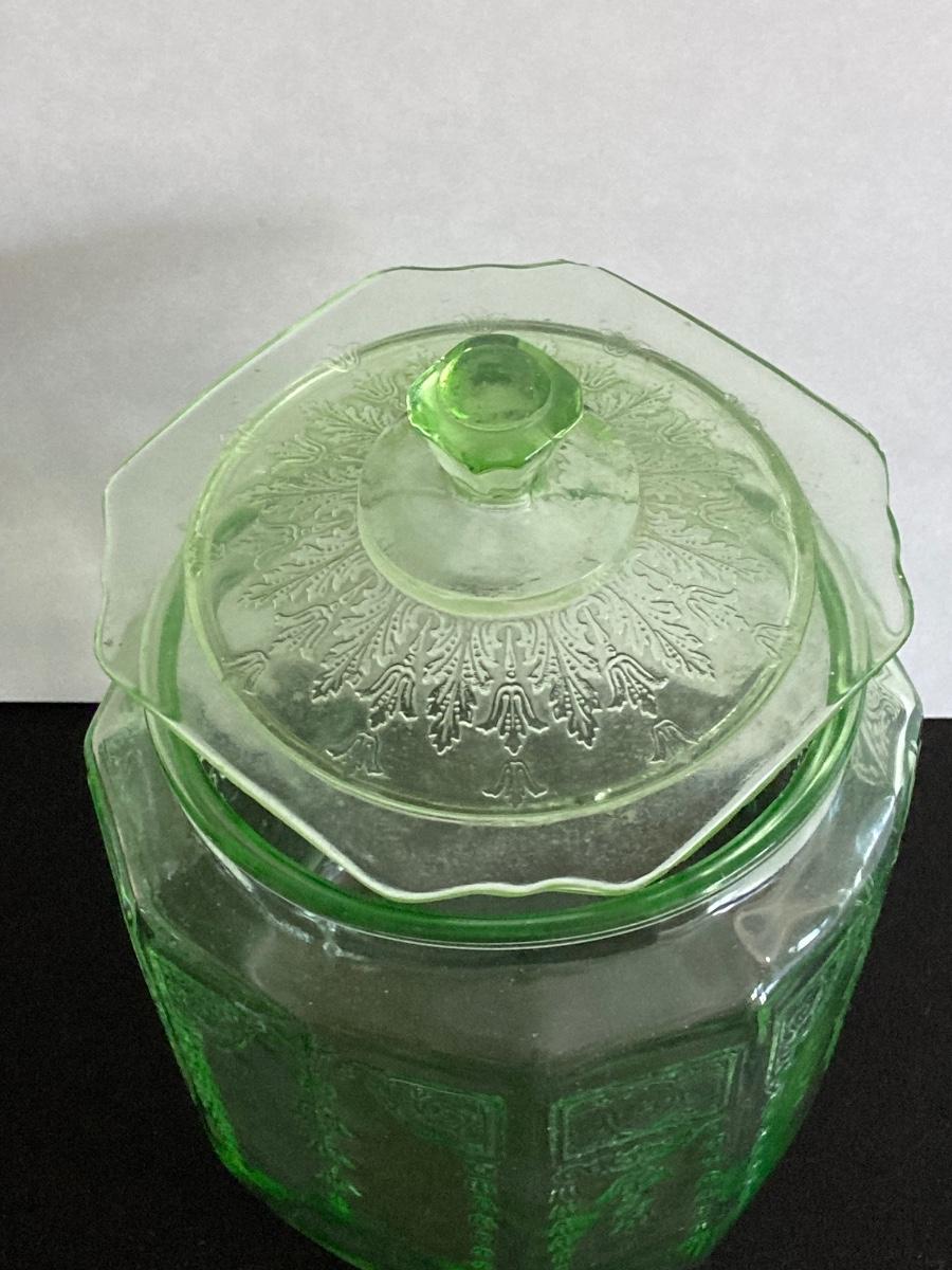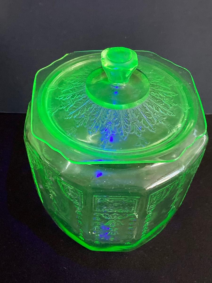 LOT 49: Green Depression Uranium Glass Jar with Lid