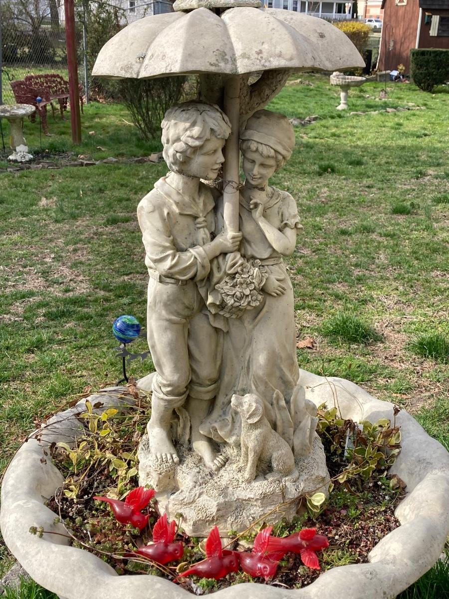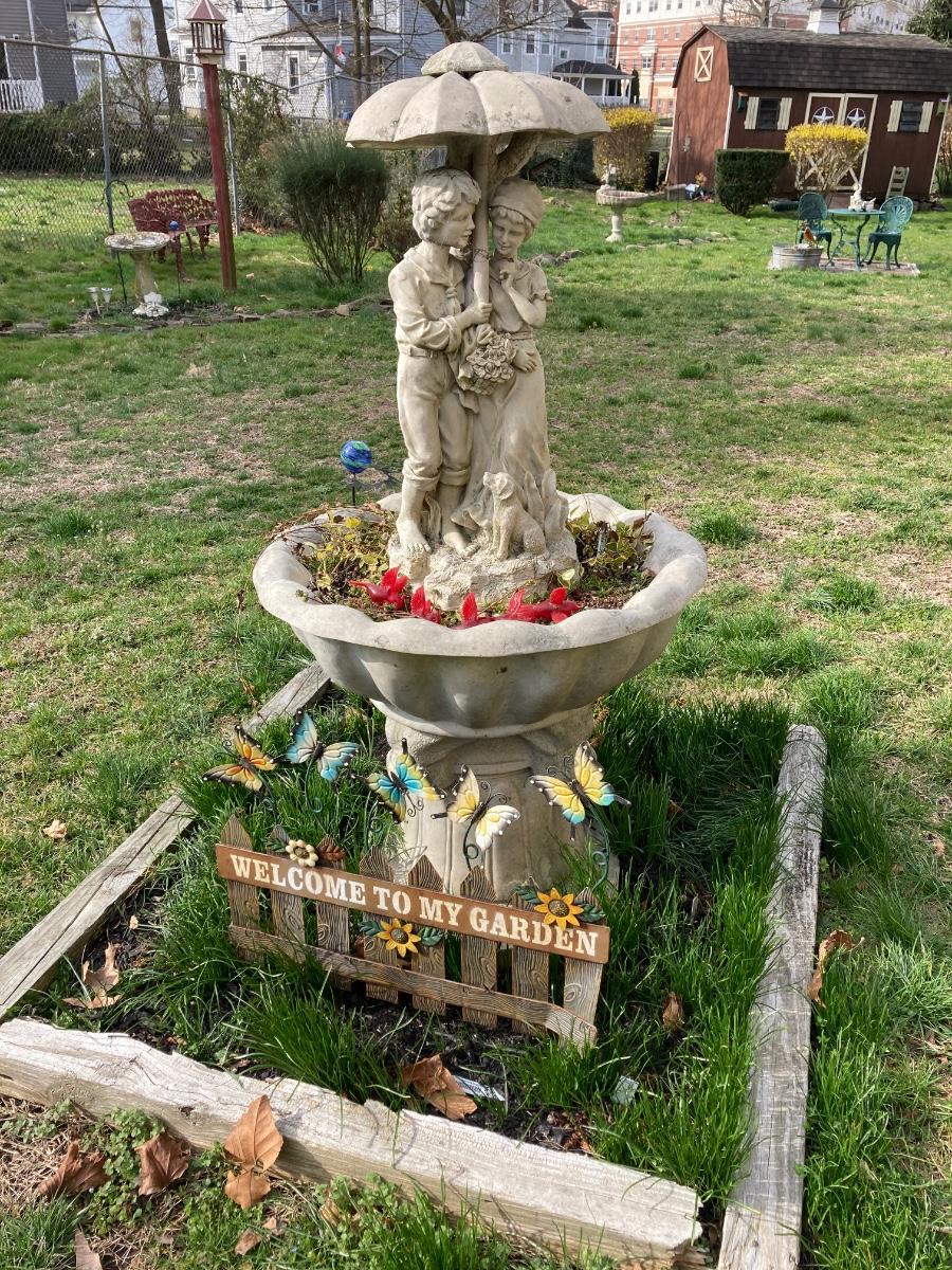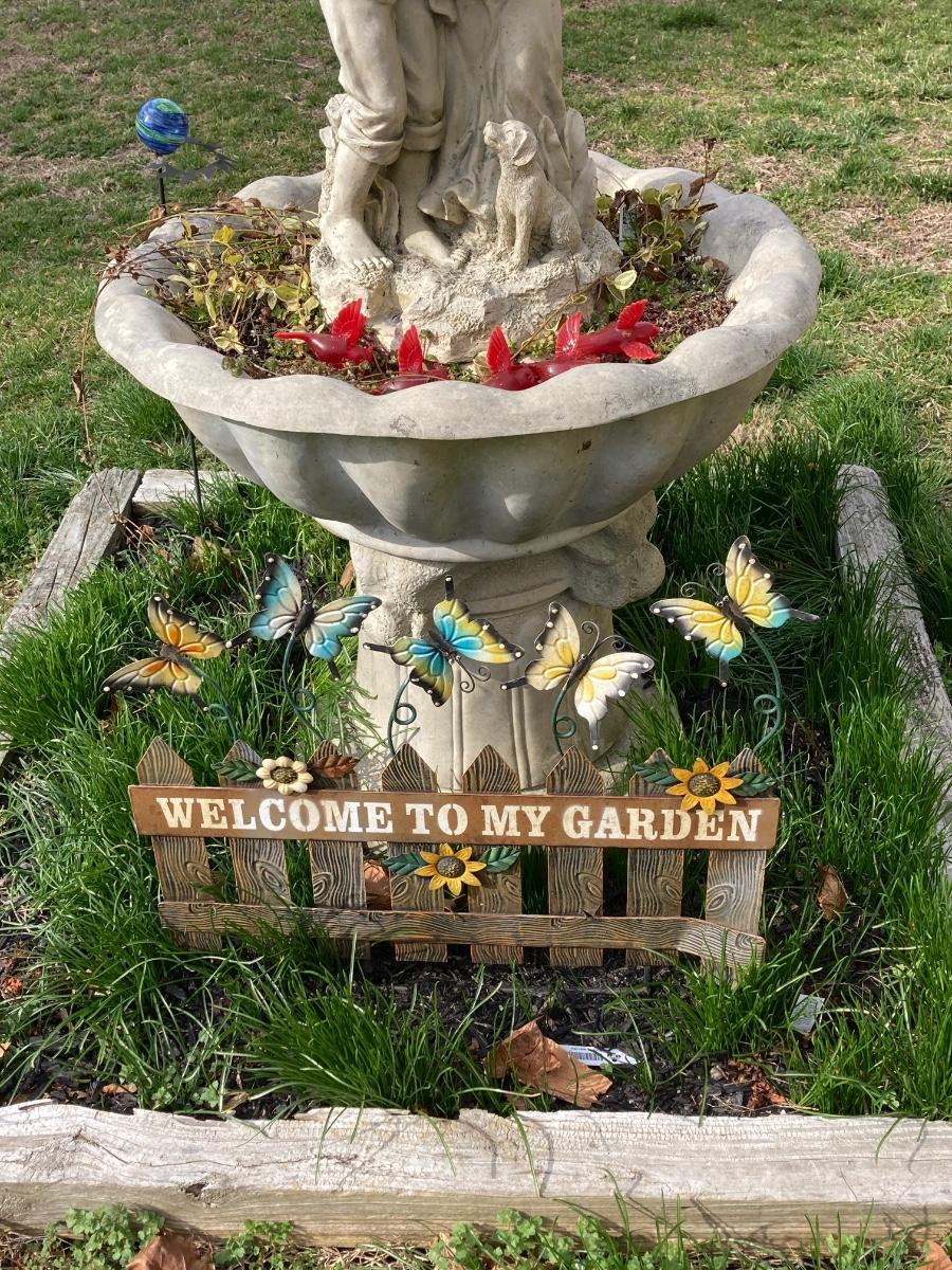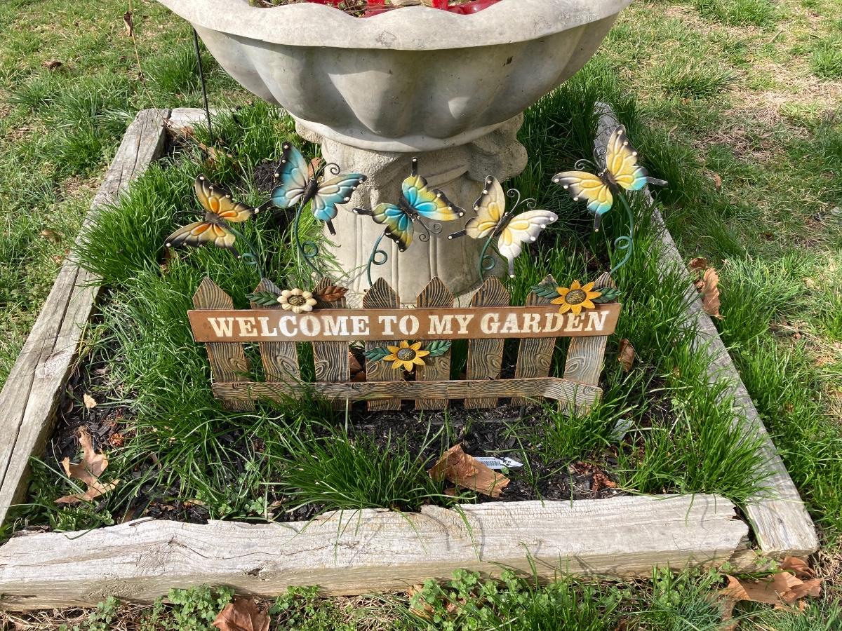 LOT 54: Large Plastic Single Tier Boy and Girl Lawn Ornament, Welcome to my Garden Stake and More