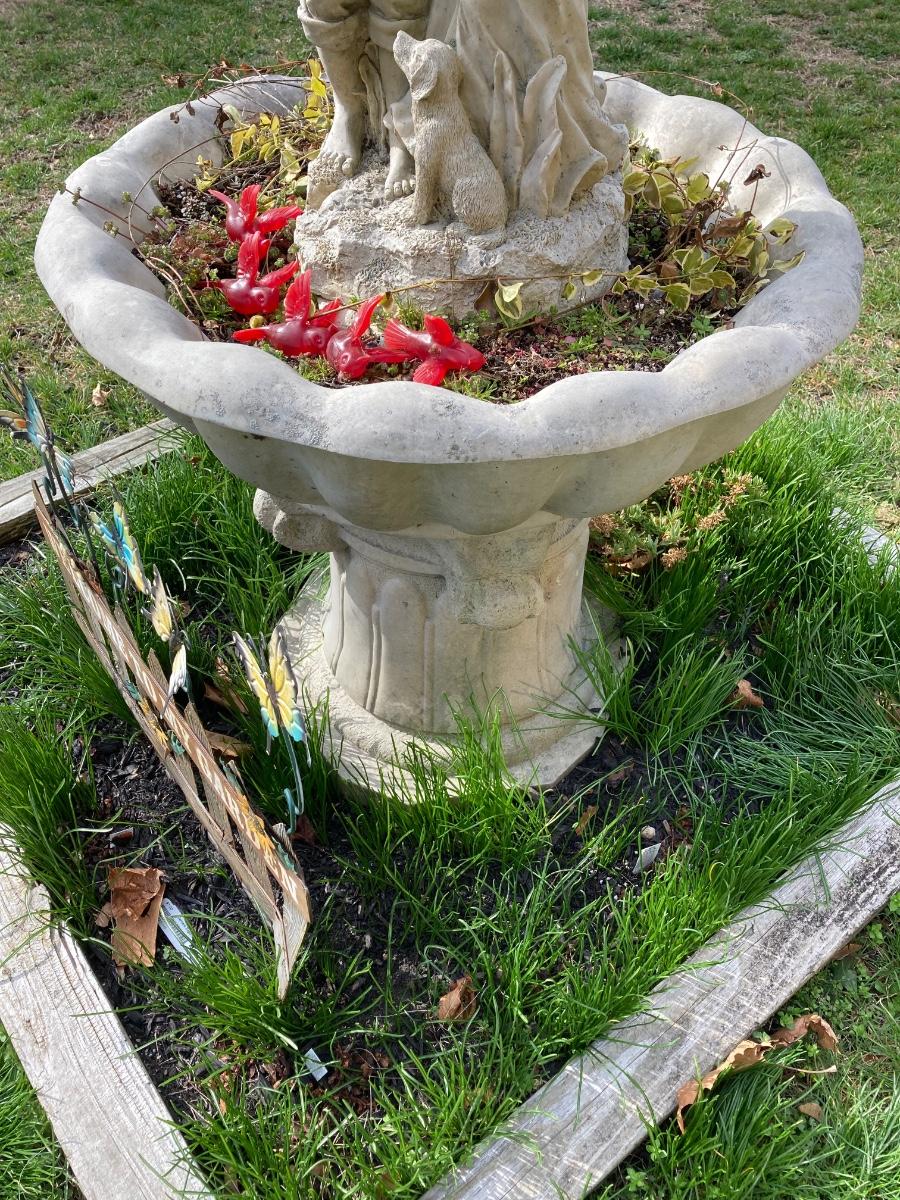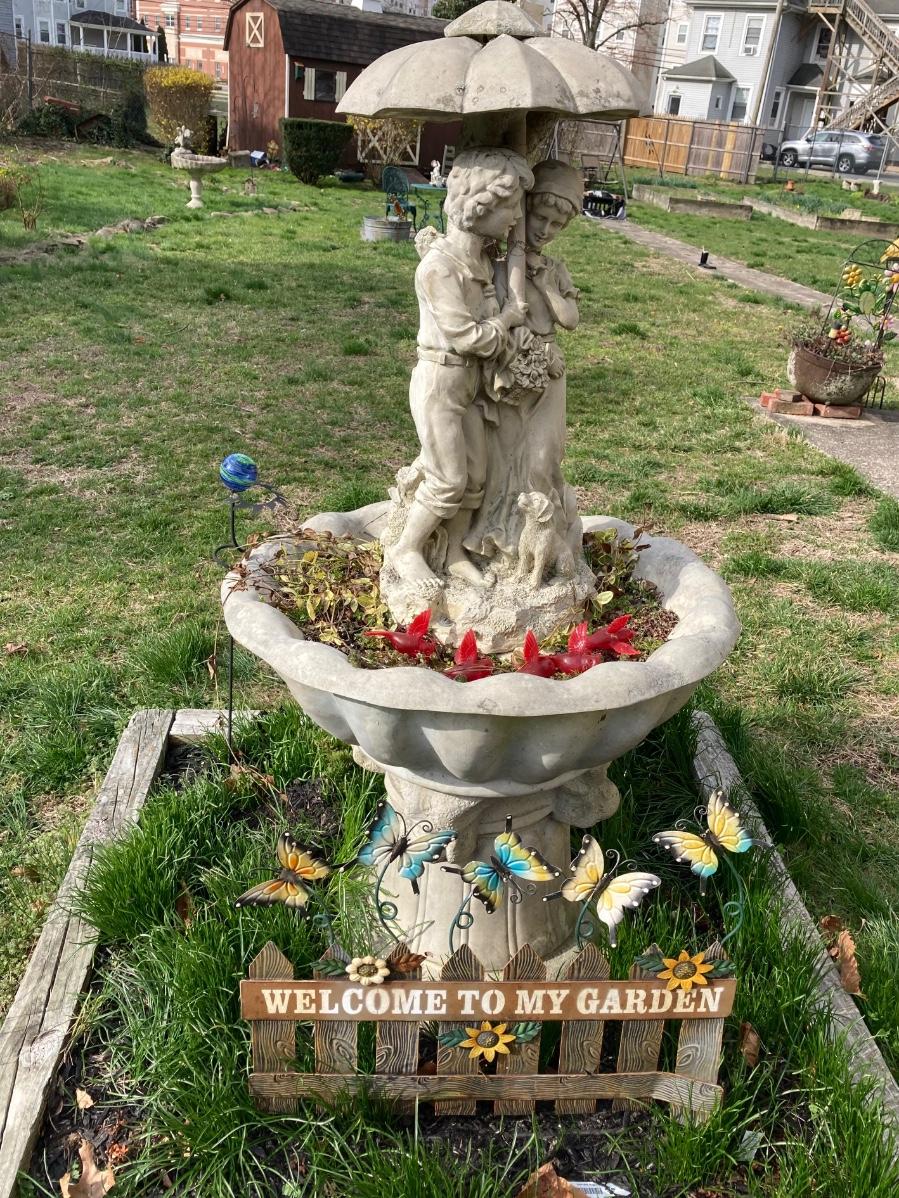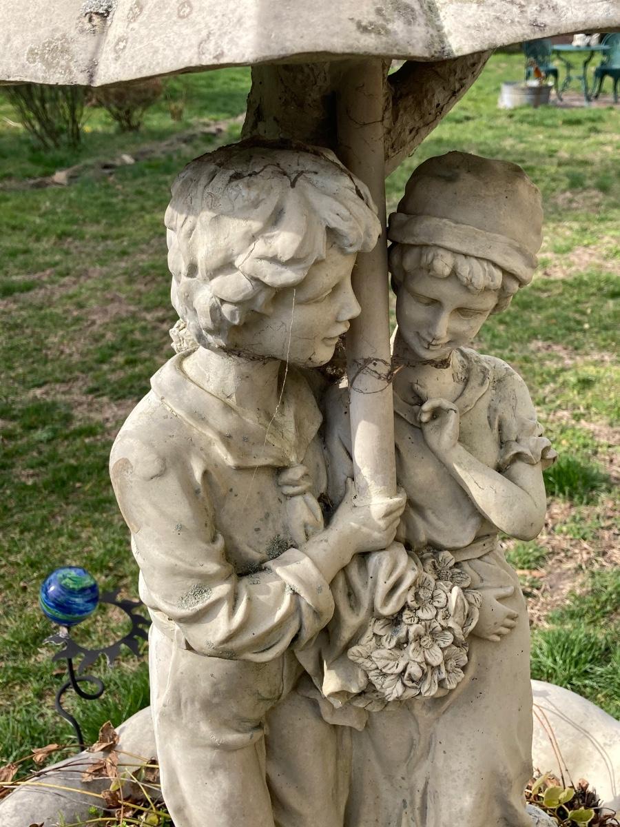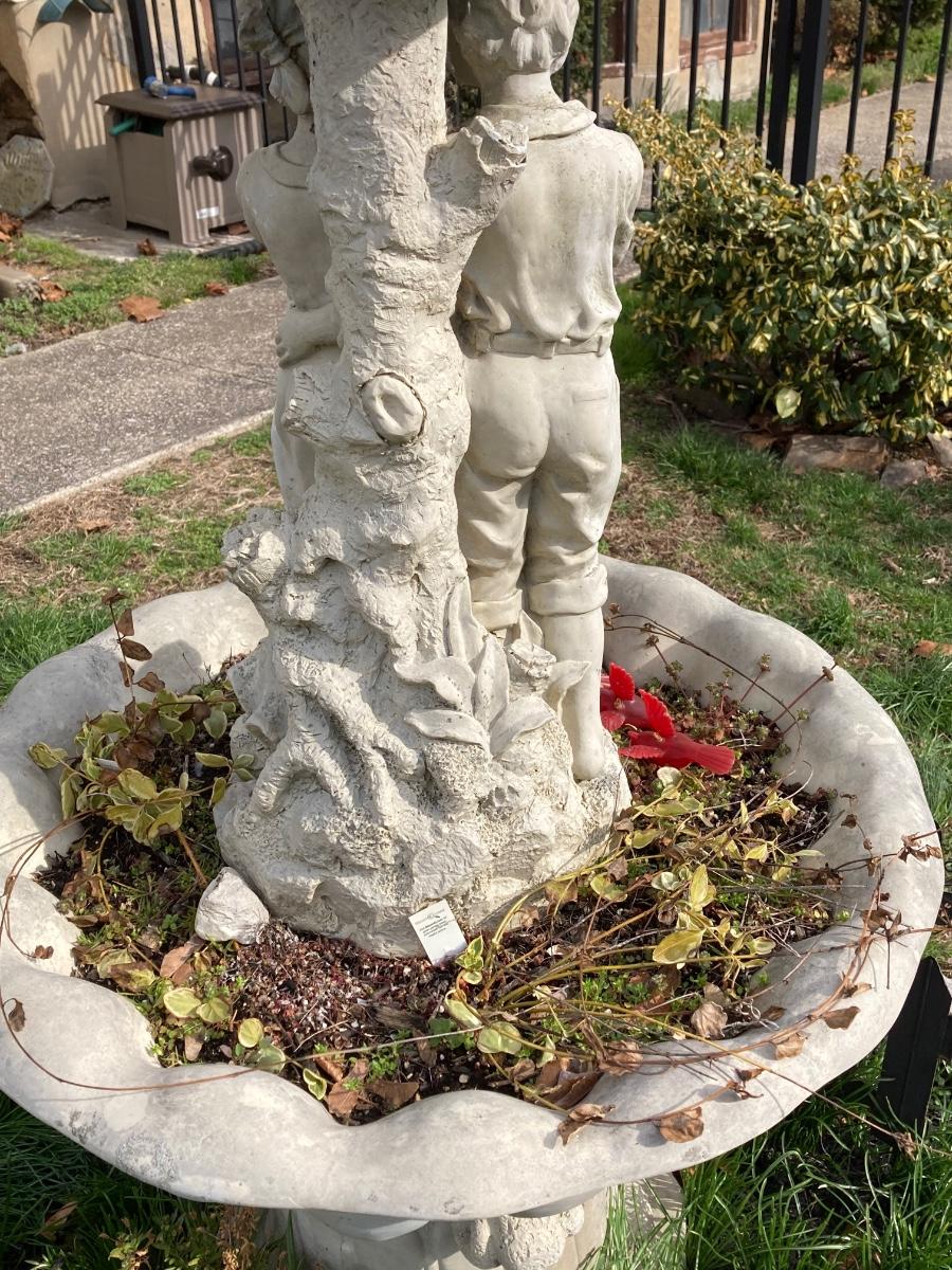 LOT 54: Large Plastic Single Tier Boy and Girl Lawn Ornament, Welcome to my Garden Stake and More