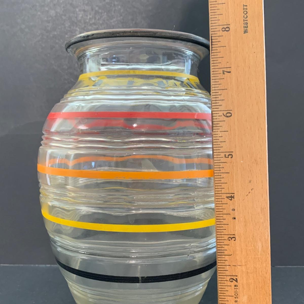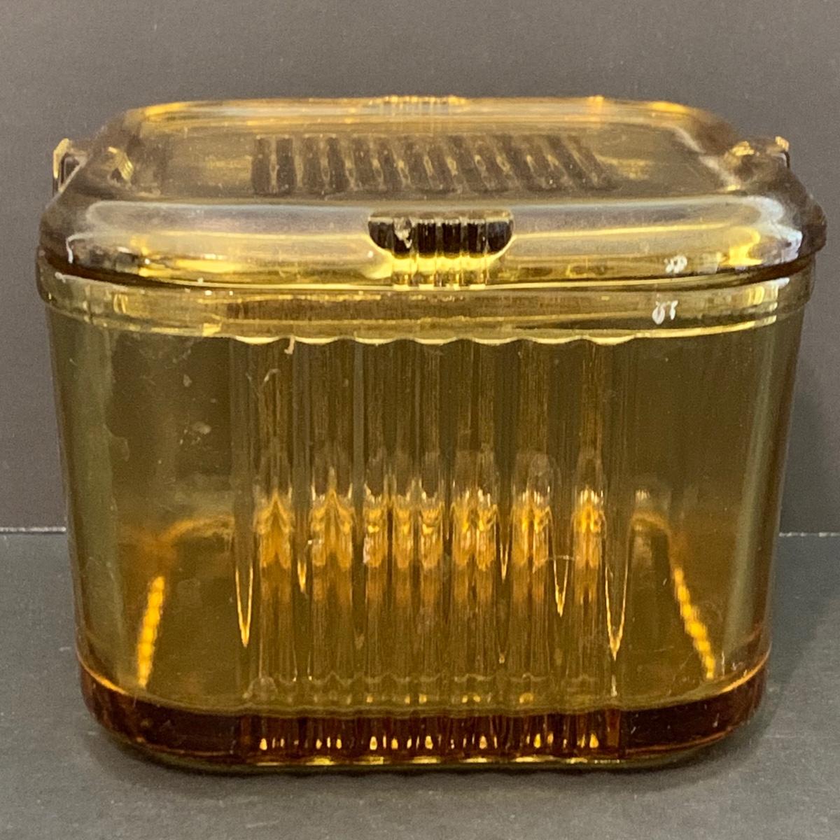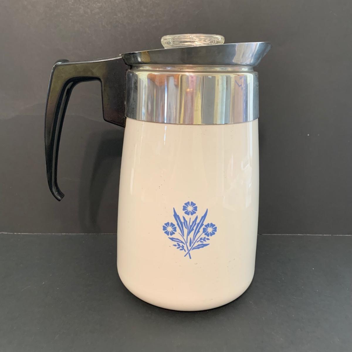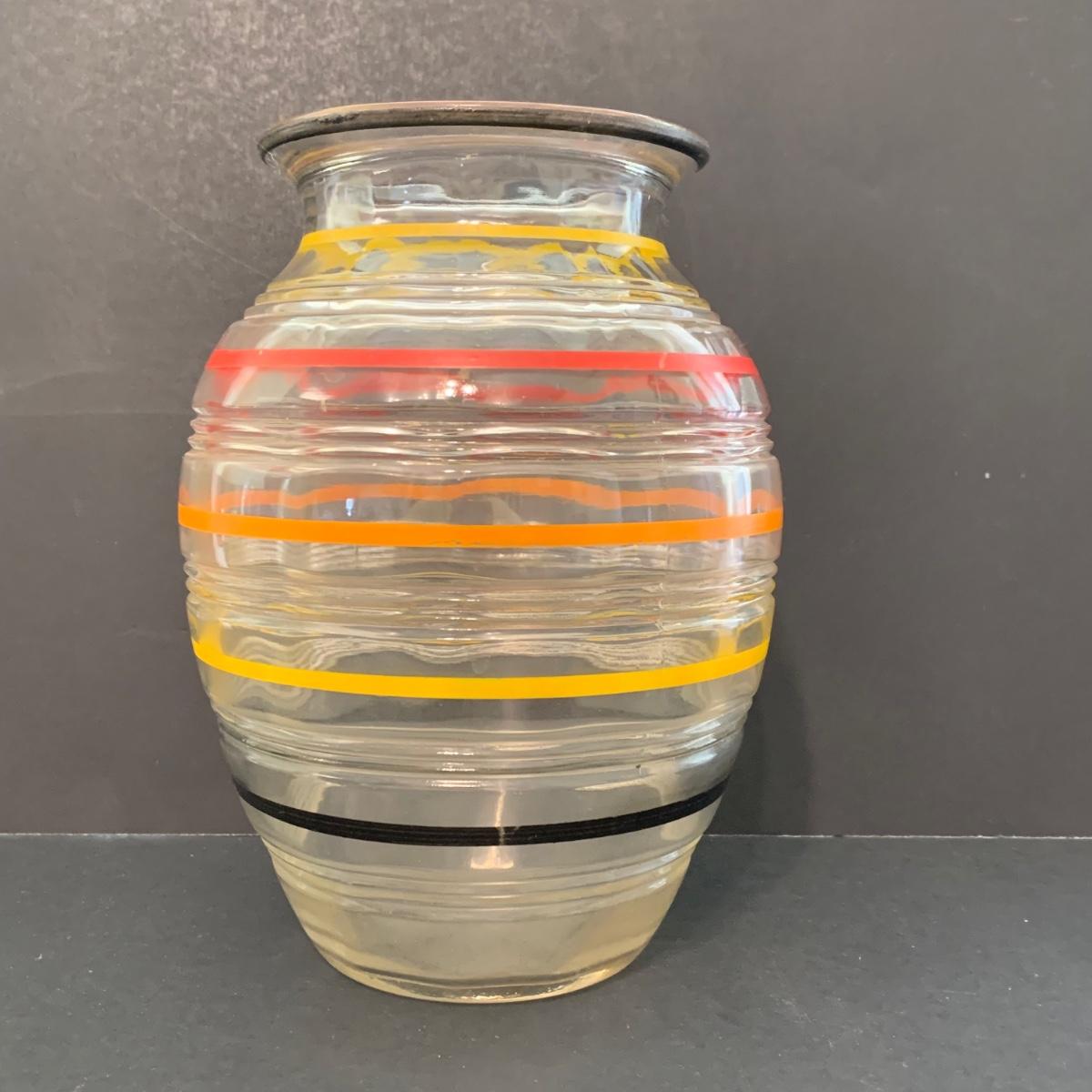 LOT 79: Kromex Holiday Giftware Set, Corning Ware Coffee Percolator Coffee Pot, Hocking Glass Ring Vase, Vintage Federal Glass Amber Square Refrigerator Dish with Lid Ribbed 4" & More