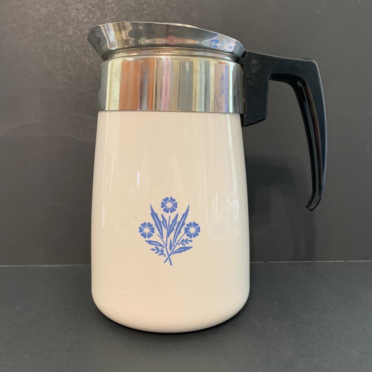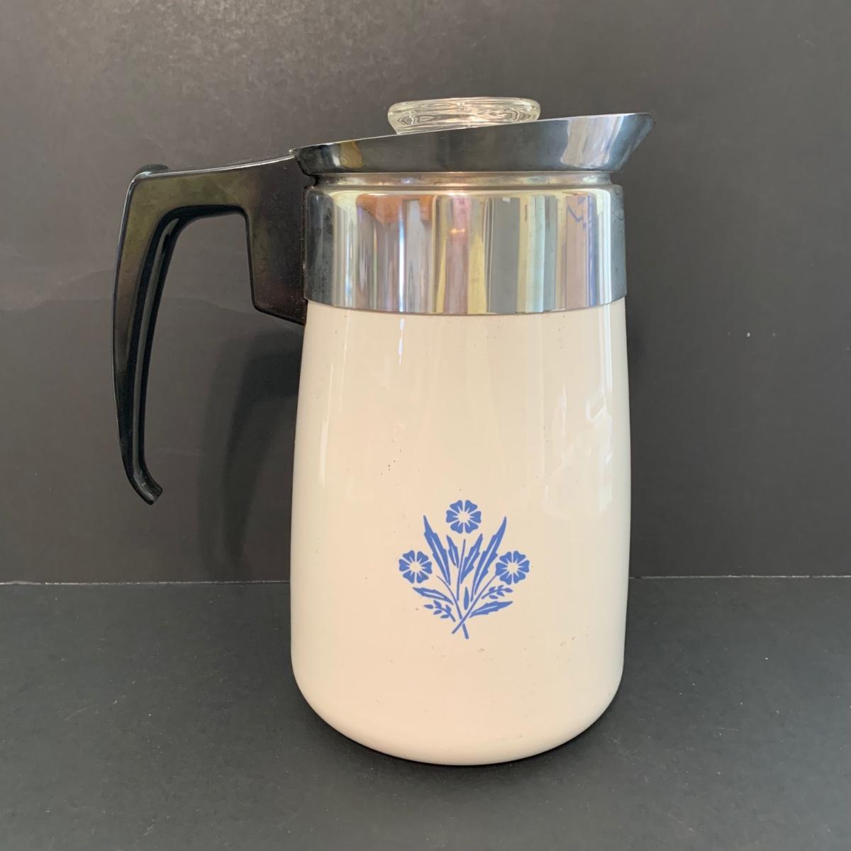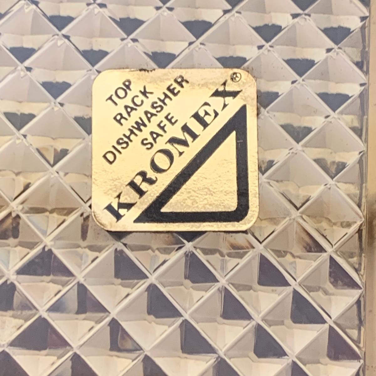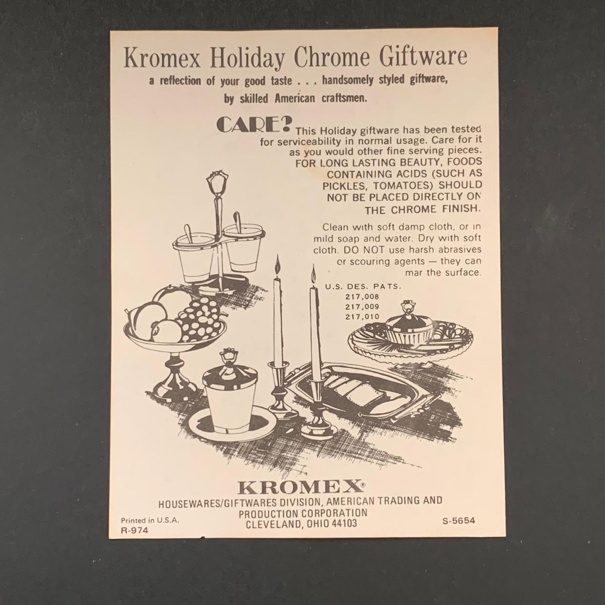 LOT 79: Kromex Holiday Giftware Set, Corning Ware Coffee Percolator Coffee Pot, Hocking Glass Ring Vase, Vintage Federal Glass Amber Square Refrigerator Dish with Lid Ribbed 4" & More