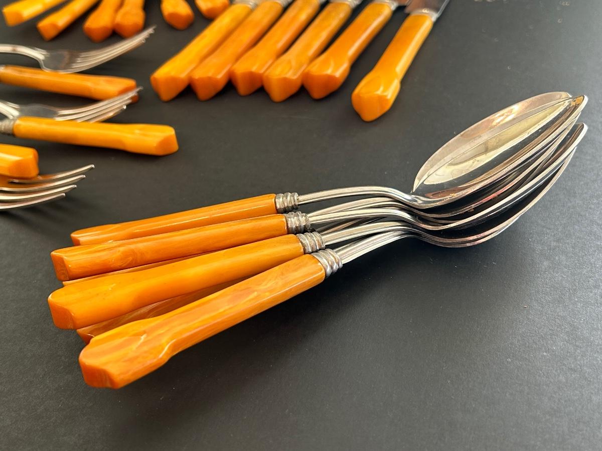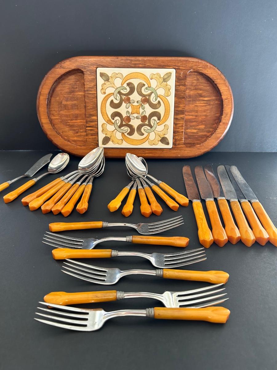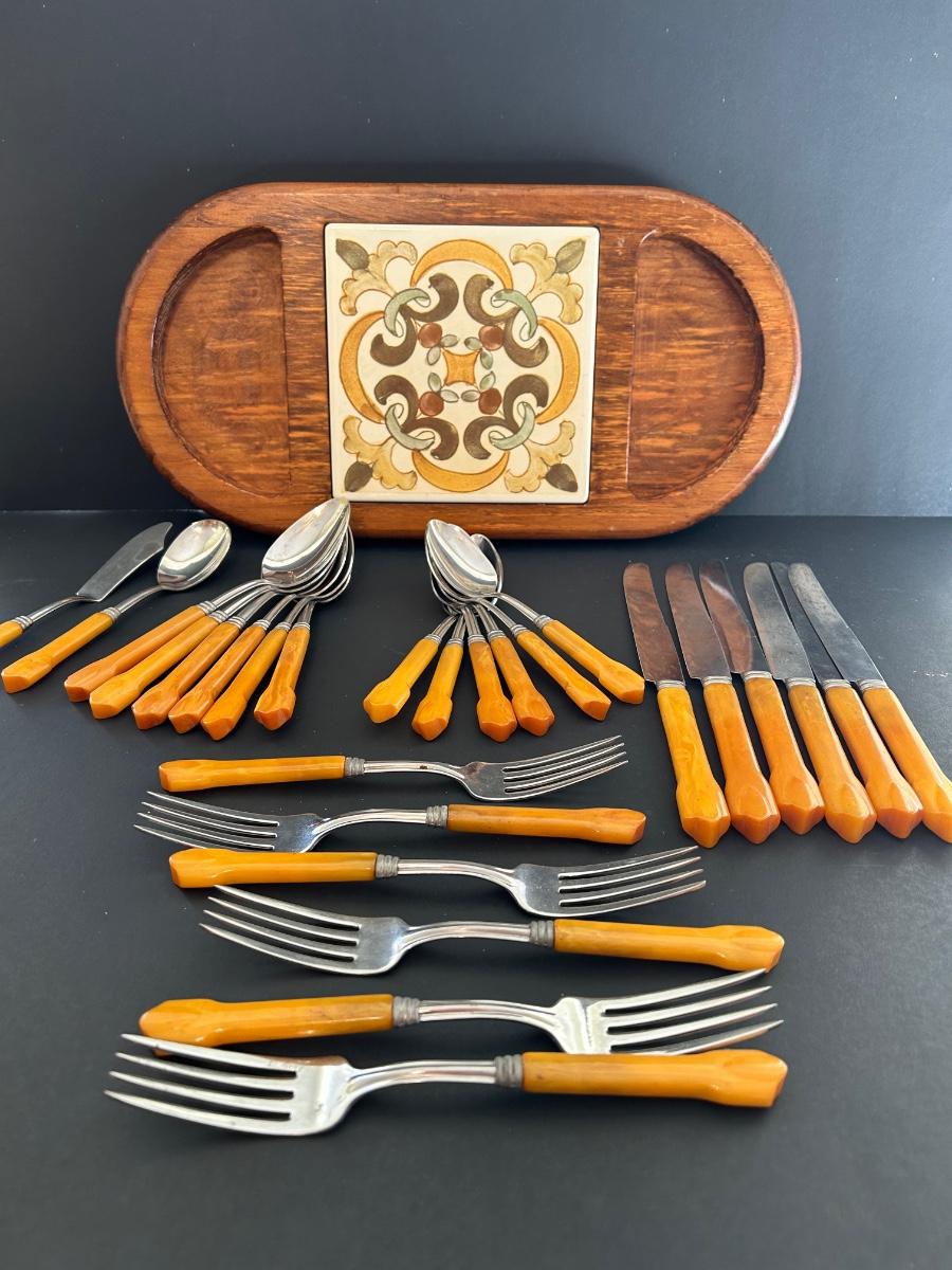 LOT 85: Vintage Kitchen Supplies - Egg Plate, Flatware, Glasses and Serving Plate
