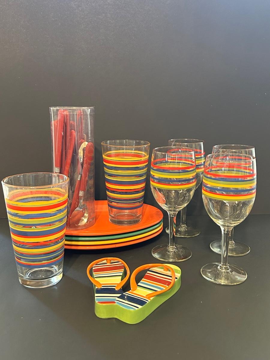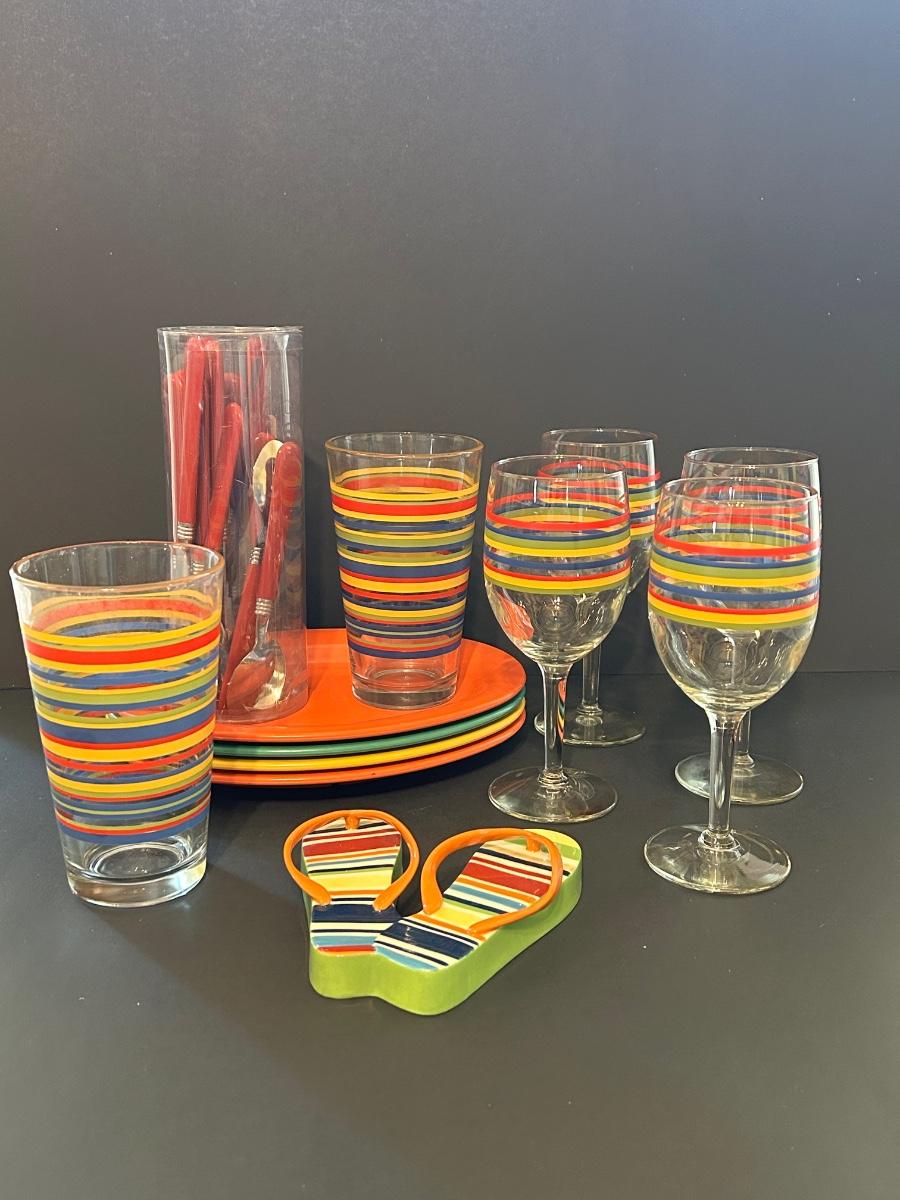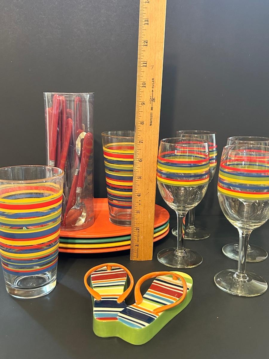 LOT 89: Longaberger Flip Flop Spoon Rest, Glasses, Plastic Plates and Flatware