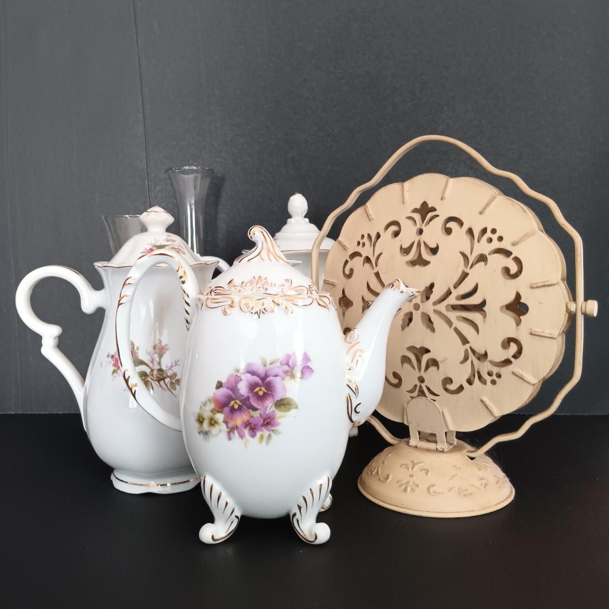 LOT 116: Wawel Porcelain Teapot w/ Collapsible Metal Cakestand & More