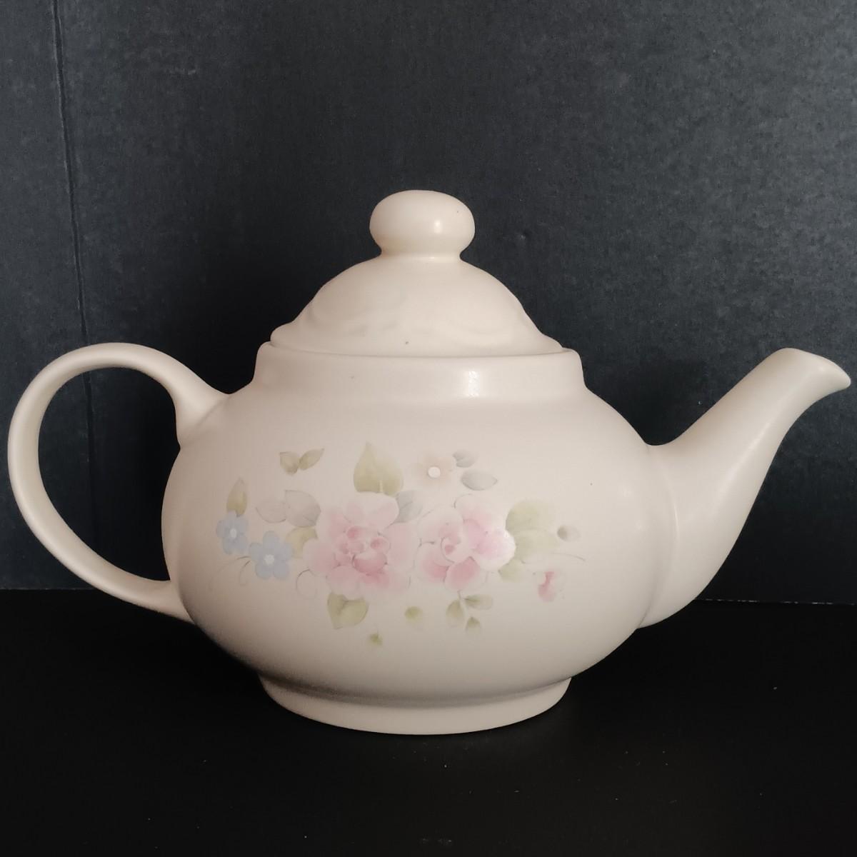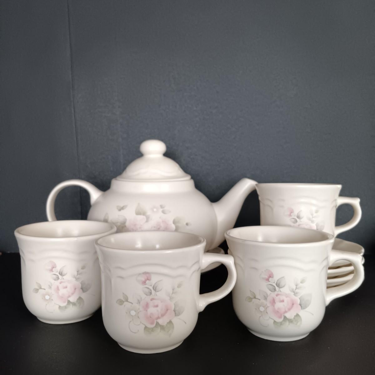 LOT 117: Pfaltzgraff Tea Rose Teapot w/ Cups & Plates