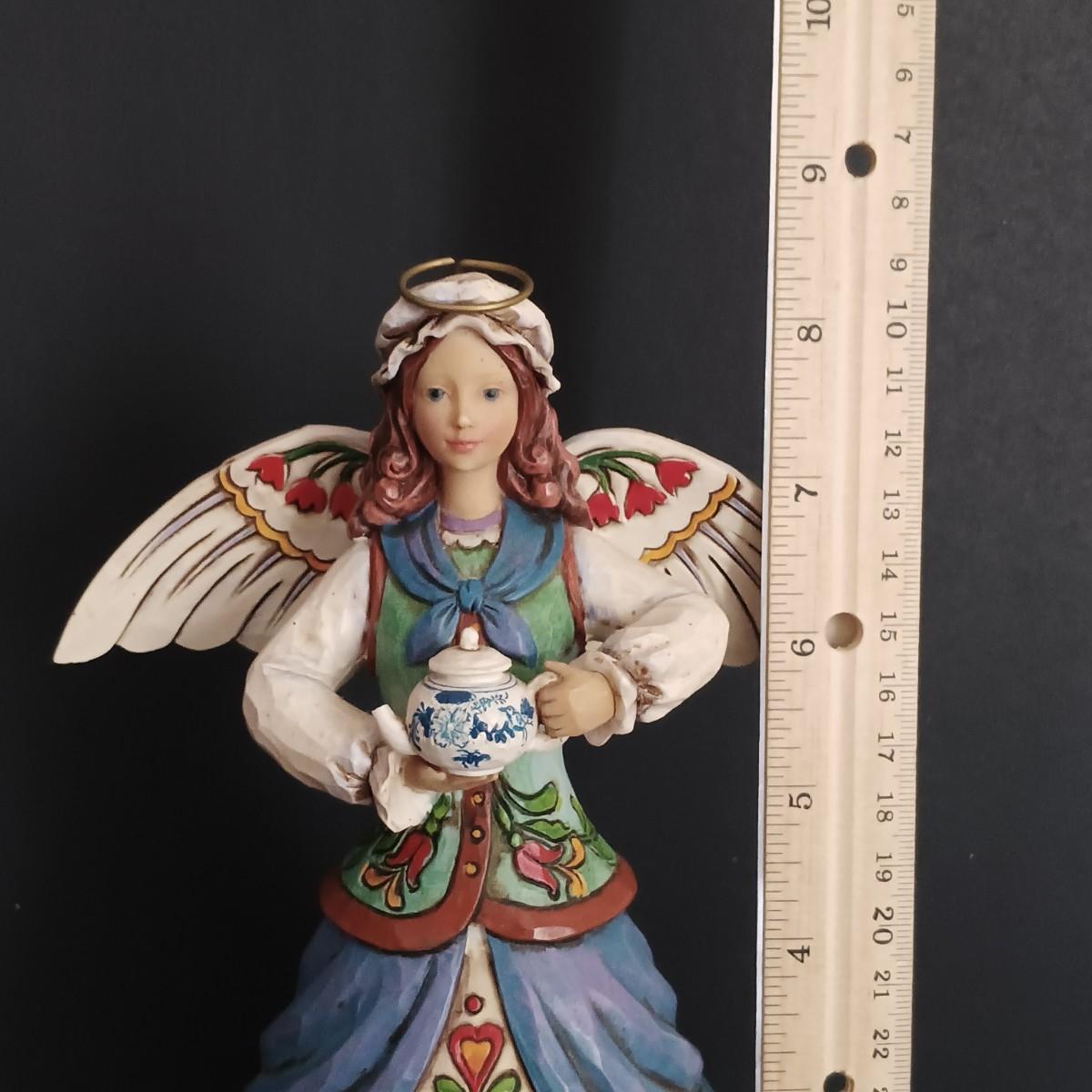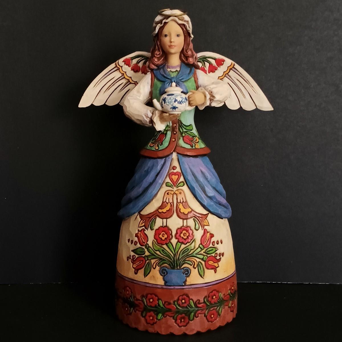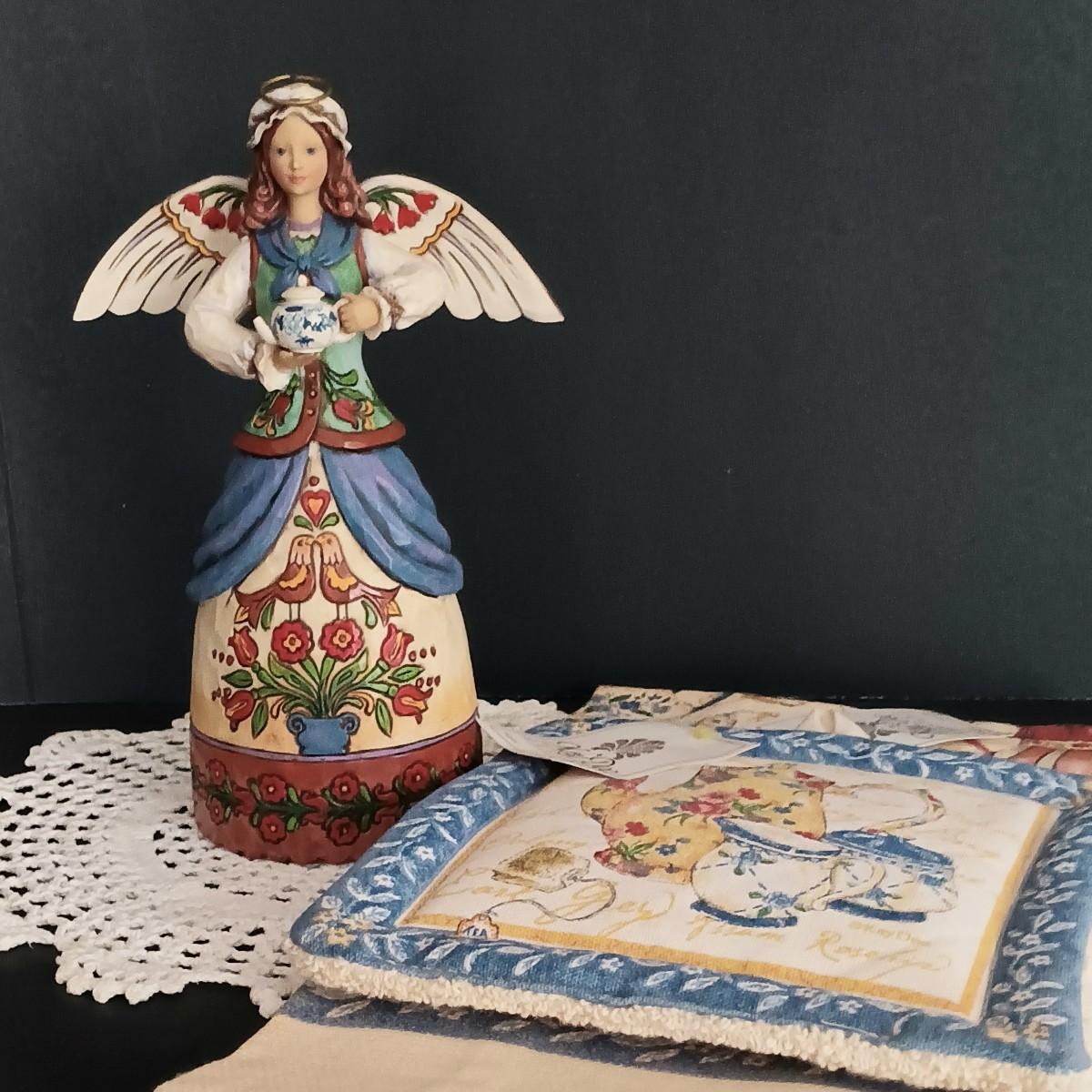 LOT 118: Jim Shore "Gather At The Hearth Of History" Angel w/ Kay Dee Designs Tea Towel Set
