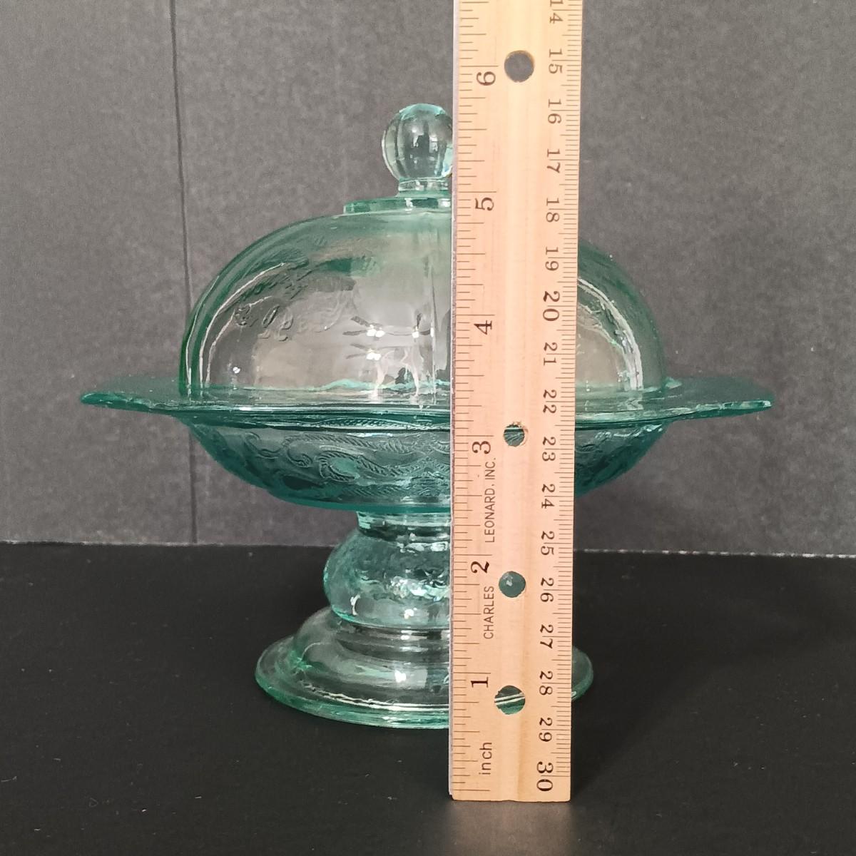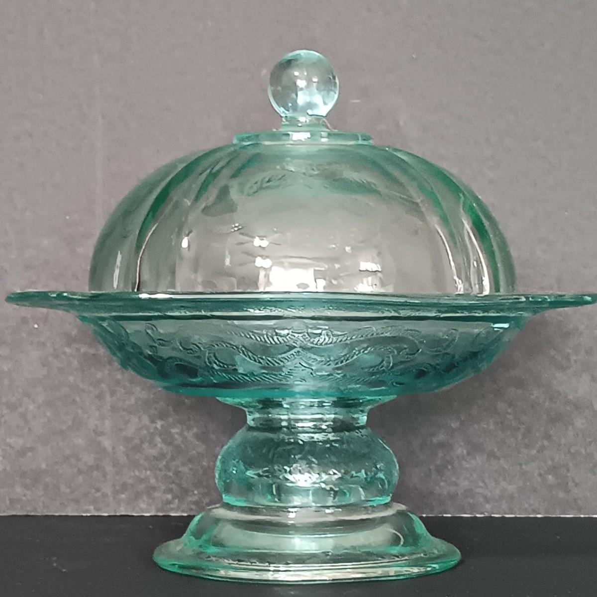The lid of the pedestal dish has some small chips.
