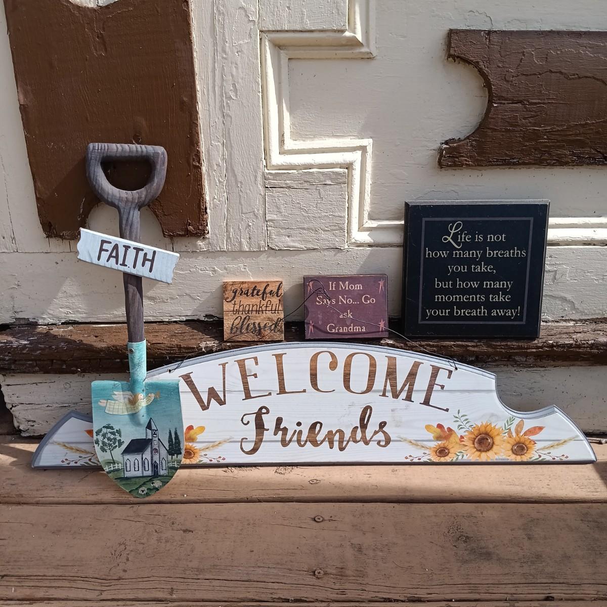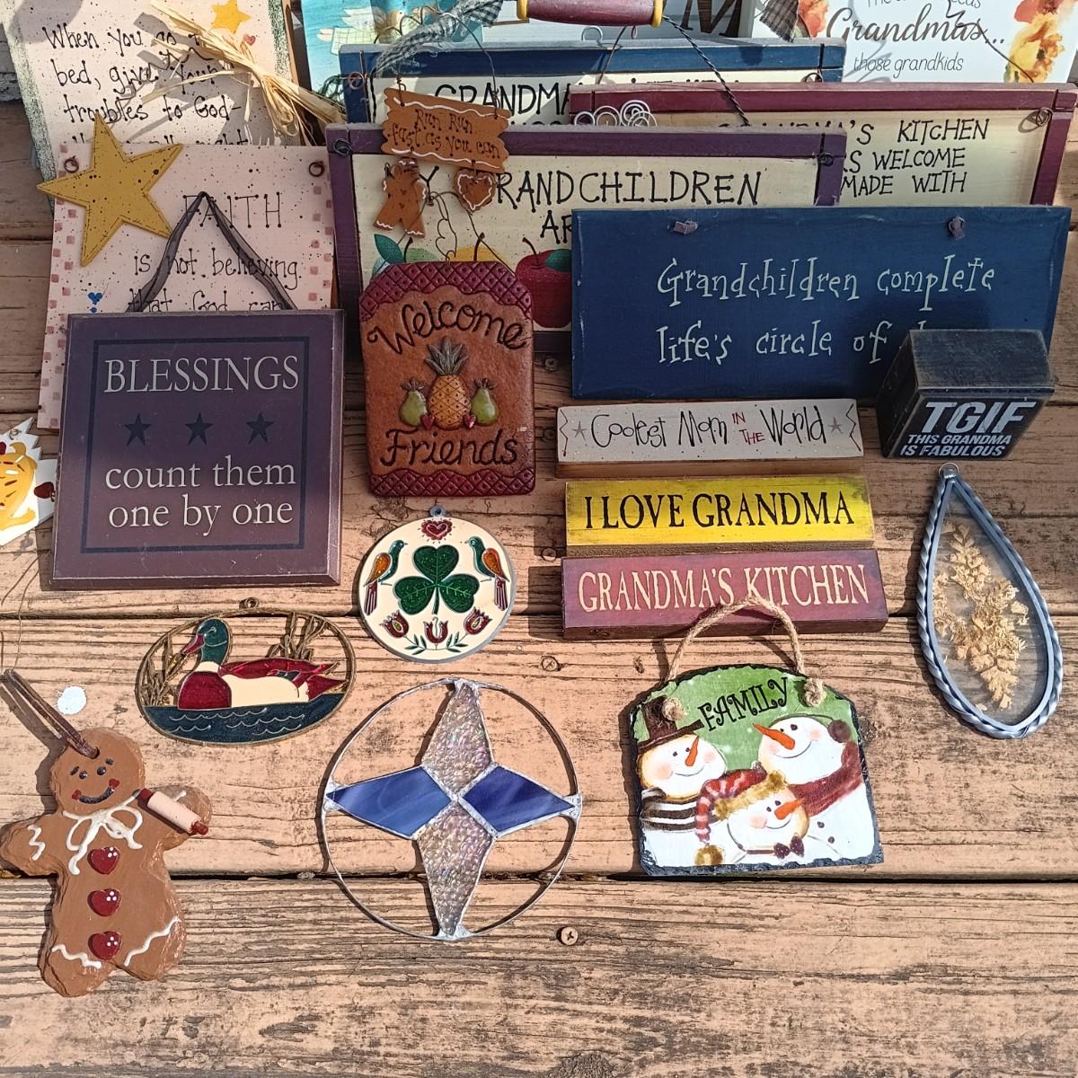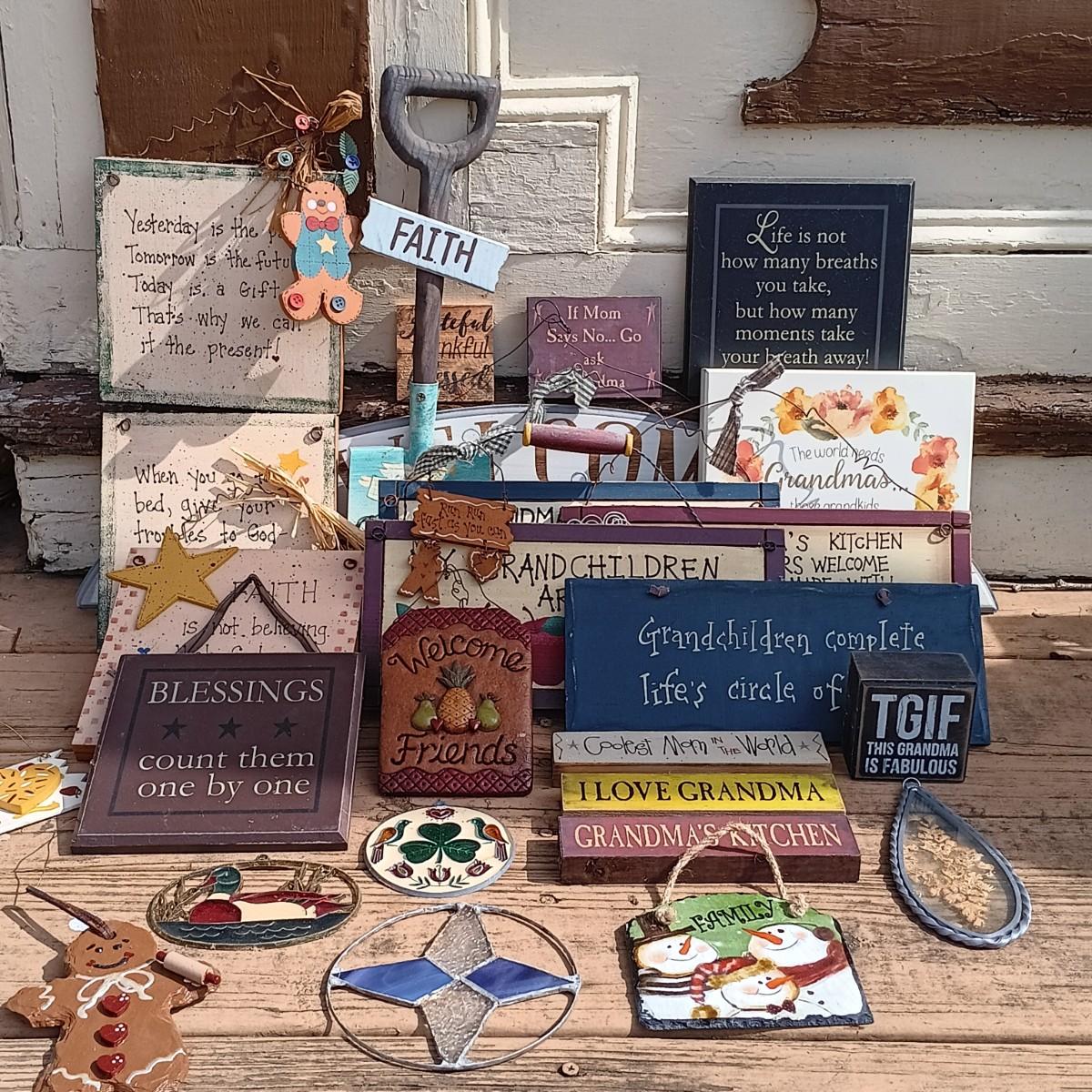 LOT 130: Collection of Primitive Style Signs, Decorations and Stained Glass