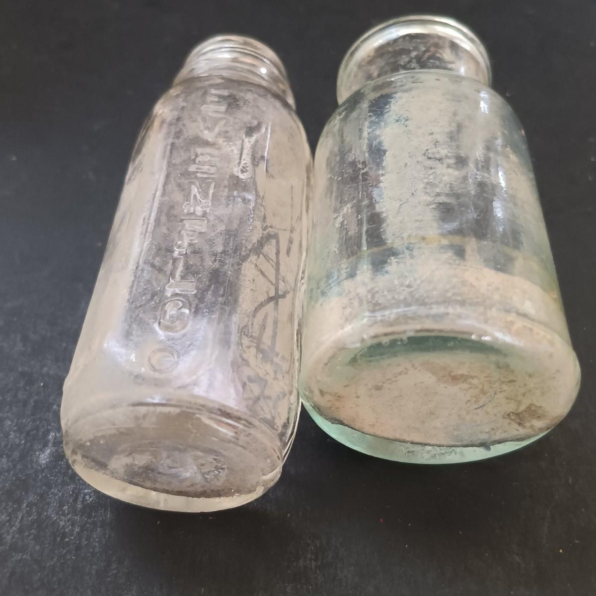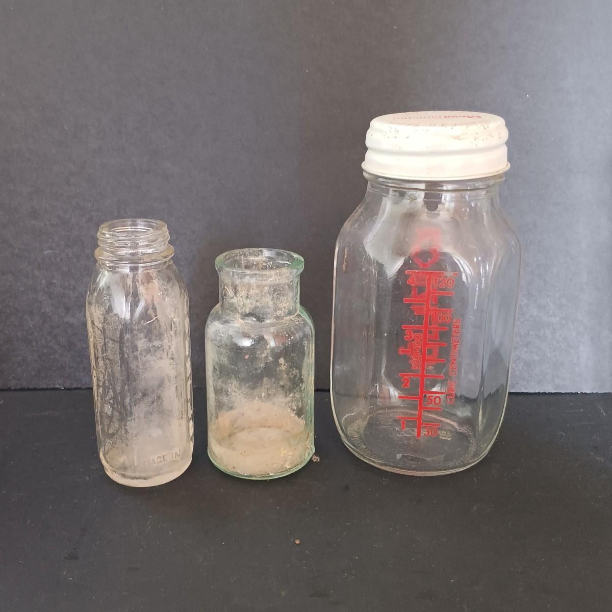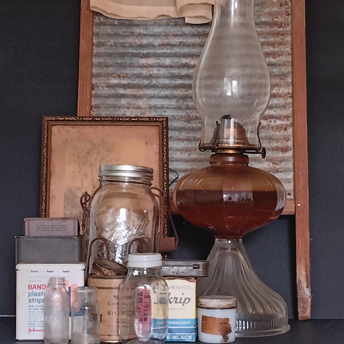 LOT 133: Vintage Evenflo Glass Baby Bottle, Glass Oil Lamp, Tins & More