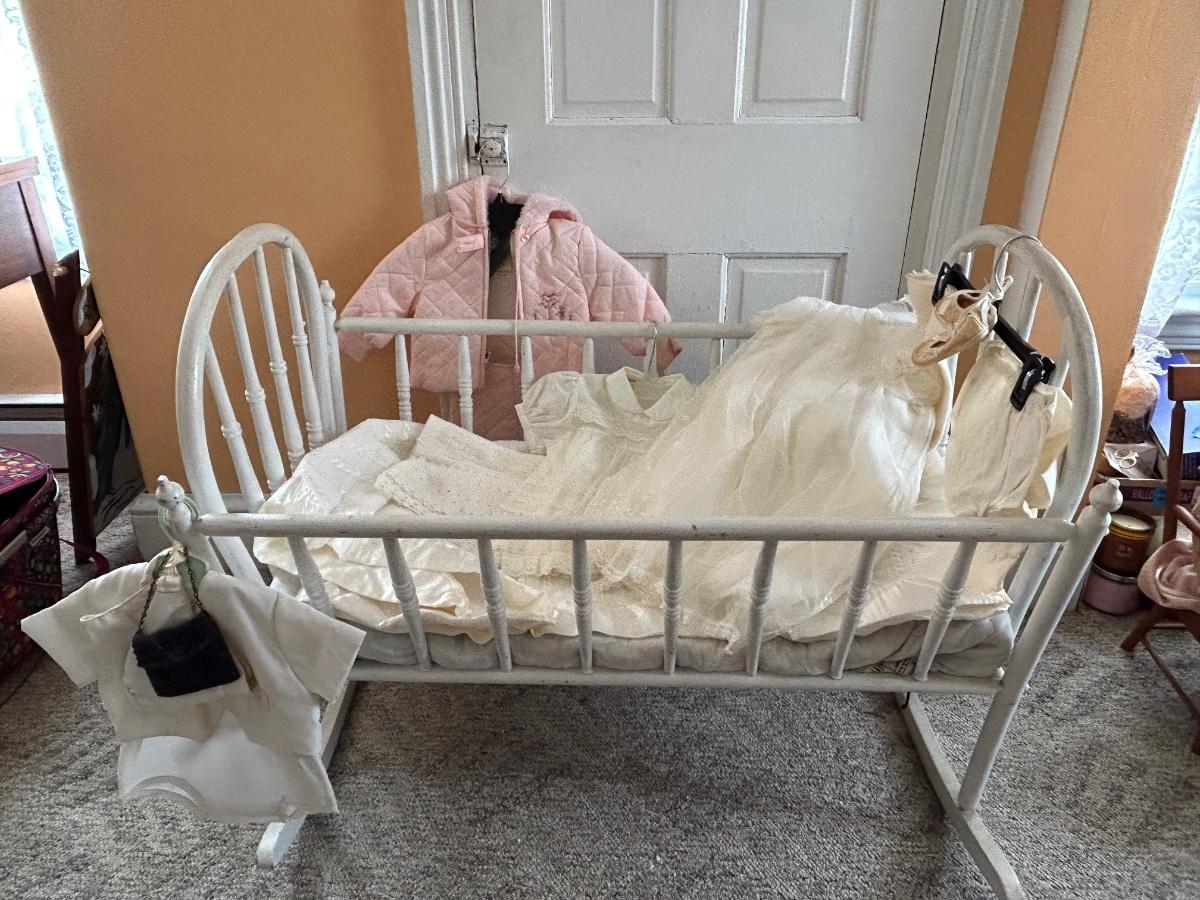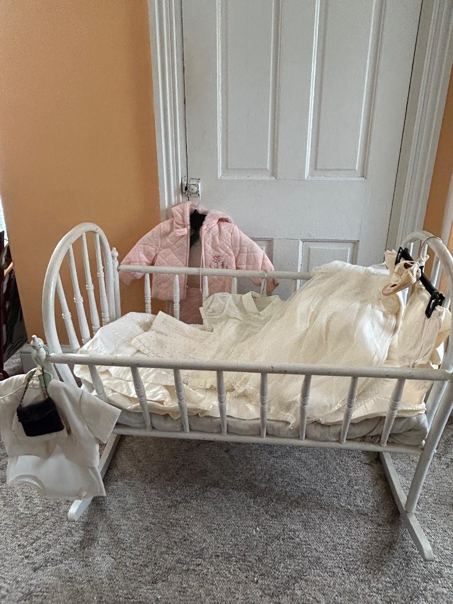 LOT 141: Vintage Cradle and Baby Clothes