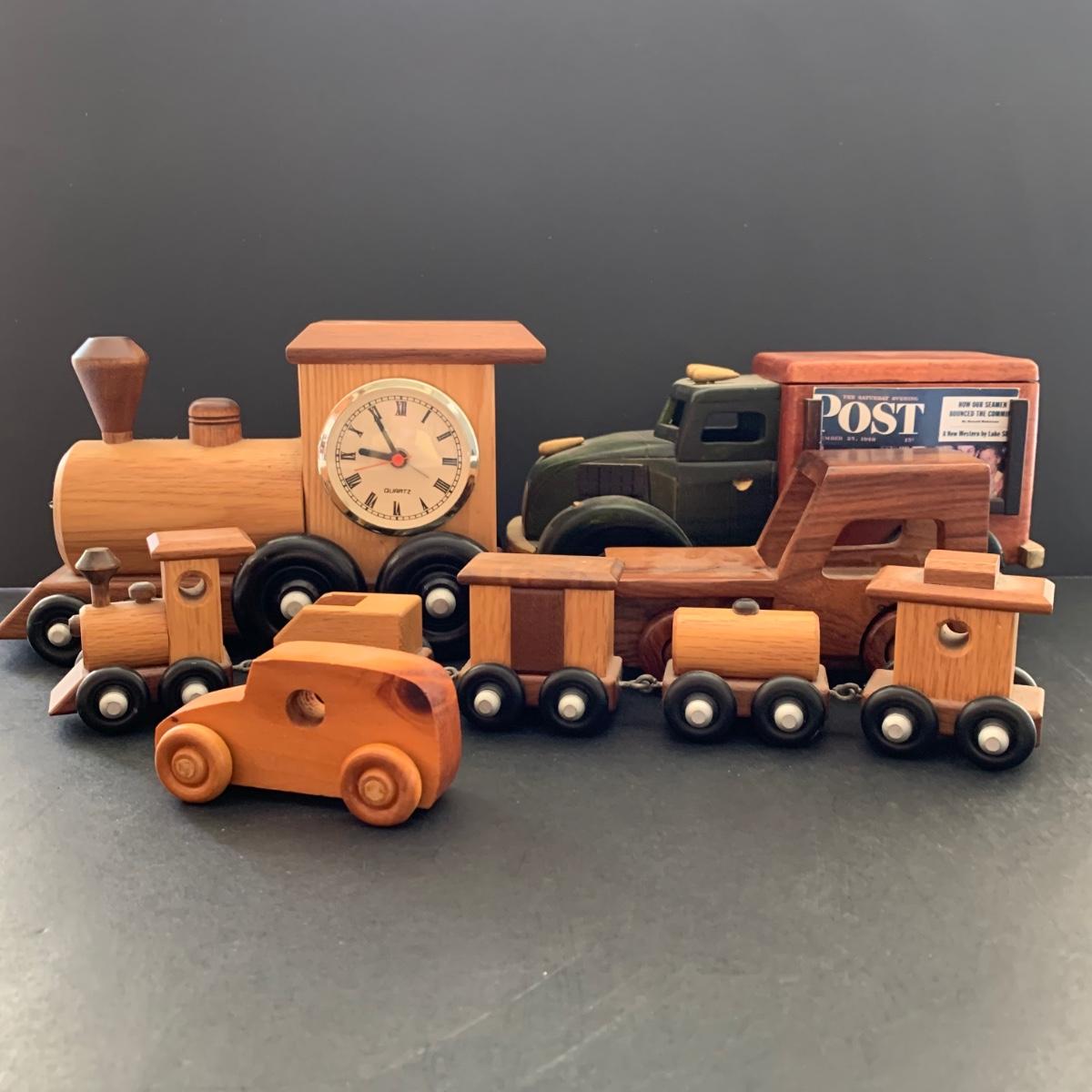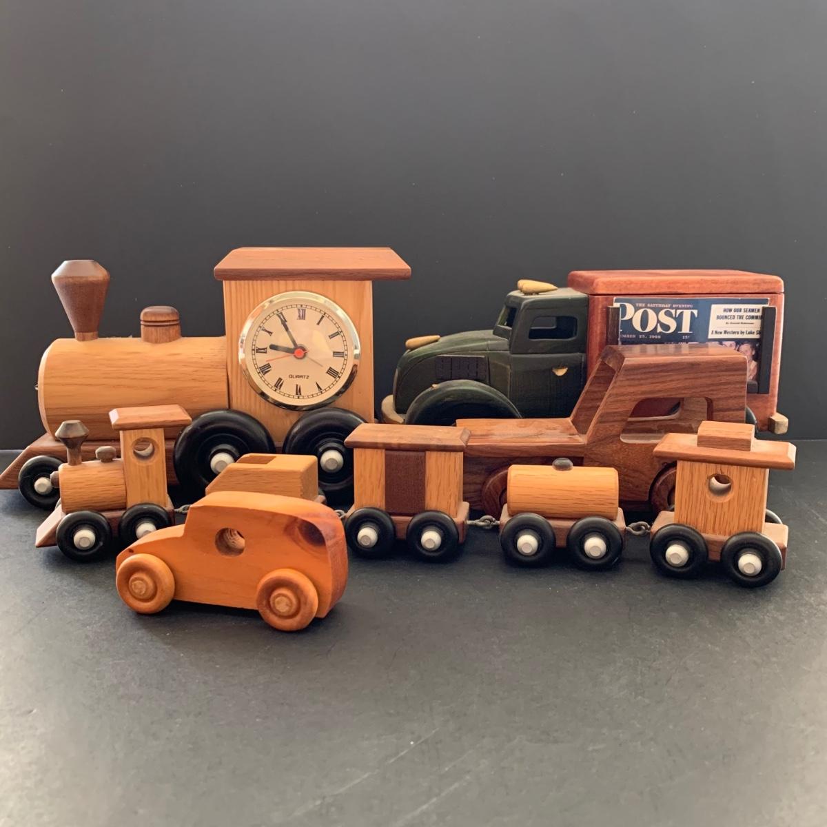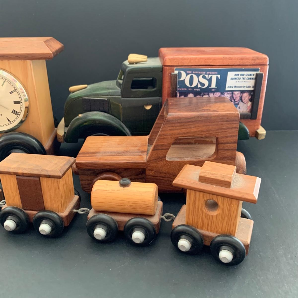 LOT 147: Wood Cars & Trains - Train Clock, Car Post Advertisement