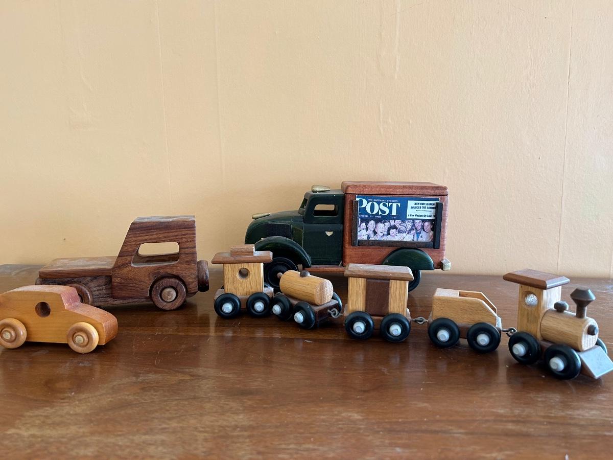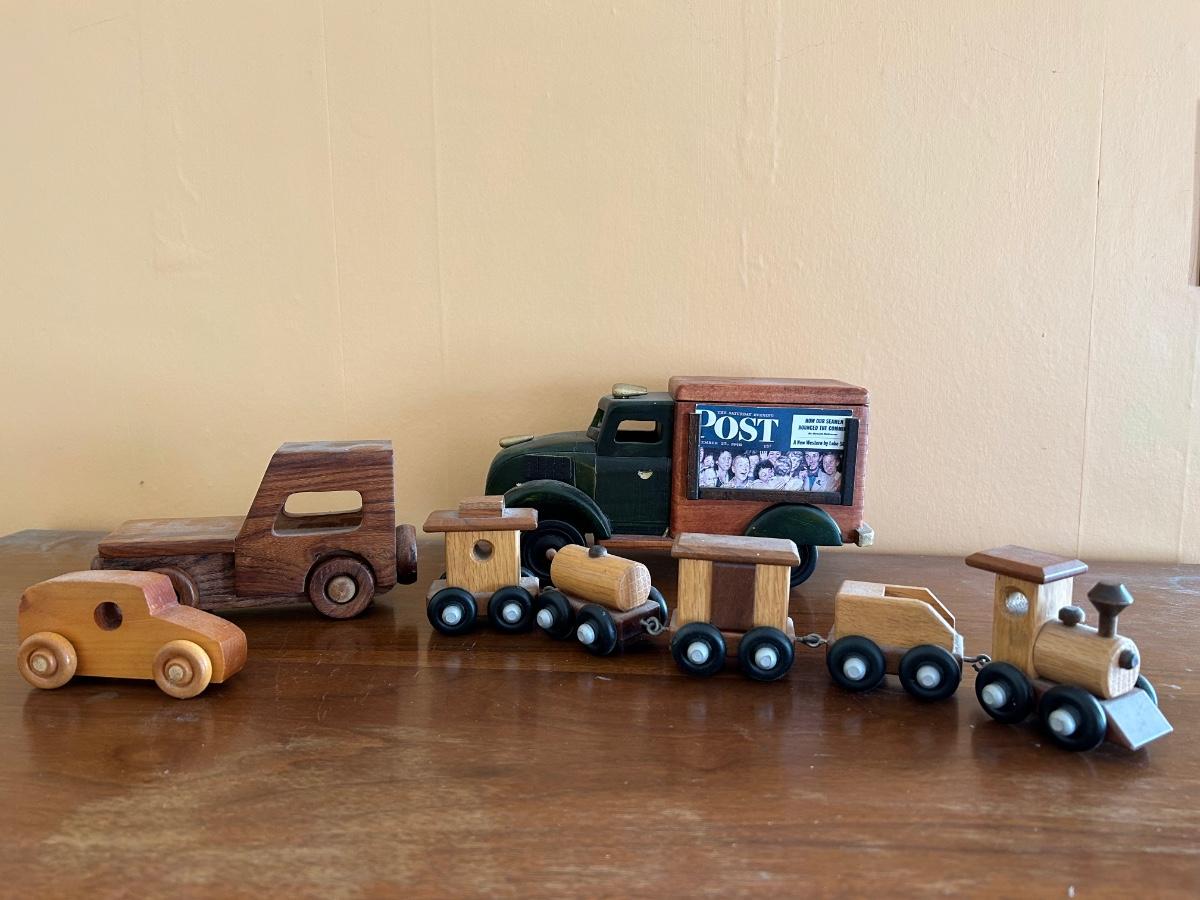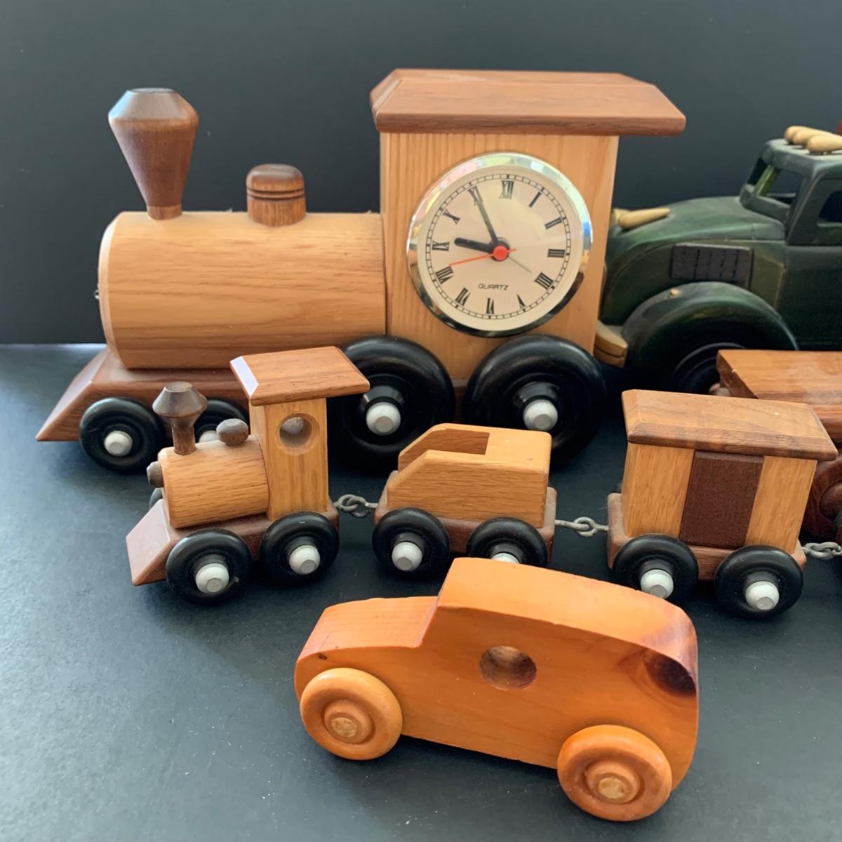 LOT 147: Wood Cars & Trains - Train Clock, Car Post Advertisement
