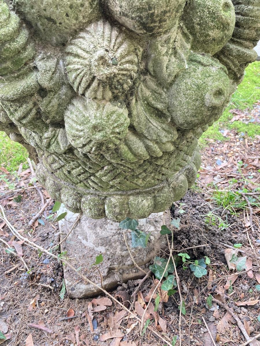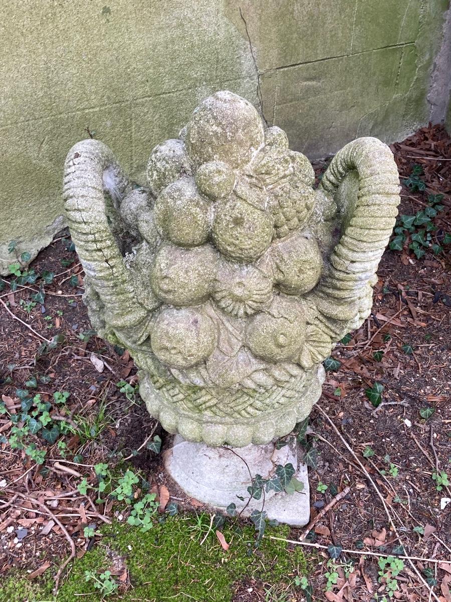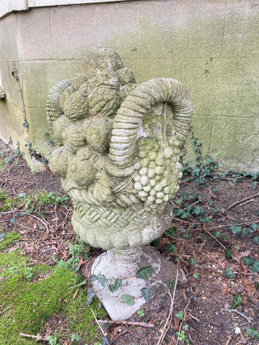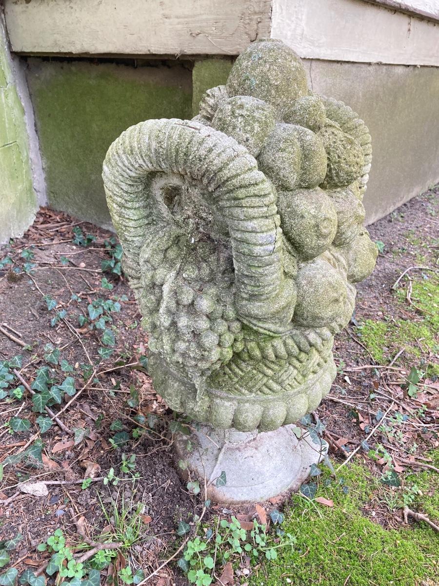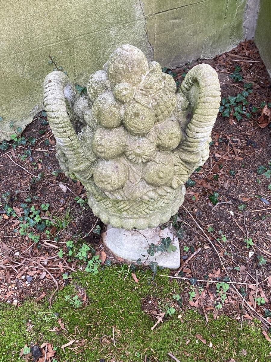 LOT 164: Vintage Cast Stone / Concrete Basket of Fruit Lawn Ornament