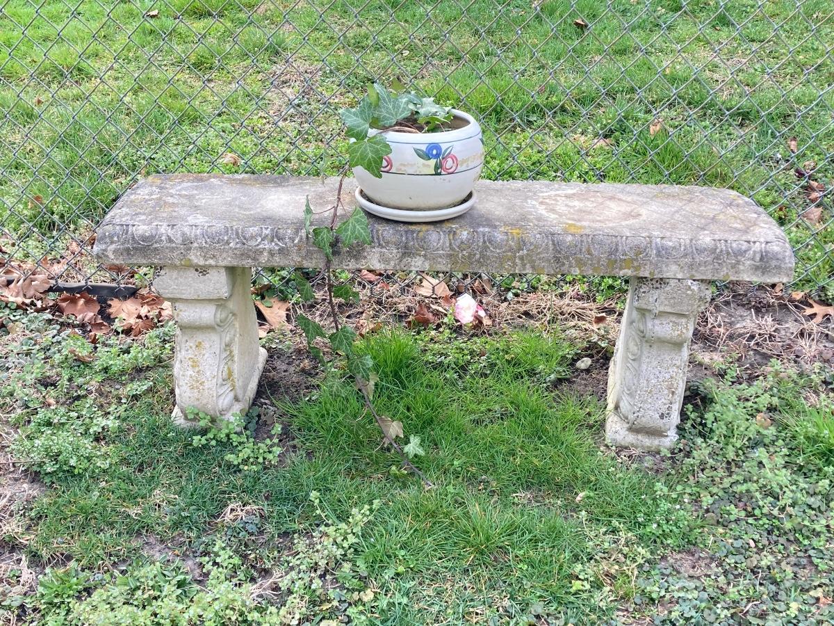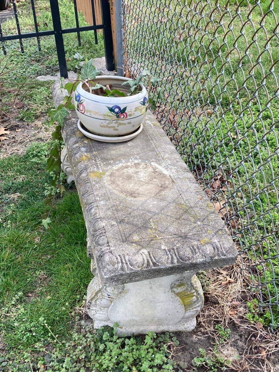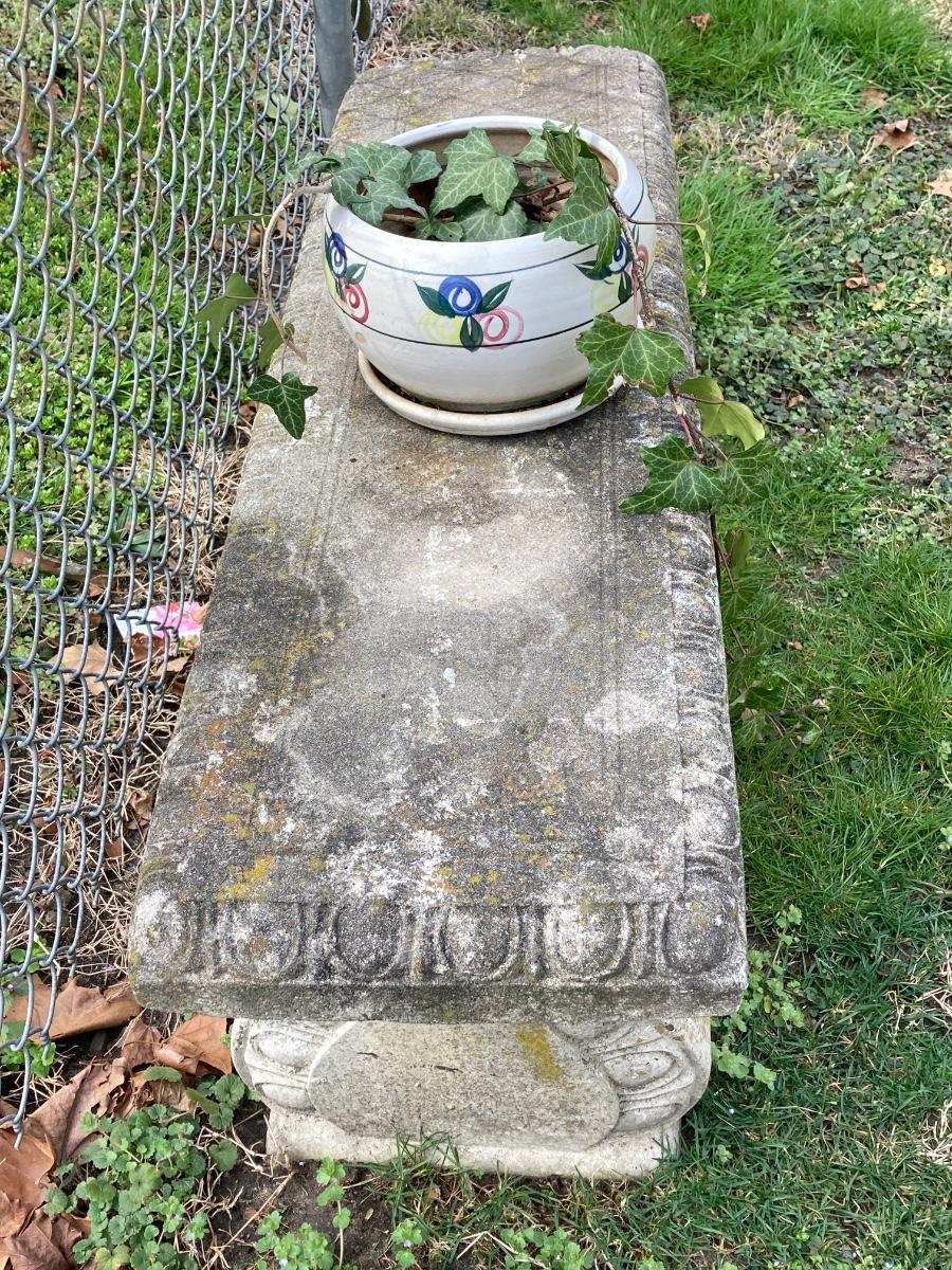 LOT 165: Vintage Concrete Outdoor Bench with Ivy Plant