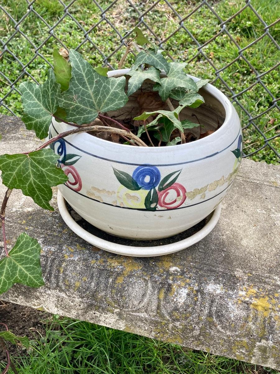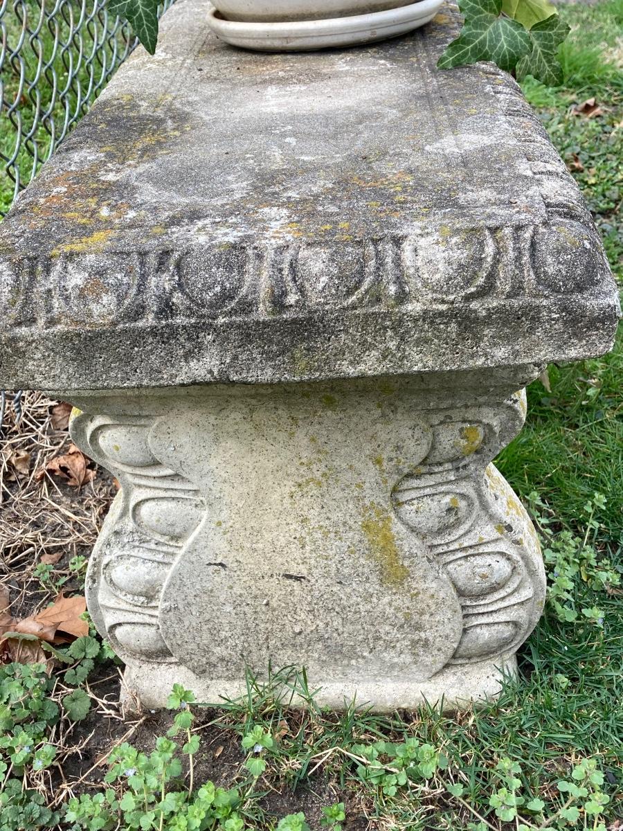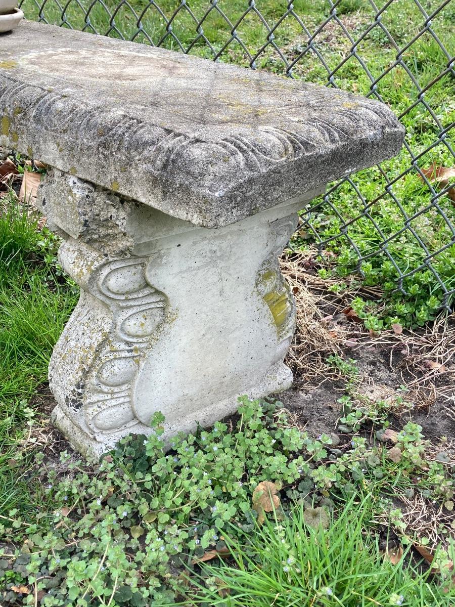 LOT 165: Vintage Concrete Outdoor Bench with Ivy Plant