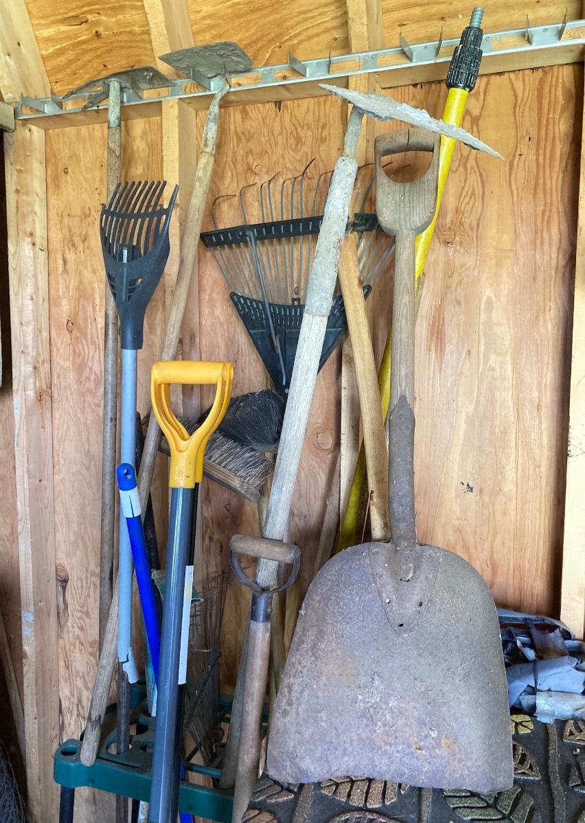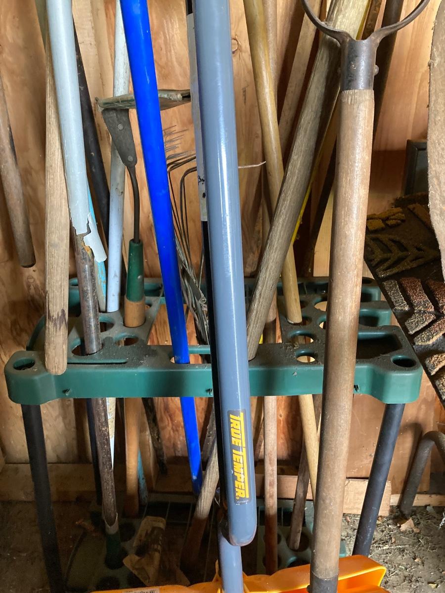 LOT 173: Lawn and Garden Tools with Storage Rack