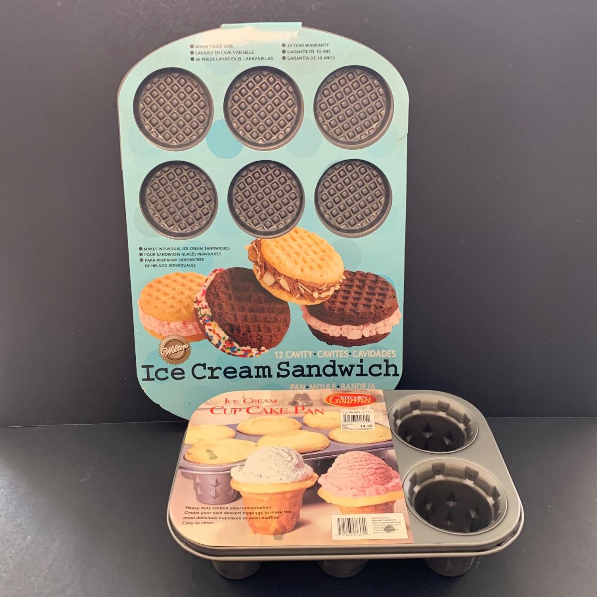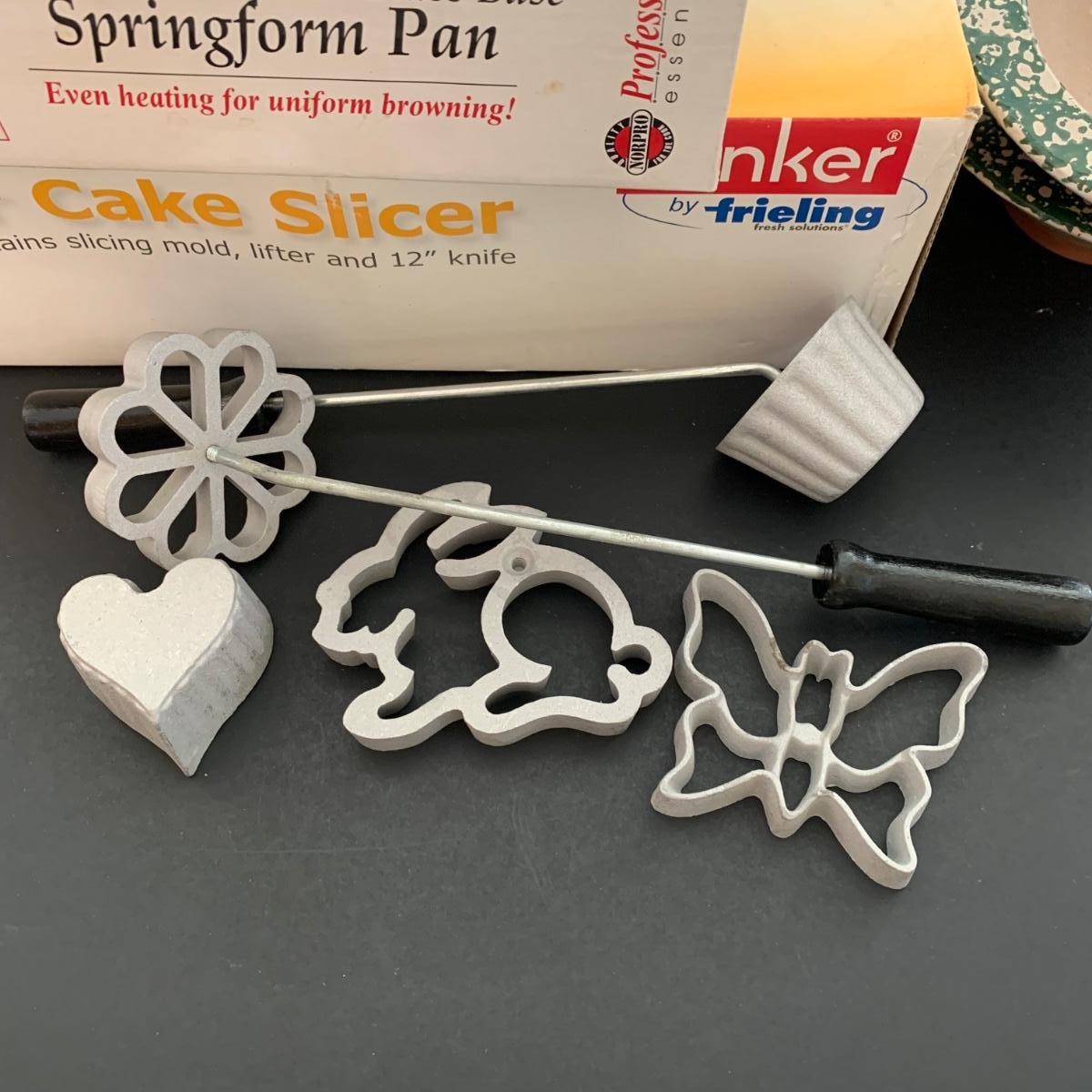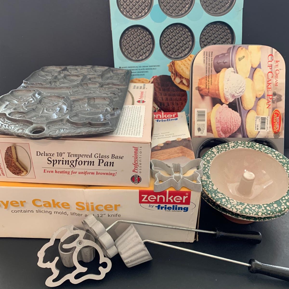 LOT 190: Zenker Layer Cake Slicer, Apple Baker Baking Dish, L.L. Bear Pan, Ice Cream Sandwich Pan, Ice Cream Cupcake Pan,Springform Pan