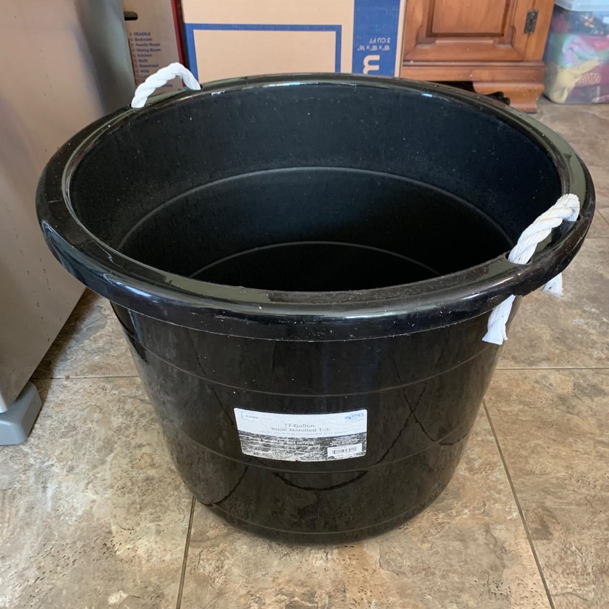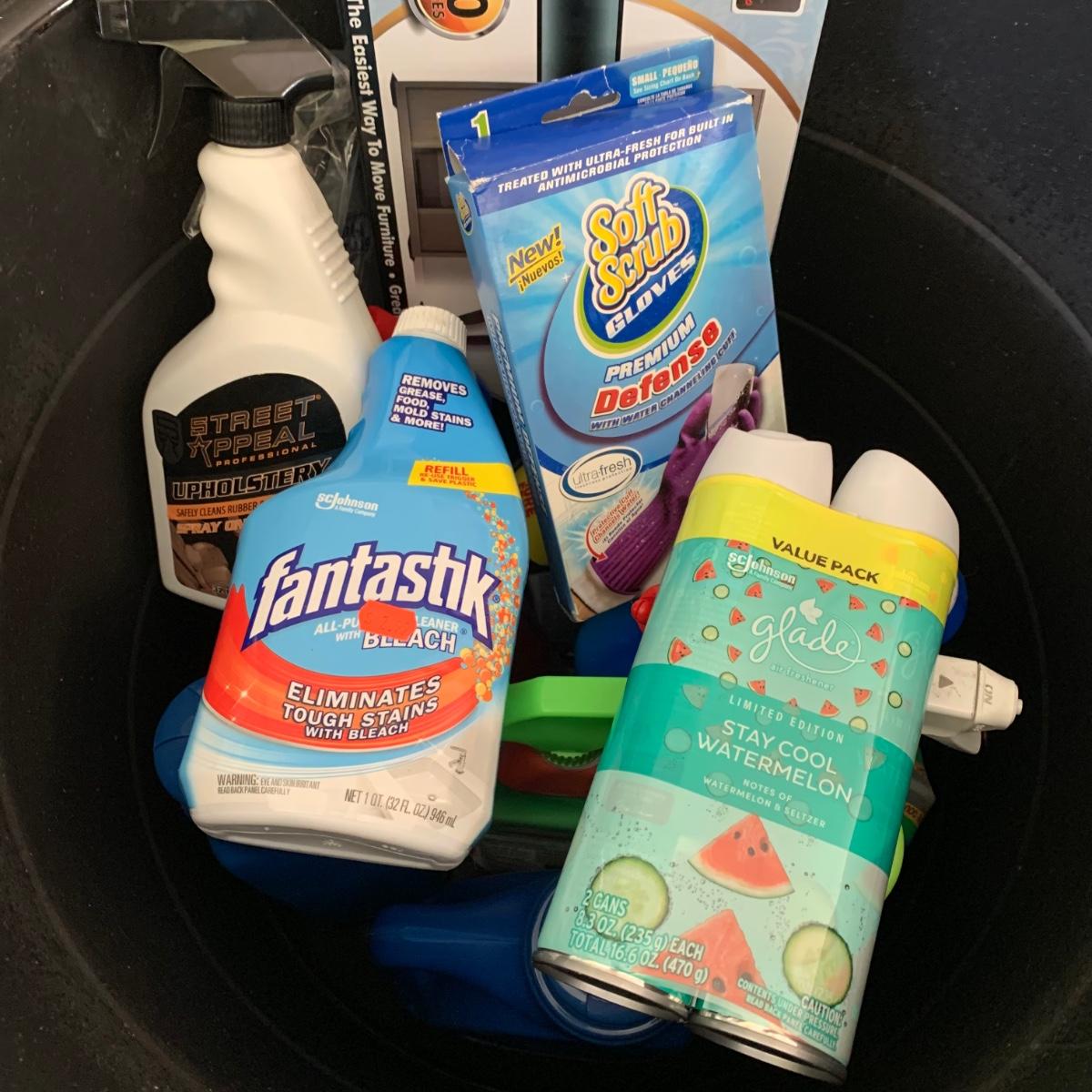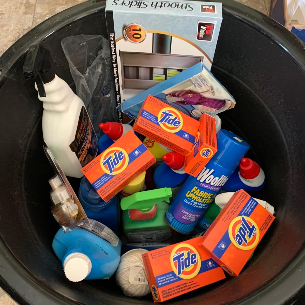 LOT 193: 17=Gallon Rope Handled Tub FULL of Cleaning Supplies & More