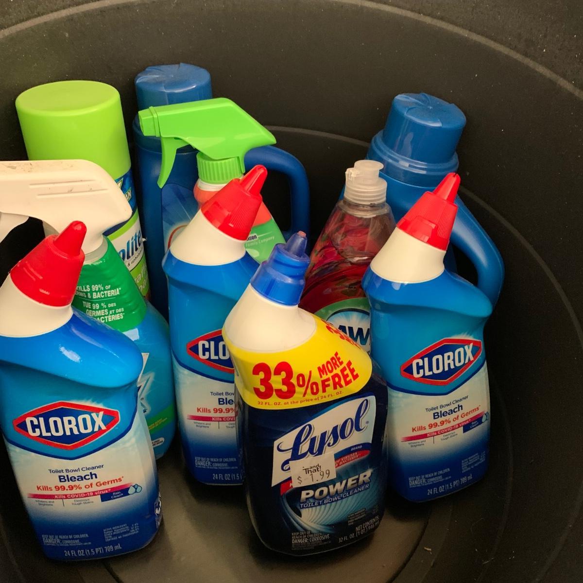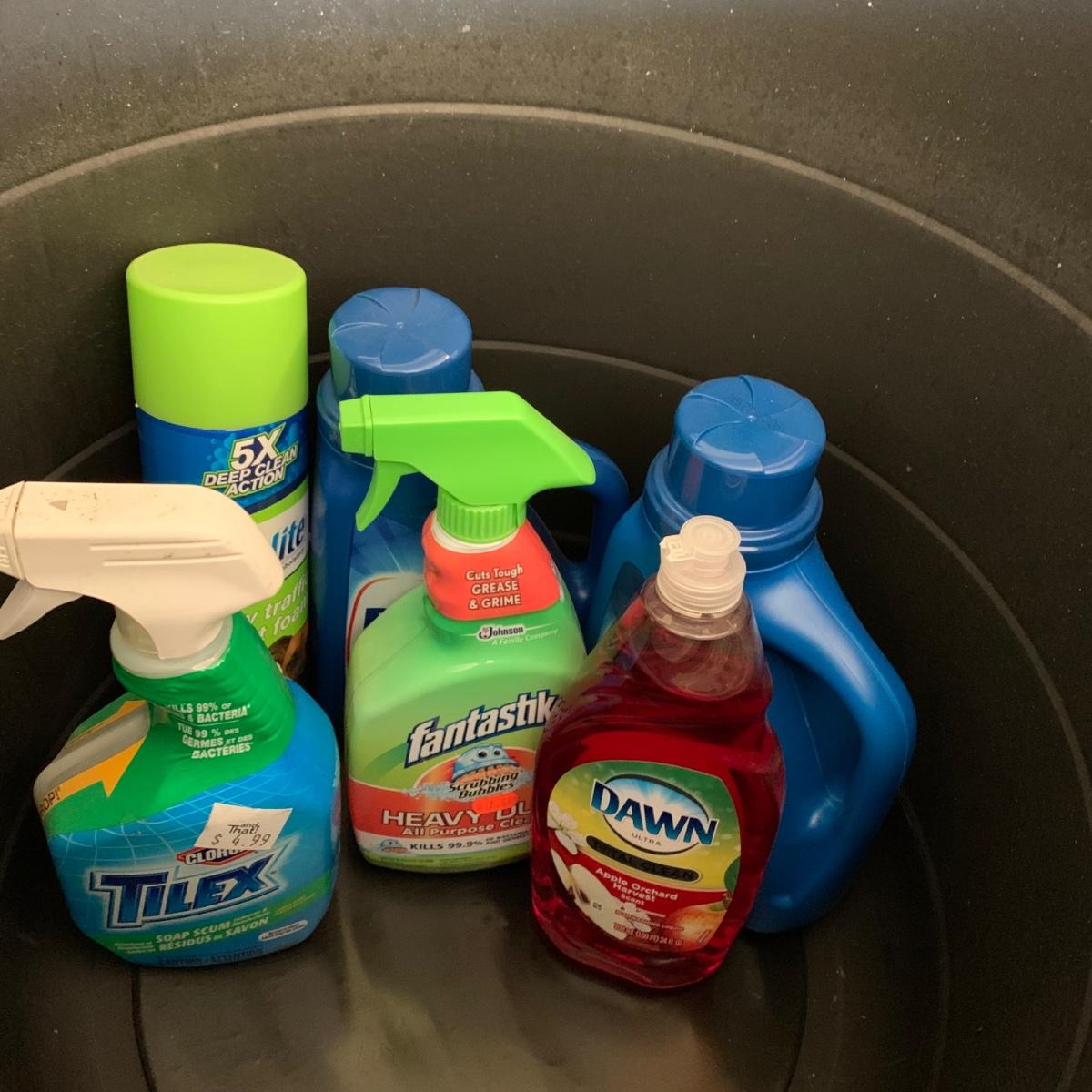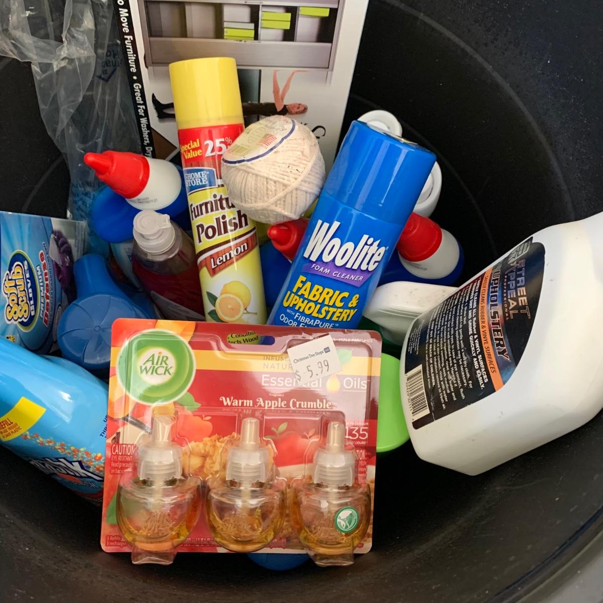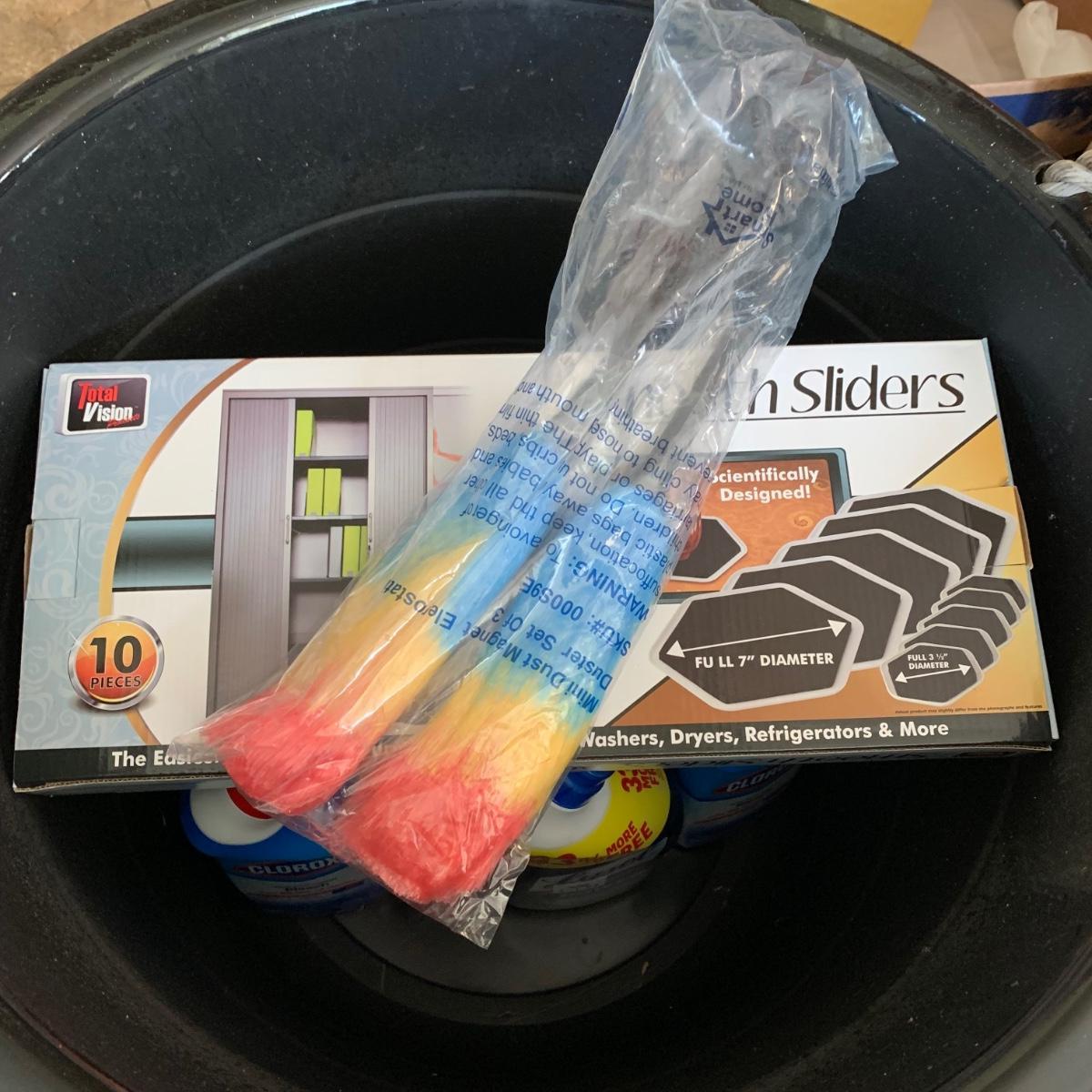 LOT 193: 17=Gallon Rope Handled Tub FULL of Cleaning Supplies & More