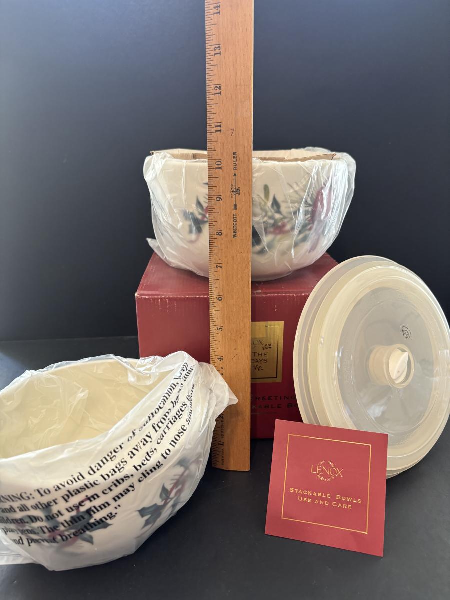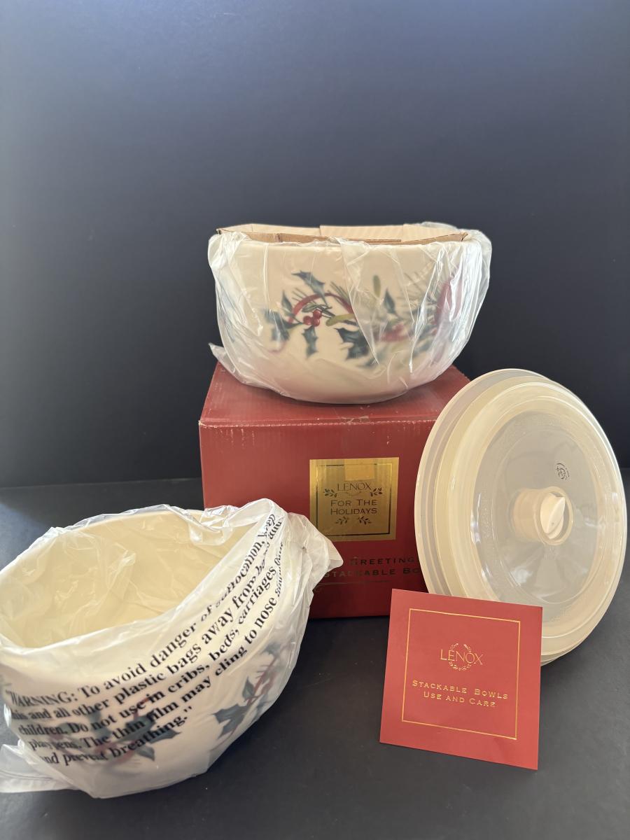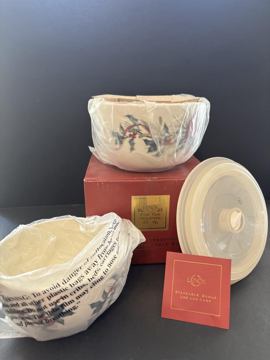 LOT 207: Lenox Winter Stackable Bowls with Lids
