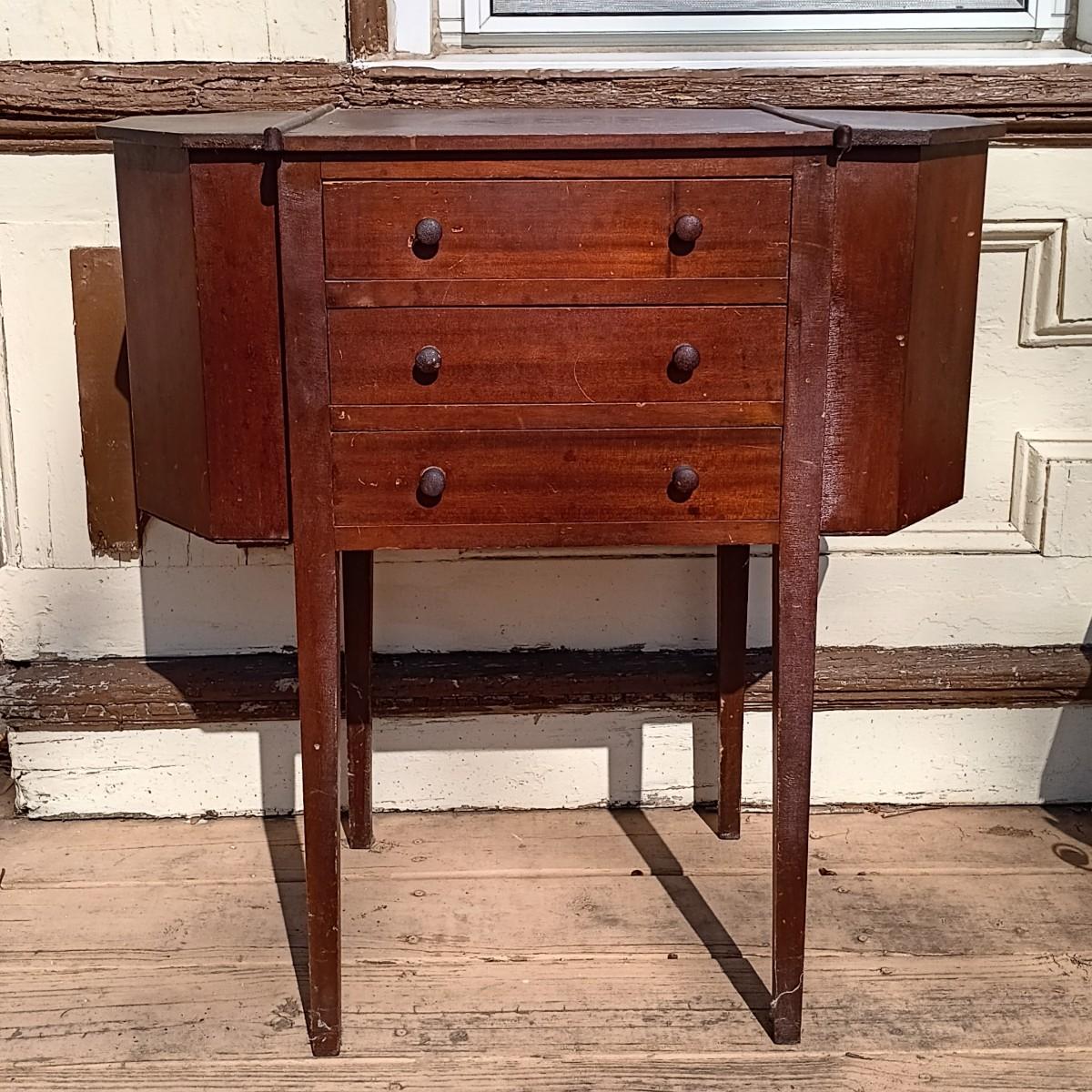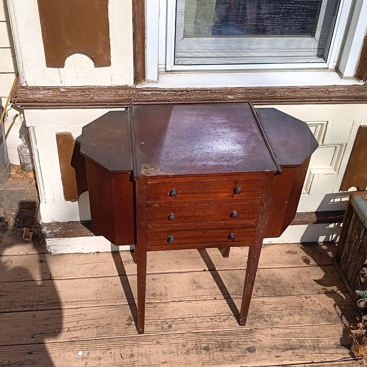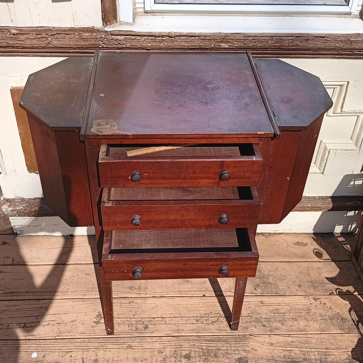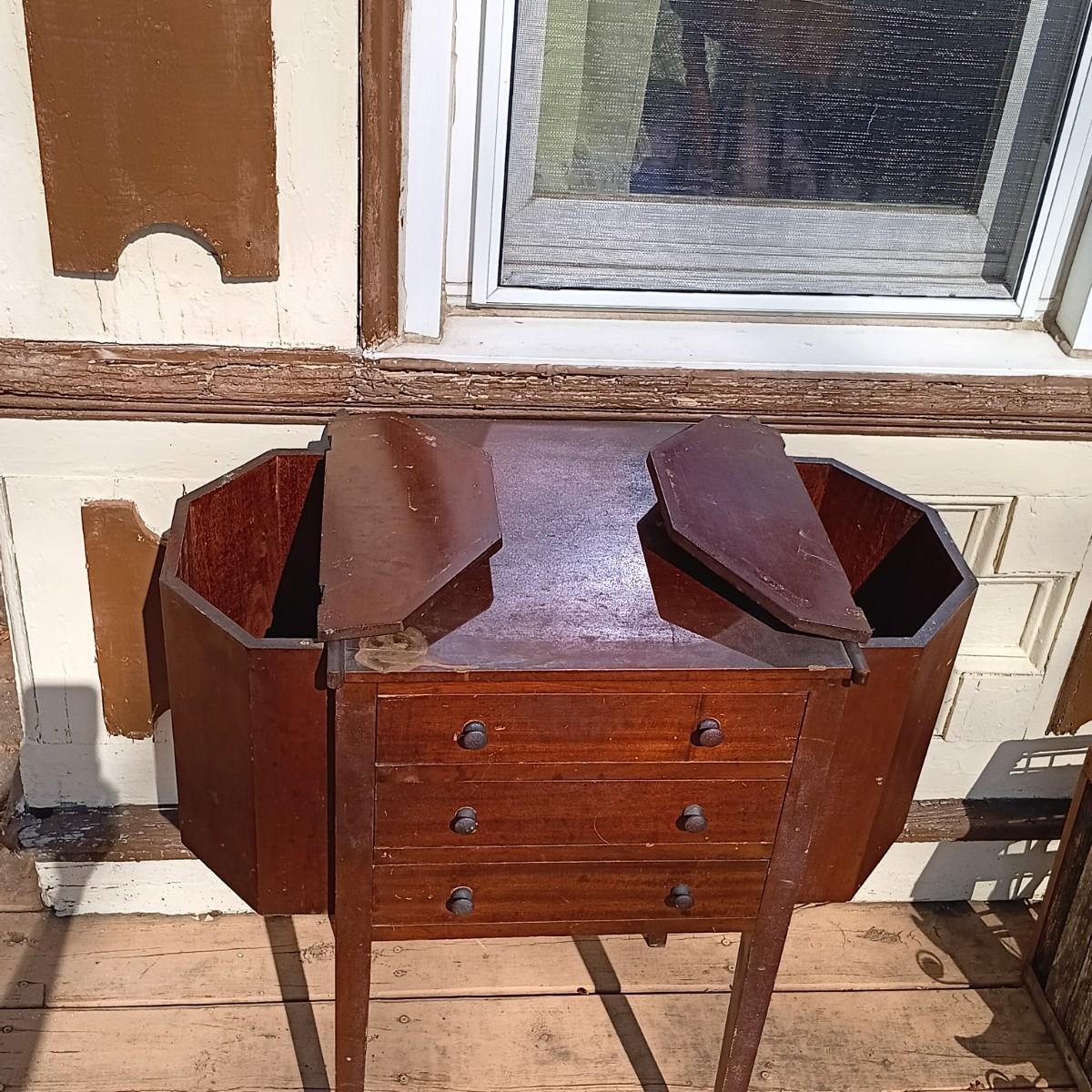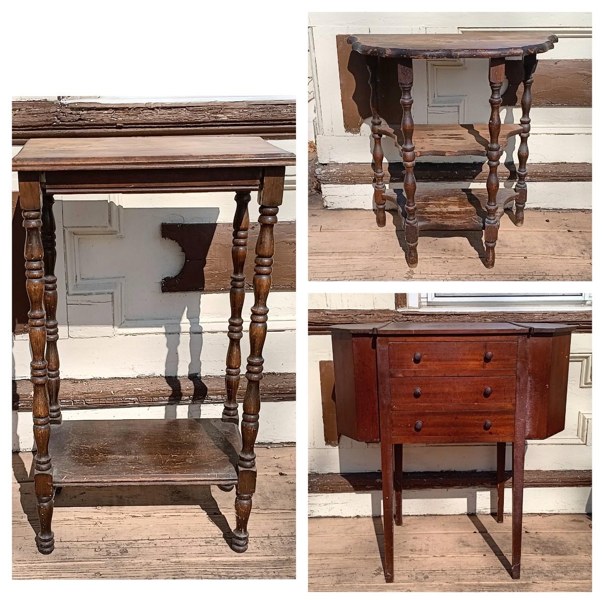 LOT 218: Martha Washington Style Sewing Cabinet w/ 2 End Tables