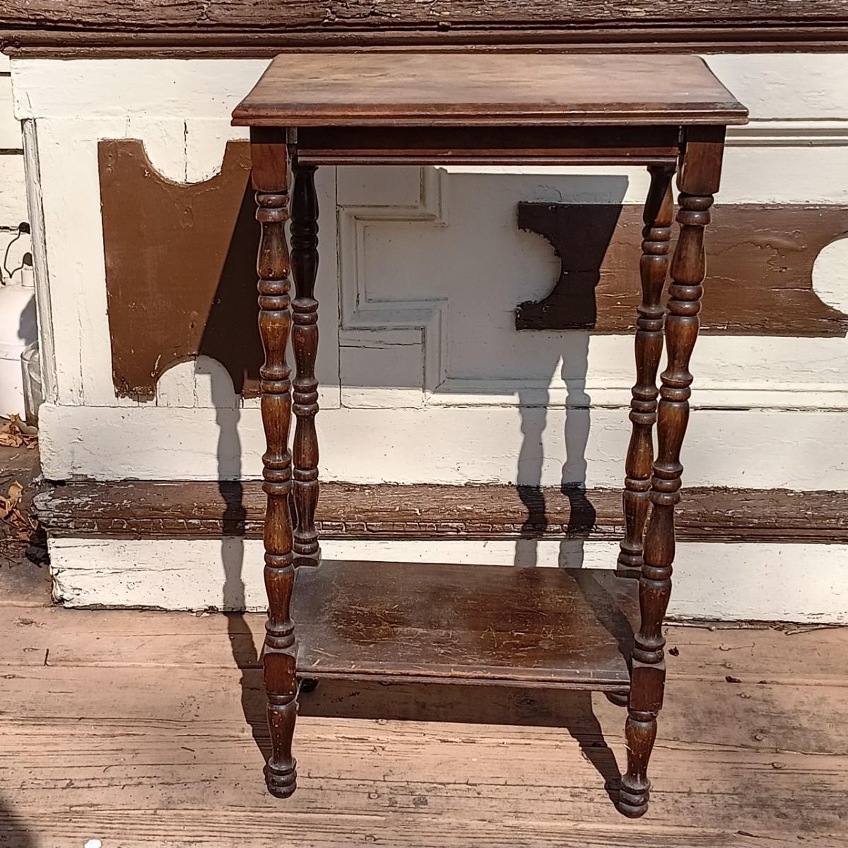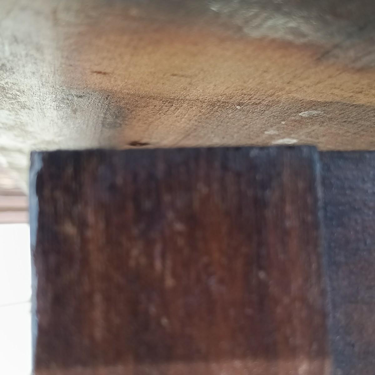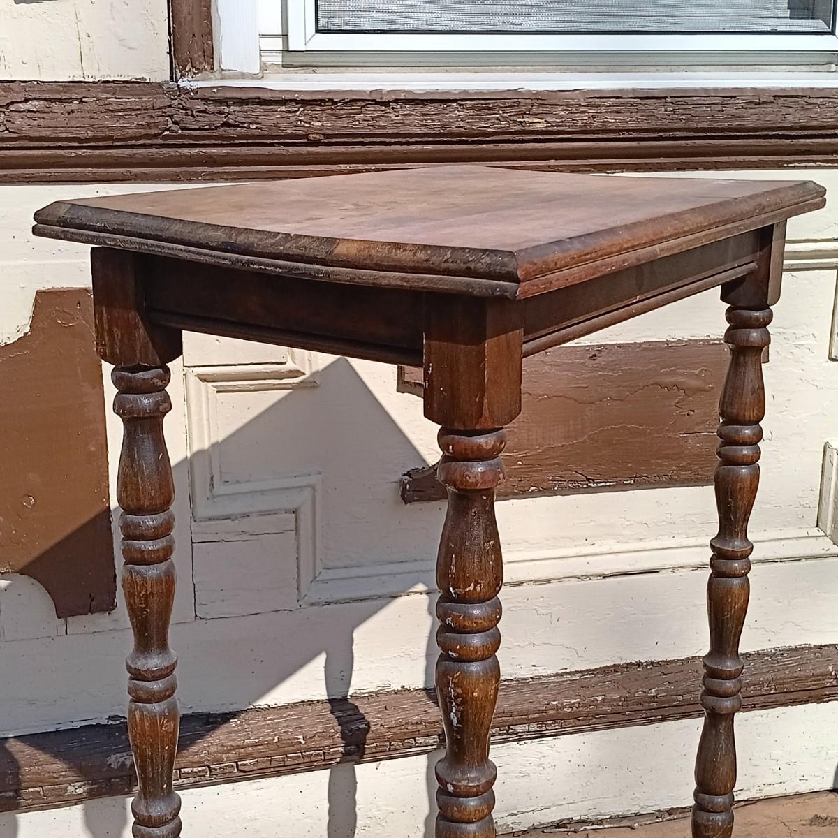 The tall square end table is missing nails, the top is prying up and one of the legs is loose.
