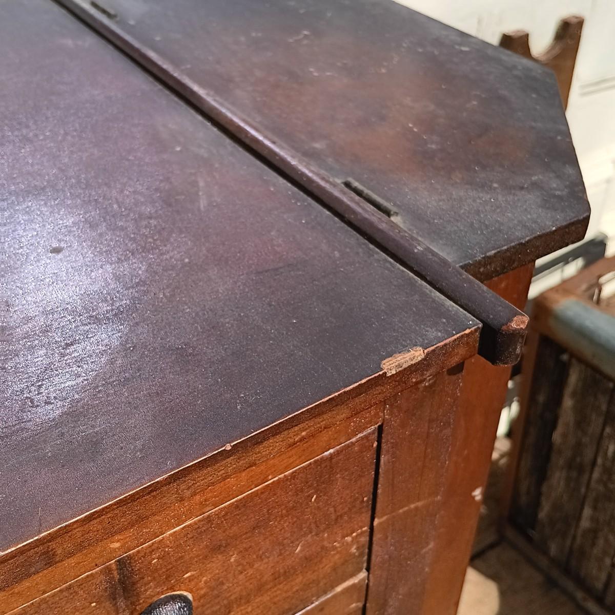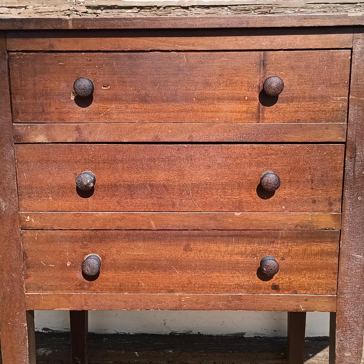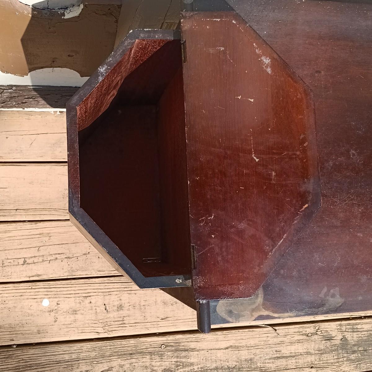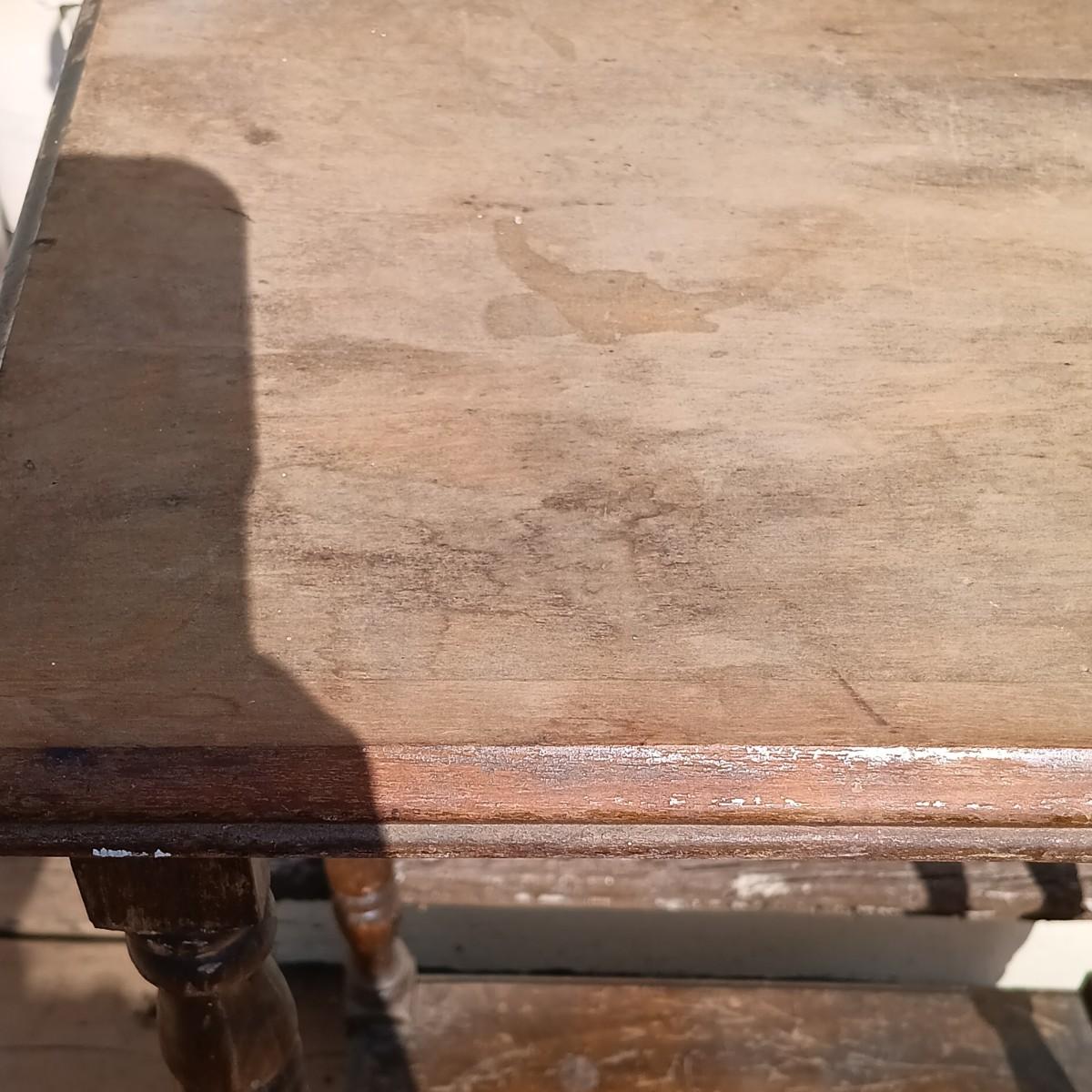 The tall square end table is missing nails, the top is prying up and one of the legs is loose.